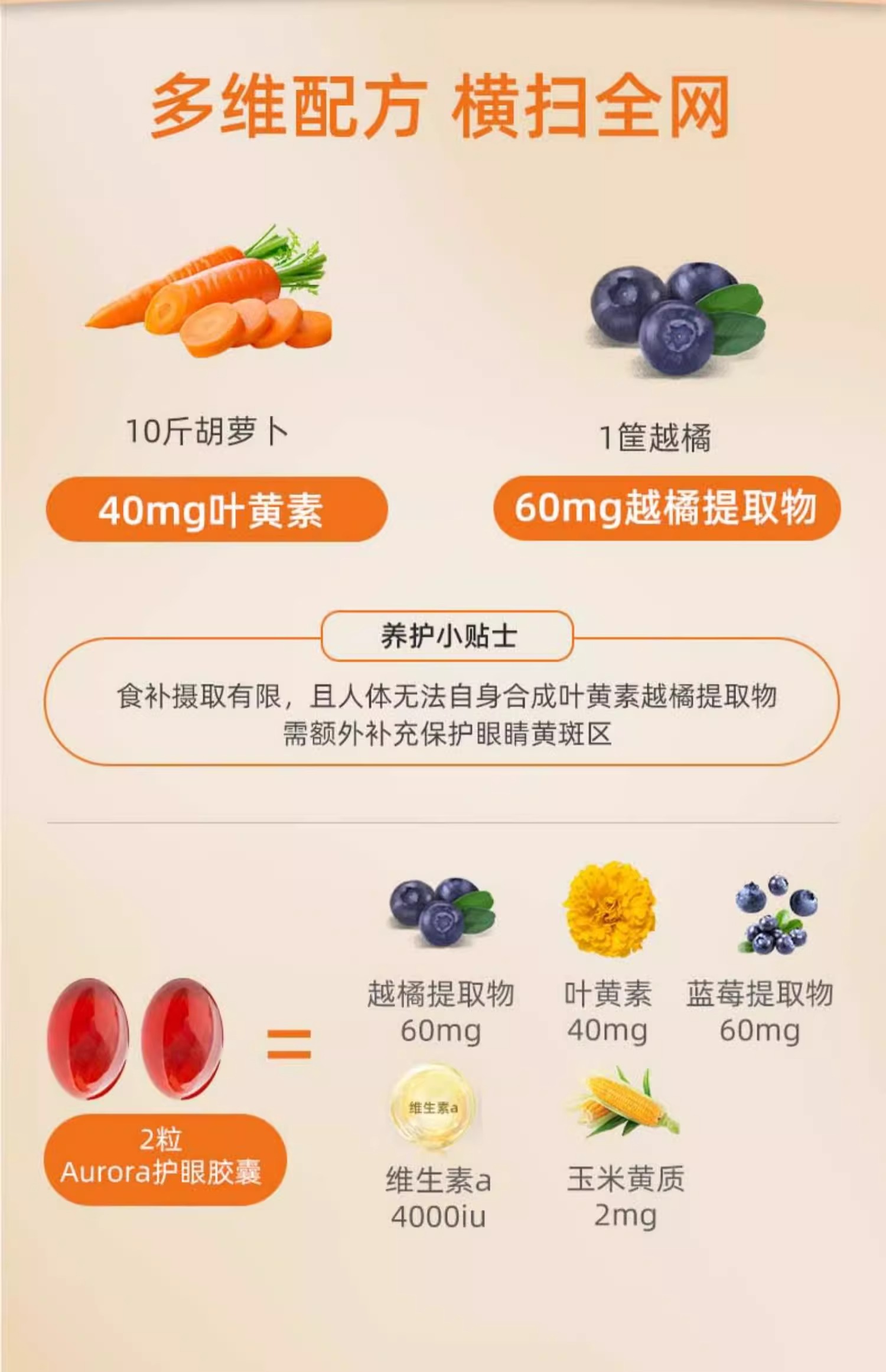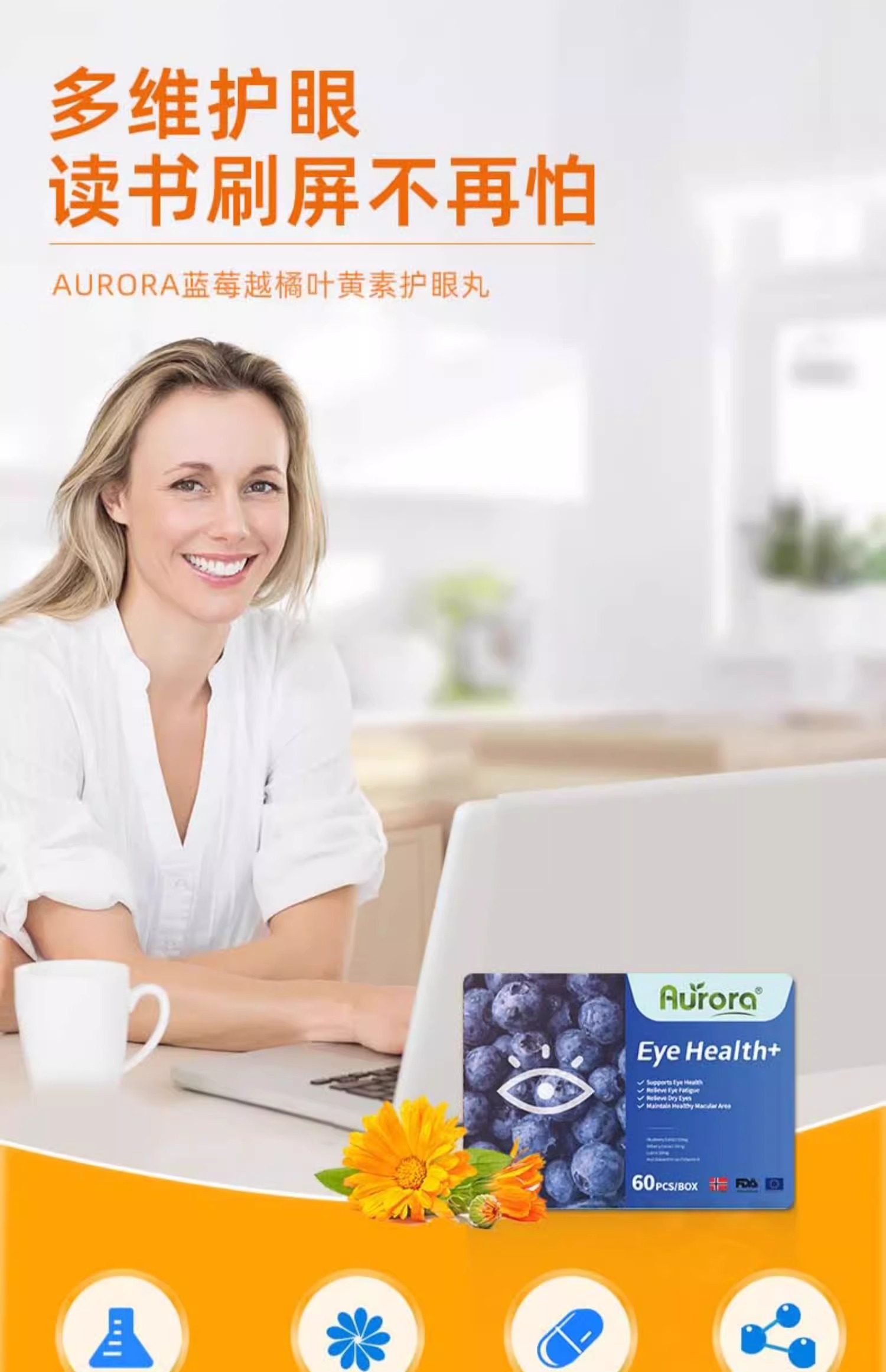 【专属链接】挪威原装进口Aurora樾橘蓝莓叶黄素护眼软胶囊60粒*2 (送两盒30粒正装)到手四盒