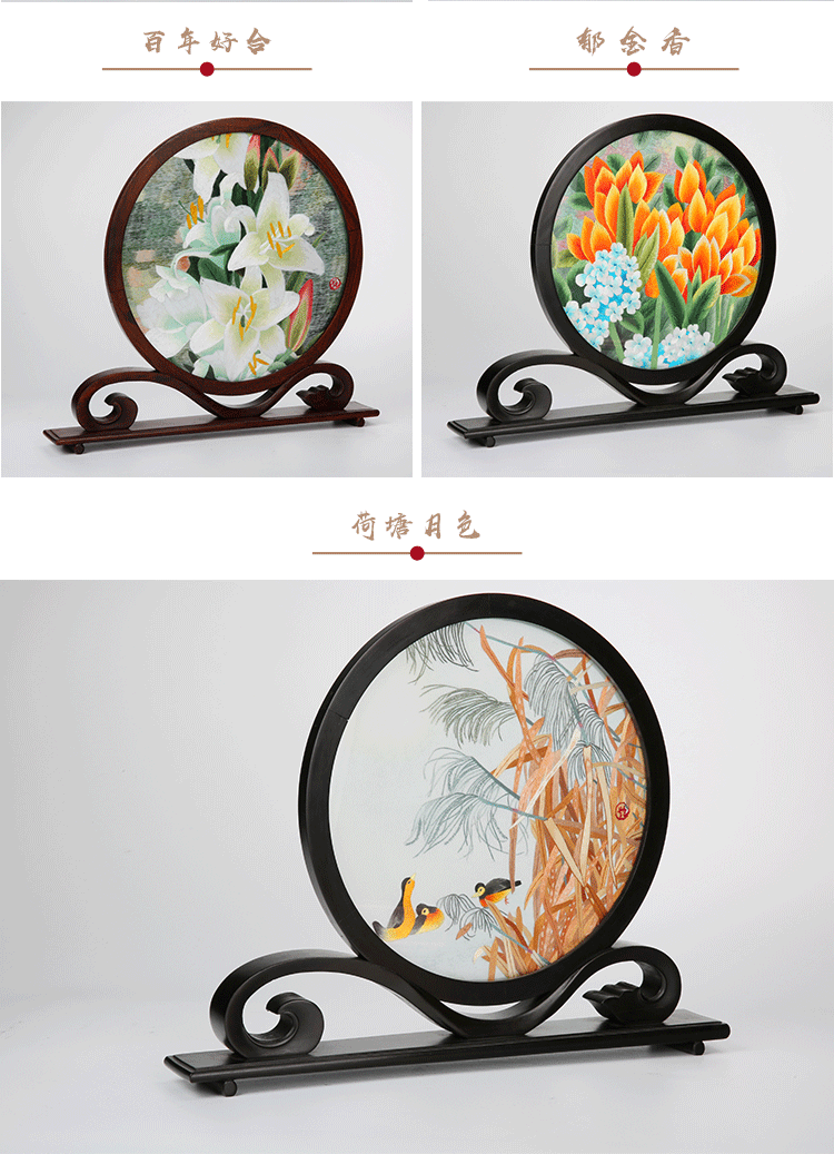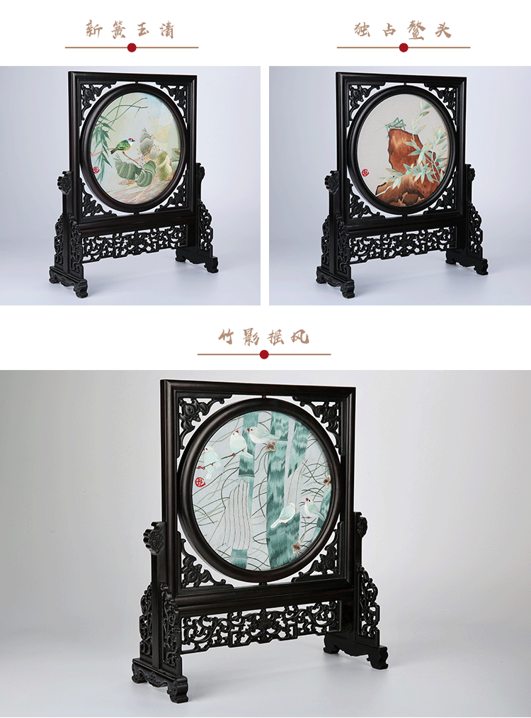 艷 湘绣 手工刺绣30cm双面绣石君原创中式摆件家居商务礼品