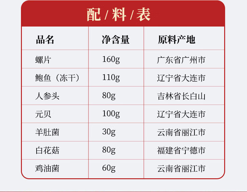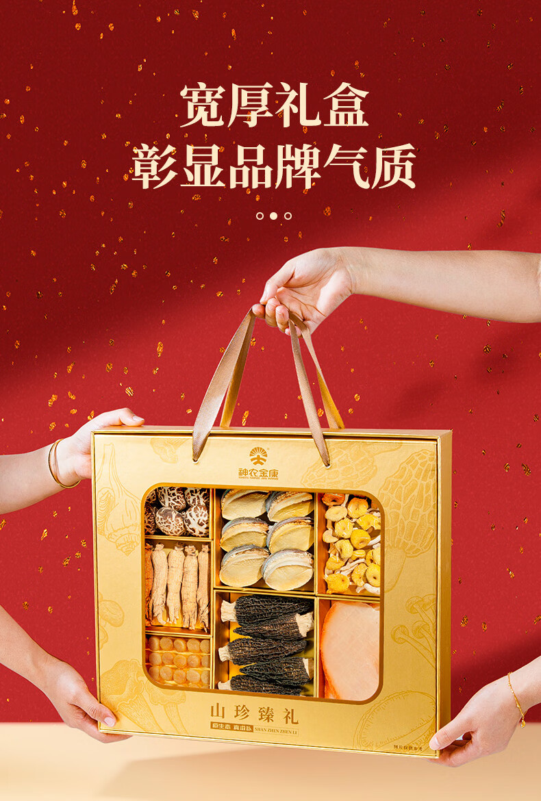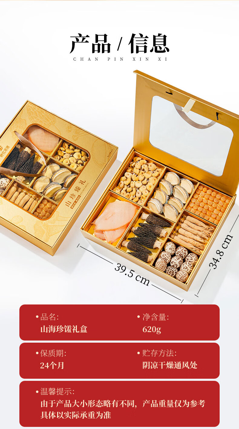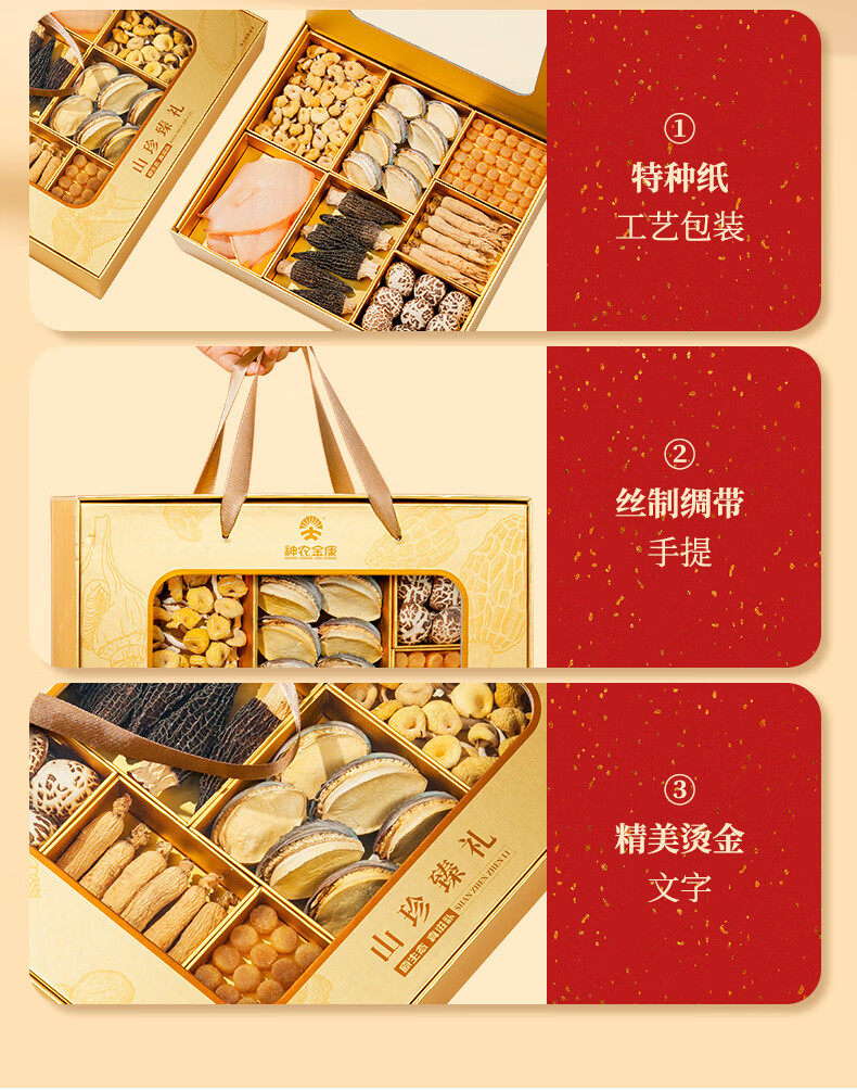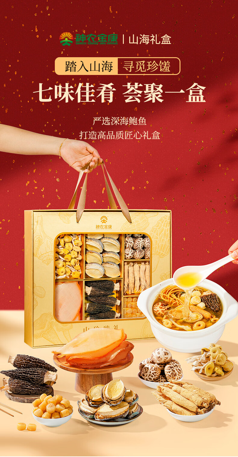 神农金康七星高照人参山珍海味礼盒620g鲍鱼元贝羊肚菌海鲜干货礼盒
