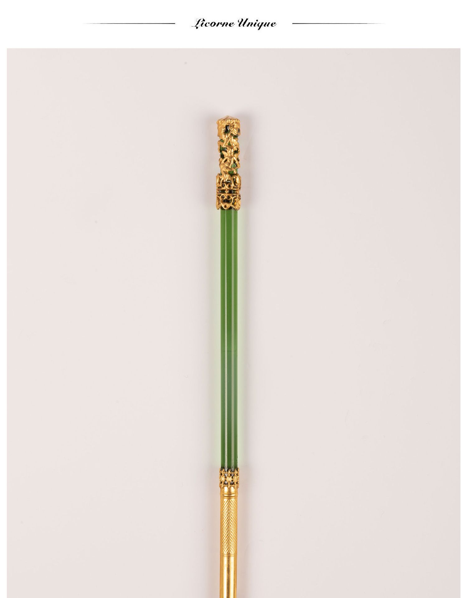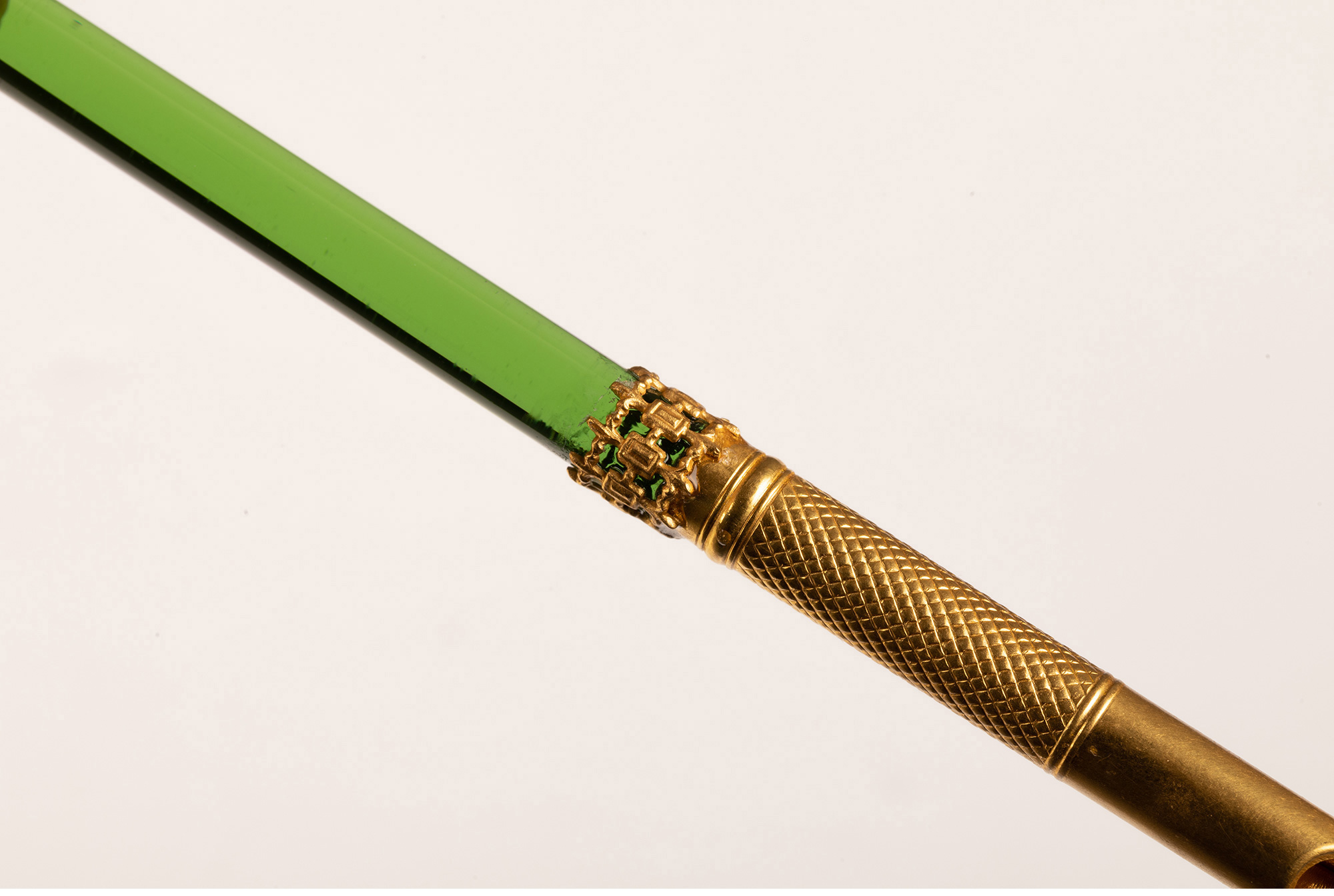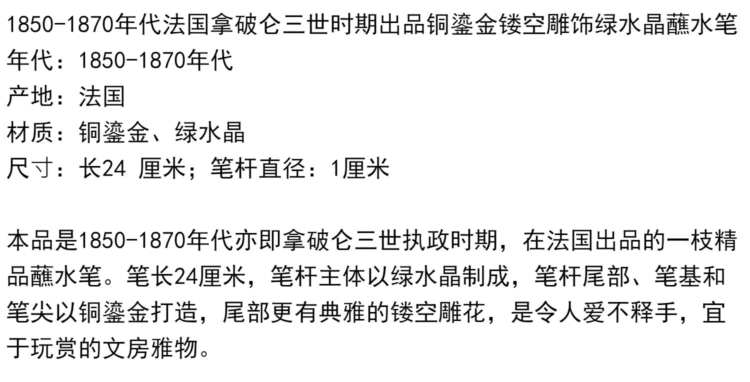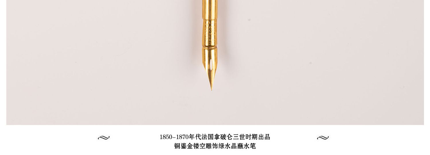 独角鹿西洋古董法国拿破仑三世时期铜鎏金镂空雕饰绿水晶蘸水笔