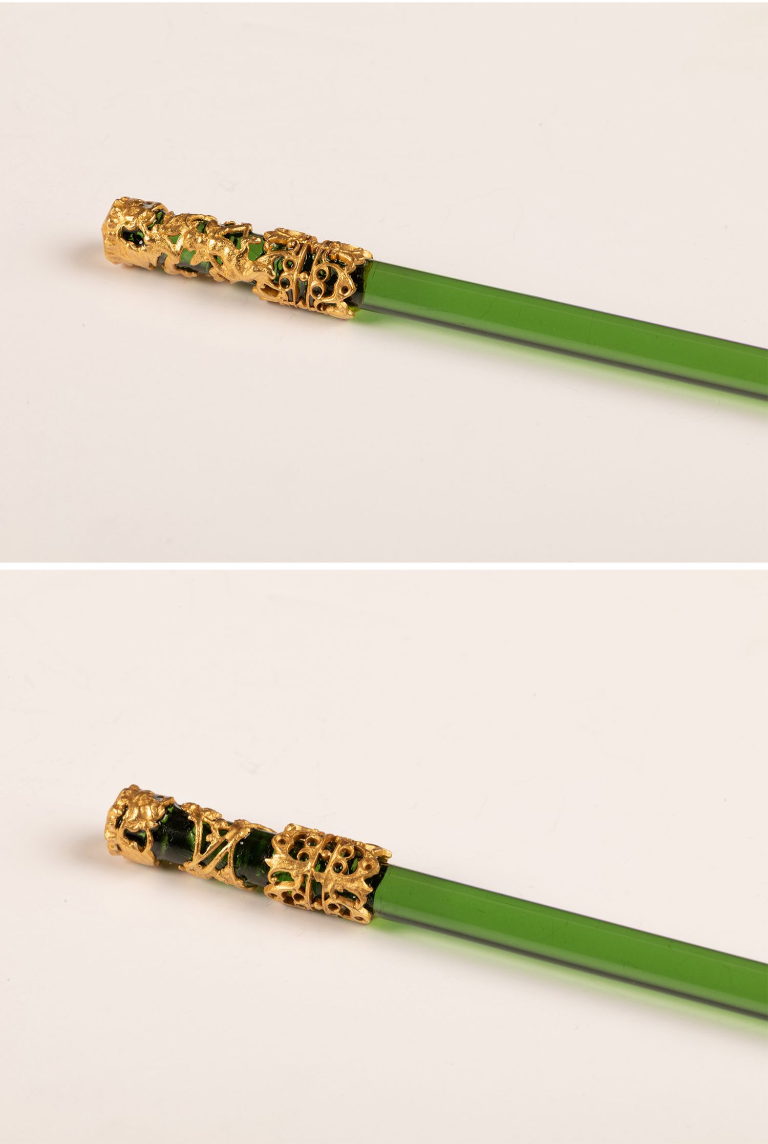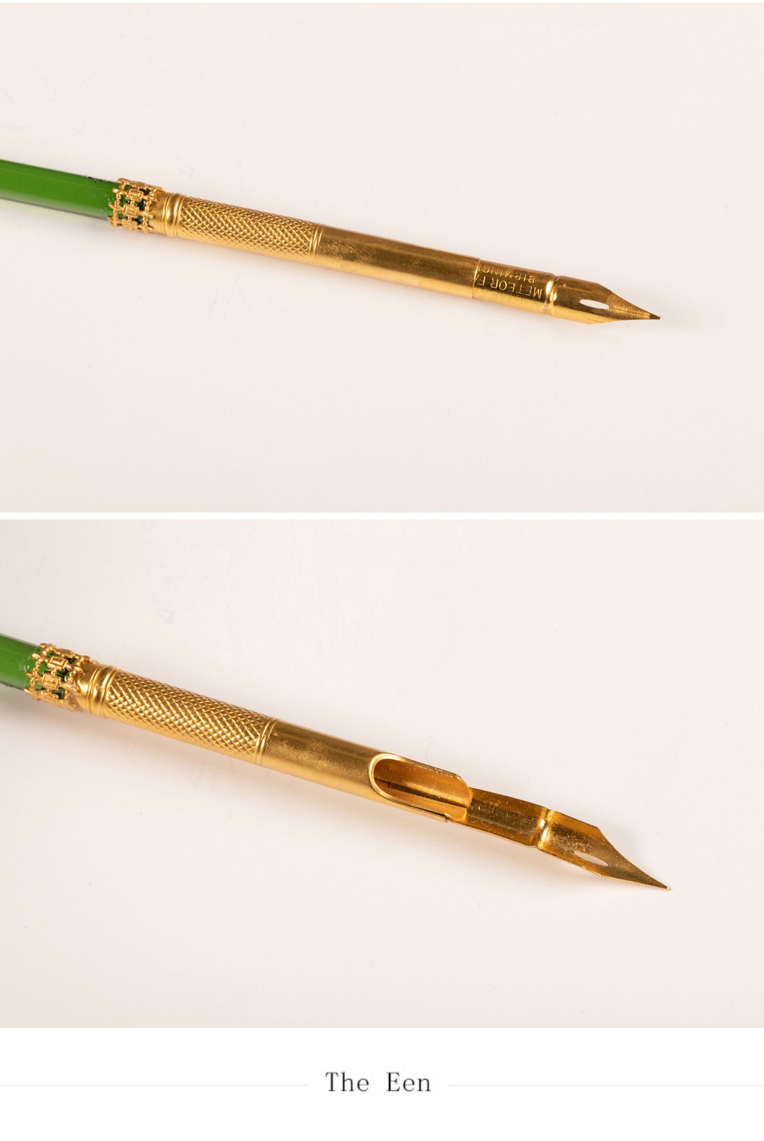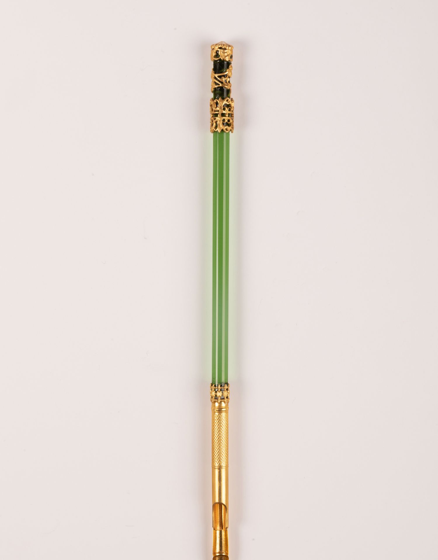 独角鹿西洋古董法国拿破仑三世时期铜鎏金镂空雕饰绿水晶蘸水笔