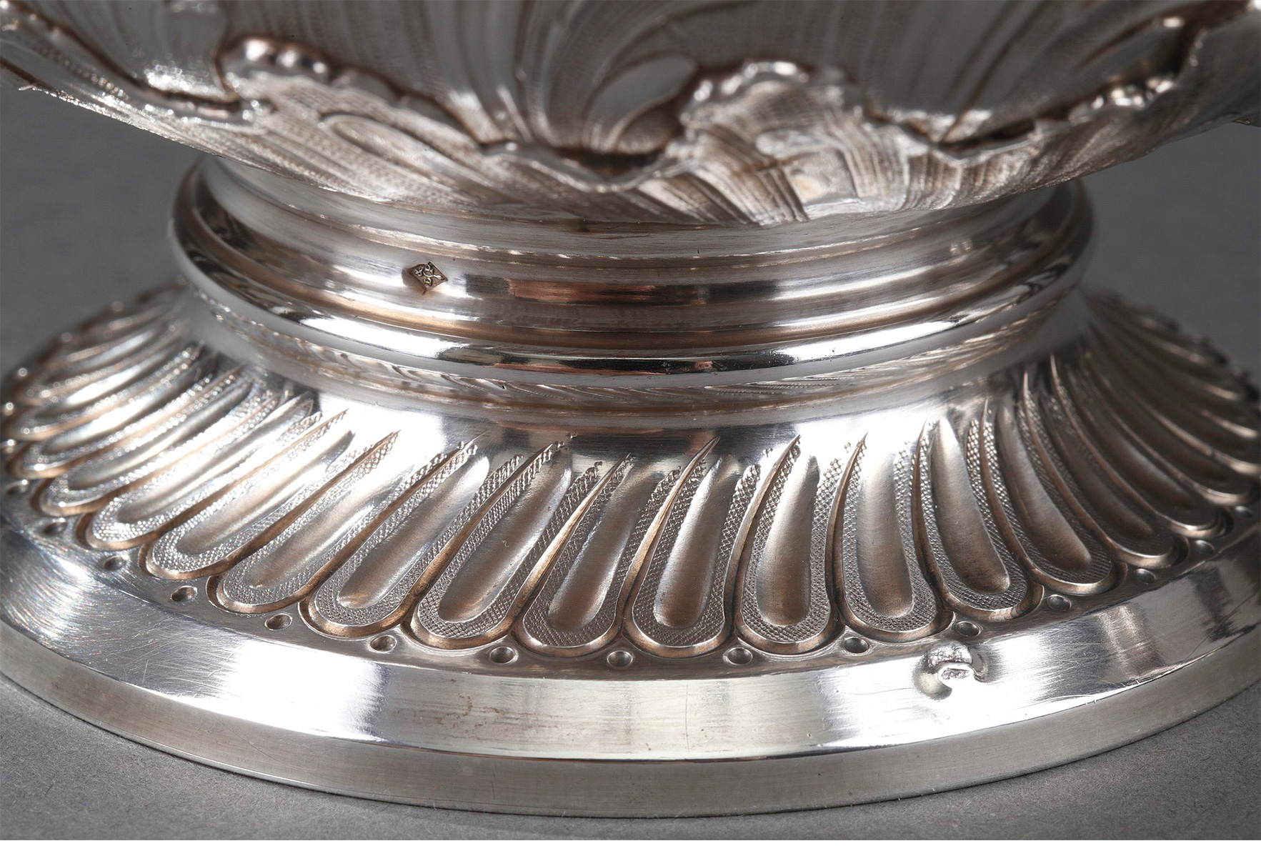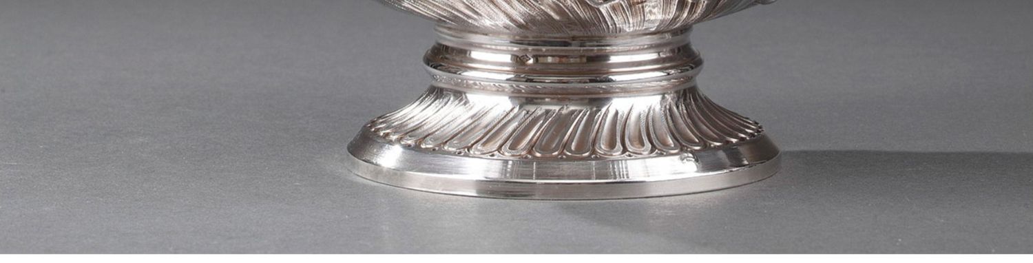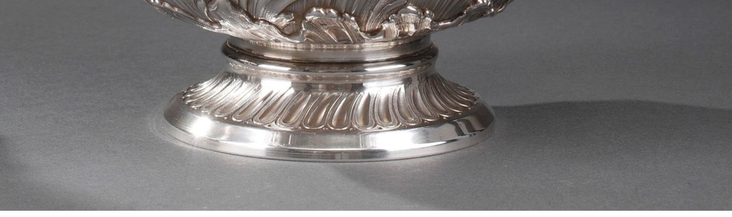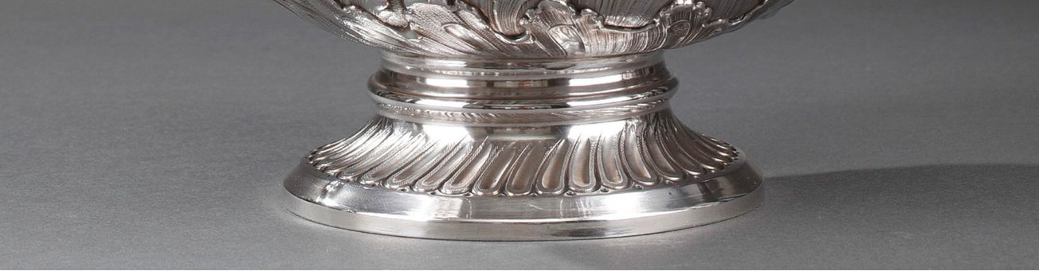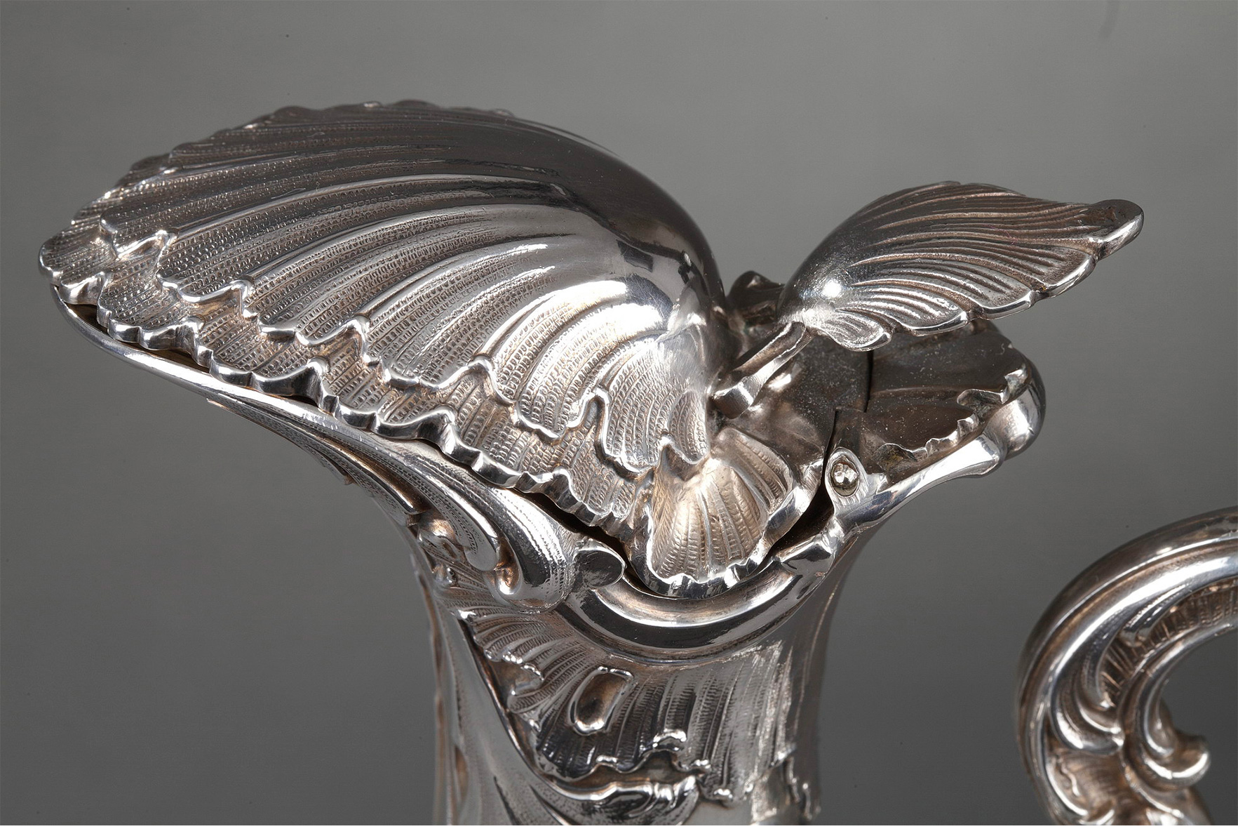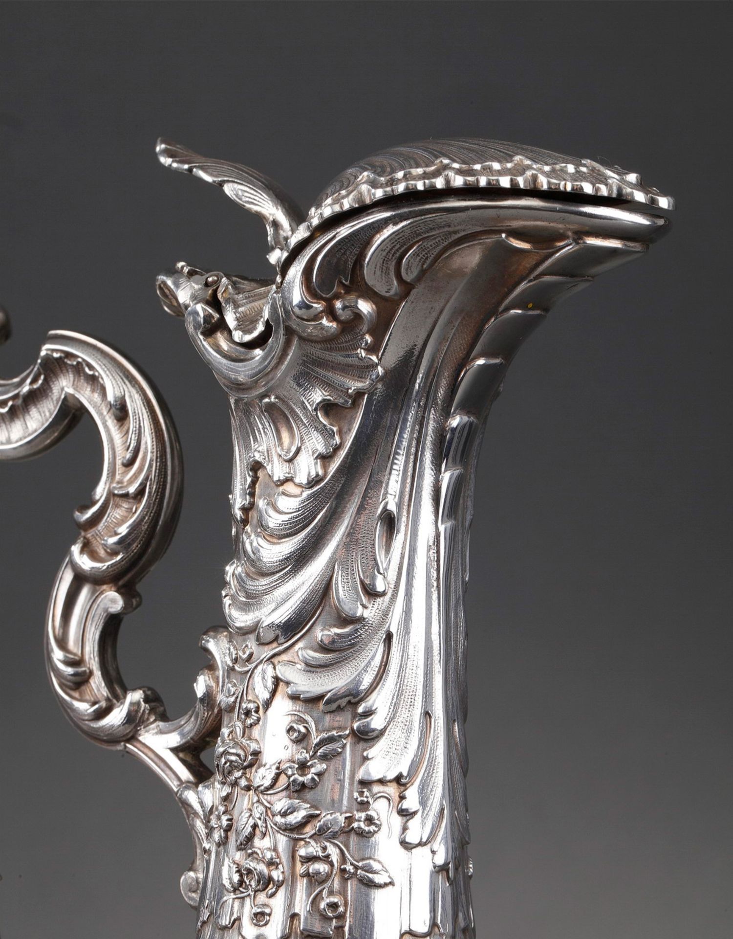 独角鹿西洋古董法国银匠工坊签名路易十五风纯银精雕水晶酒壶一对