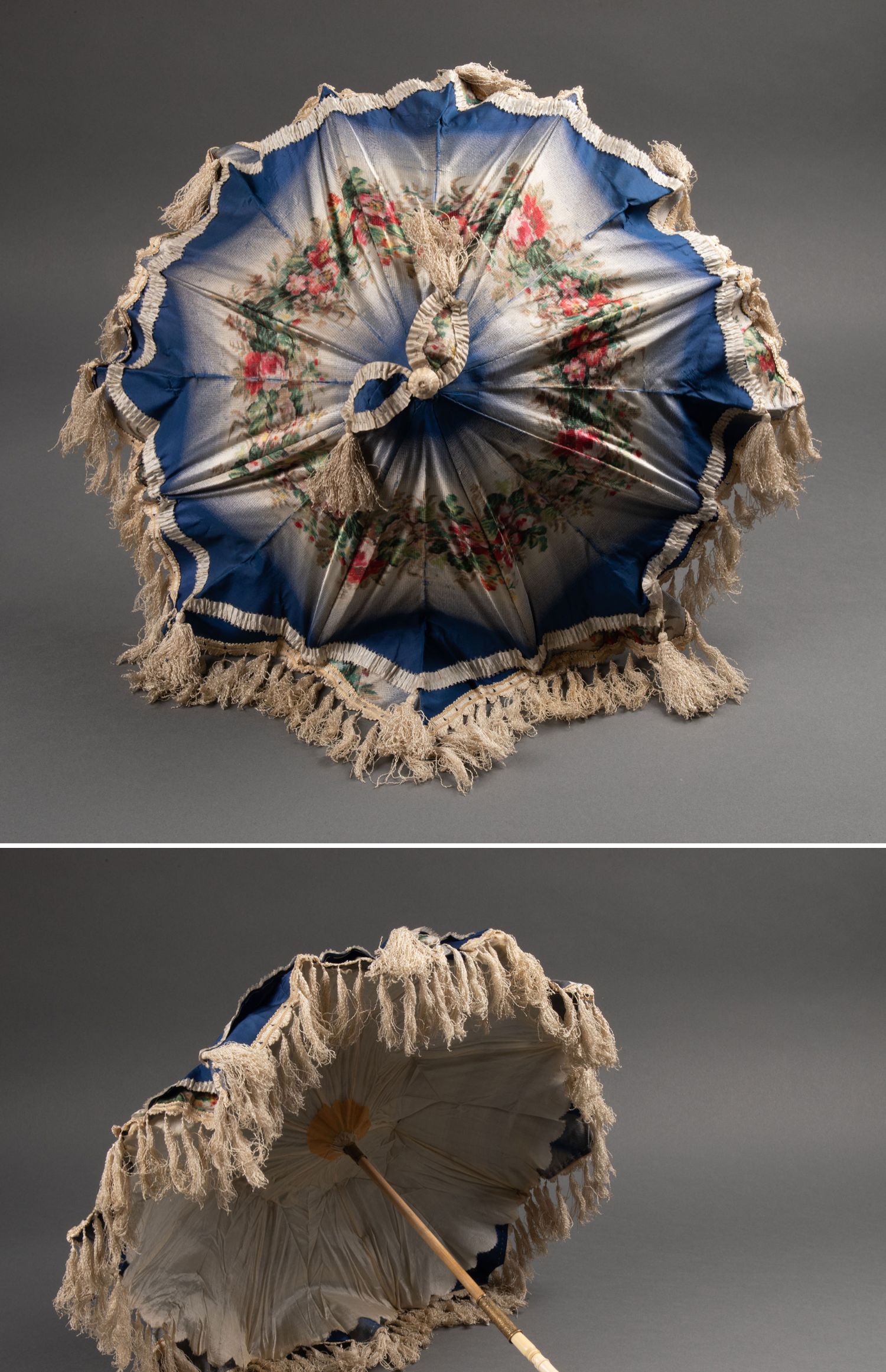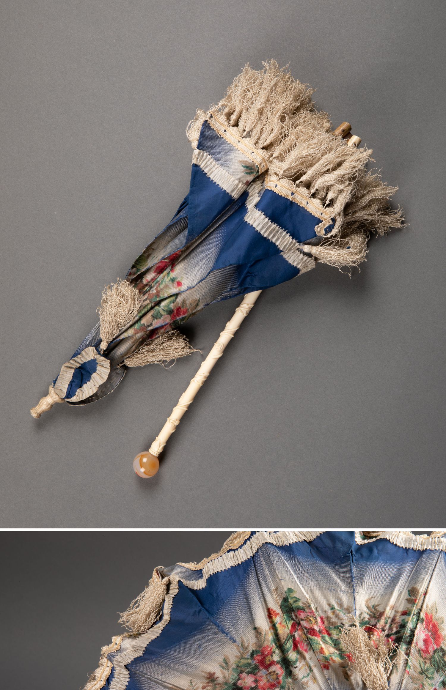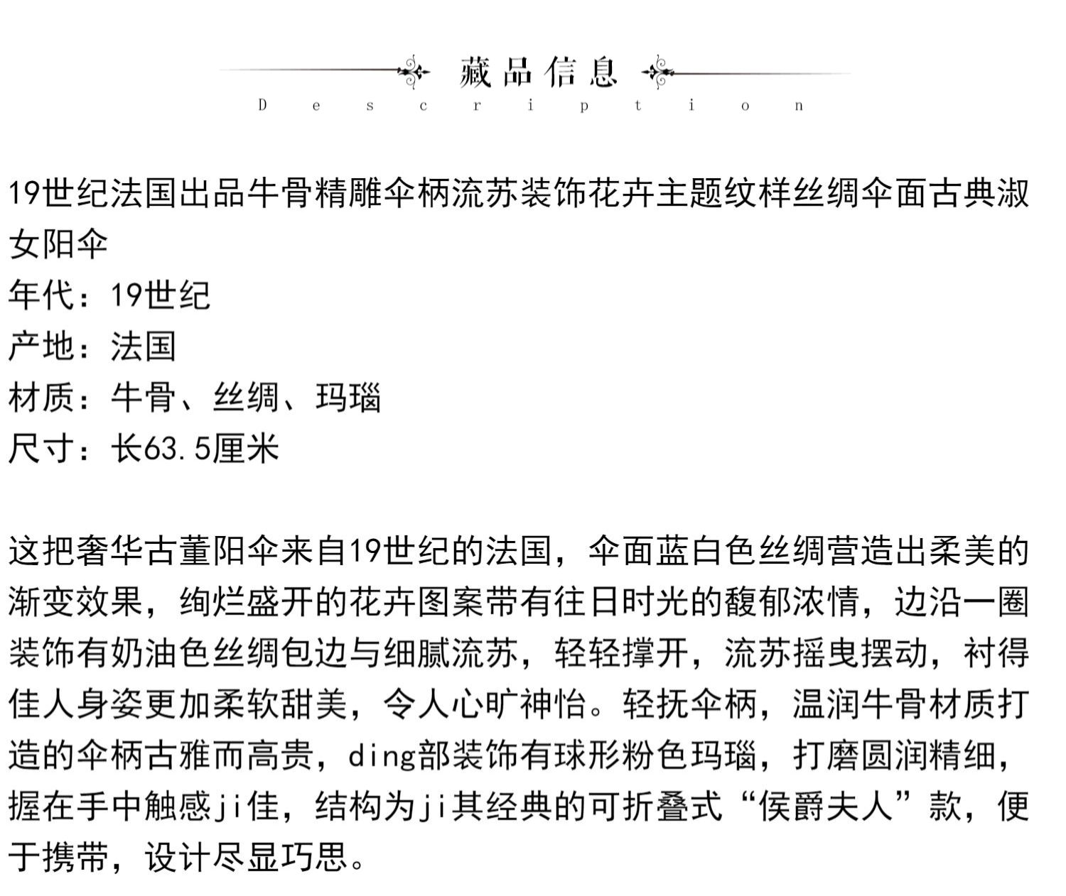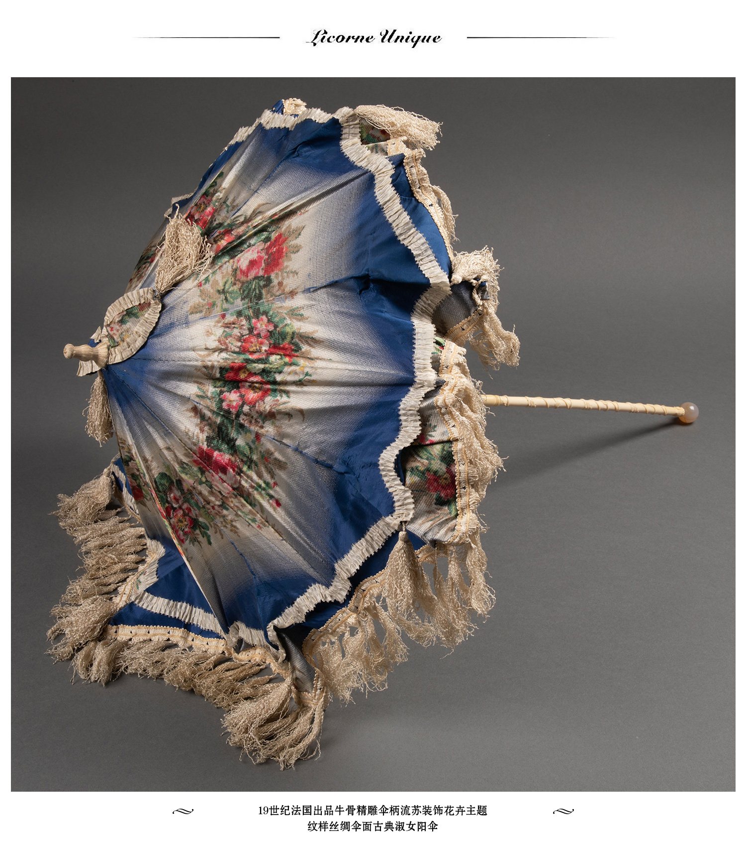 独角鹿西洋古董法国牛骨伞柄流苏花卉纹样丝绸伞面古典淑女阳伞