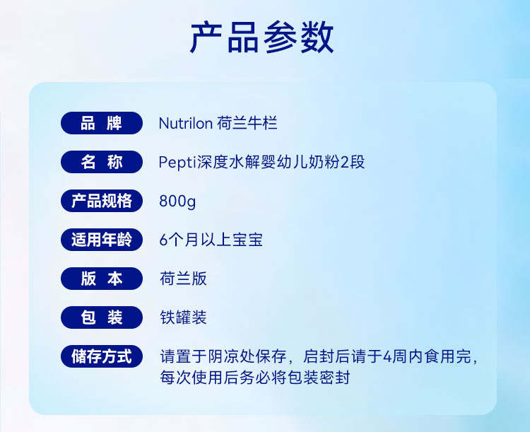 2罐【保税】荷兰牛栏深度水解婴幼儿奶粉Pepti2段800g/罐