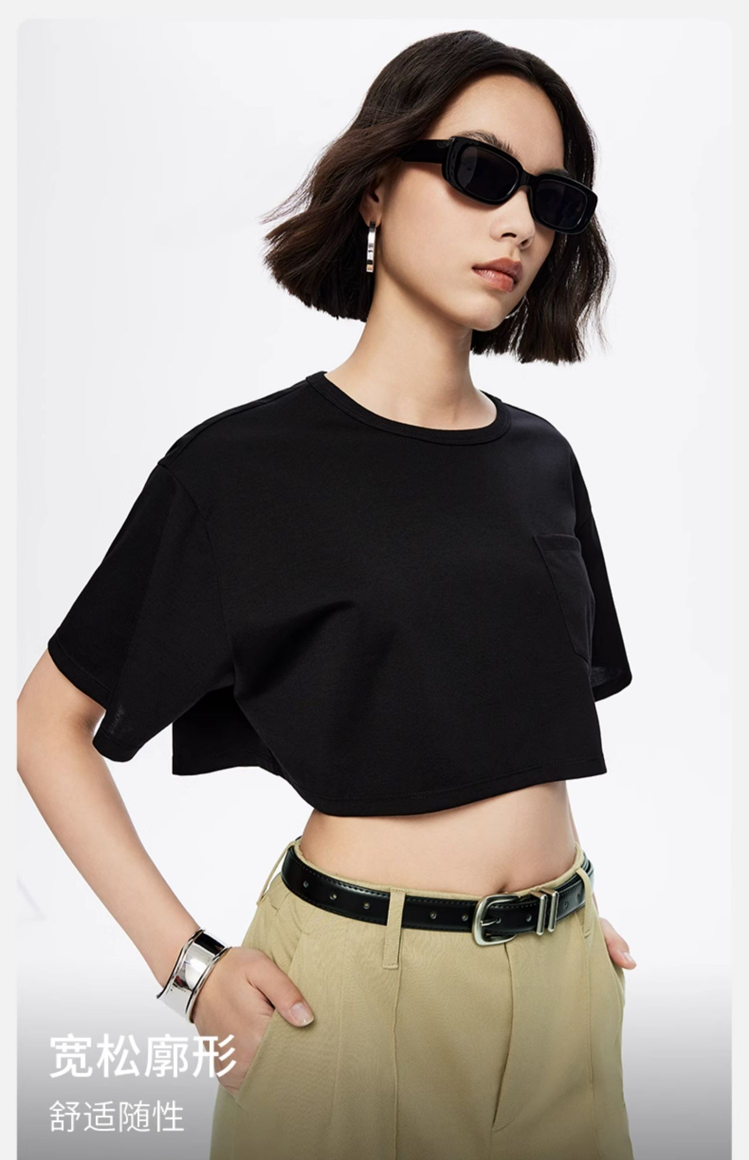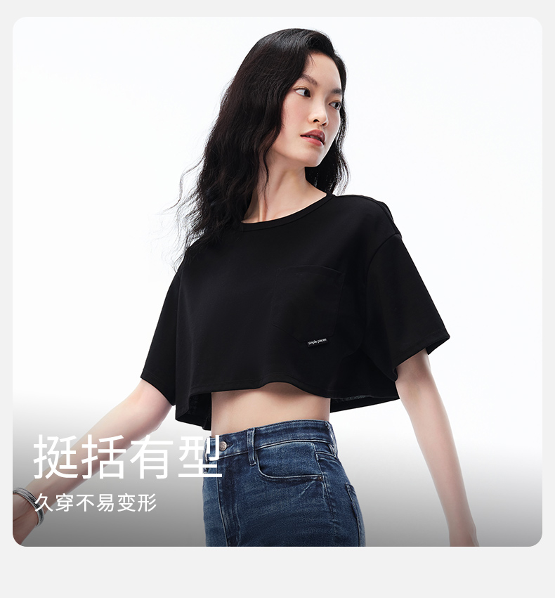 simplepieces春夏款SPST恤女天丝超短廓形短袖