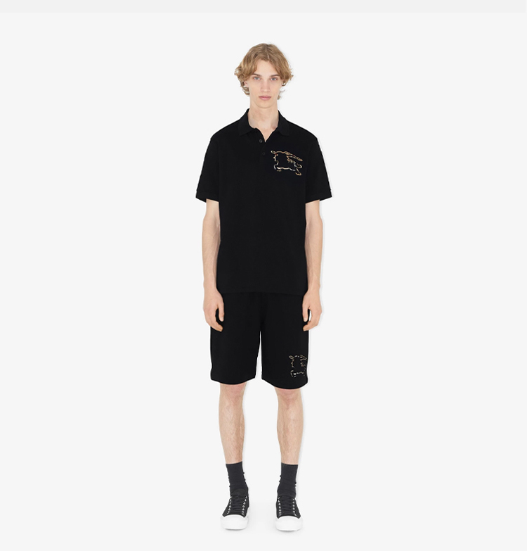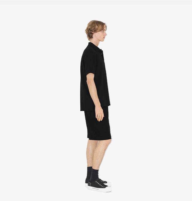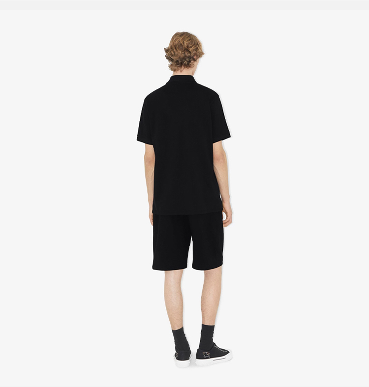 BURBERRY 巴宝莉 男士格纹马术骑士徽标棉质珠地网眼布短袖 Polo 衫 黑色 8070682 A1189