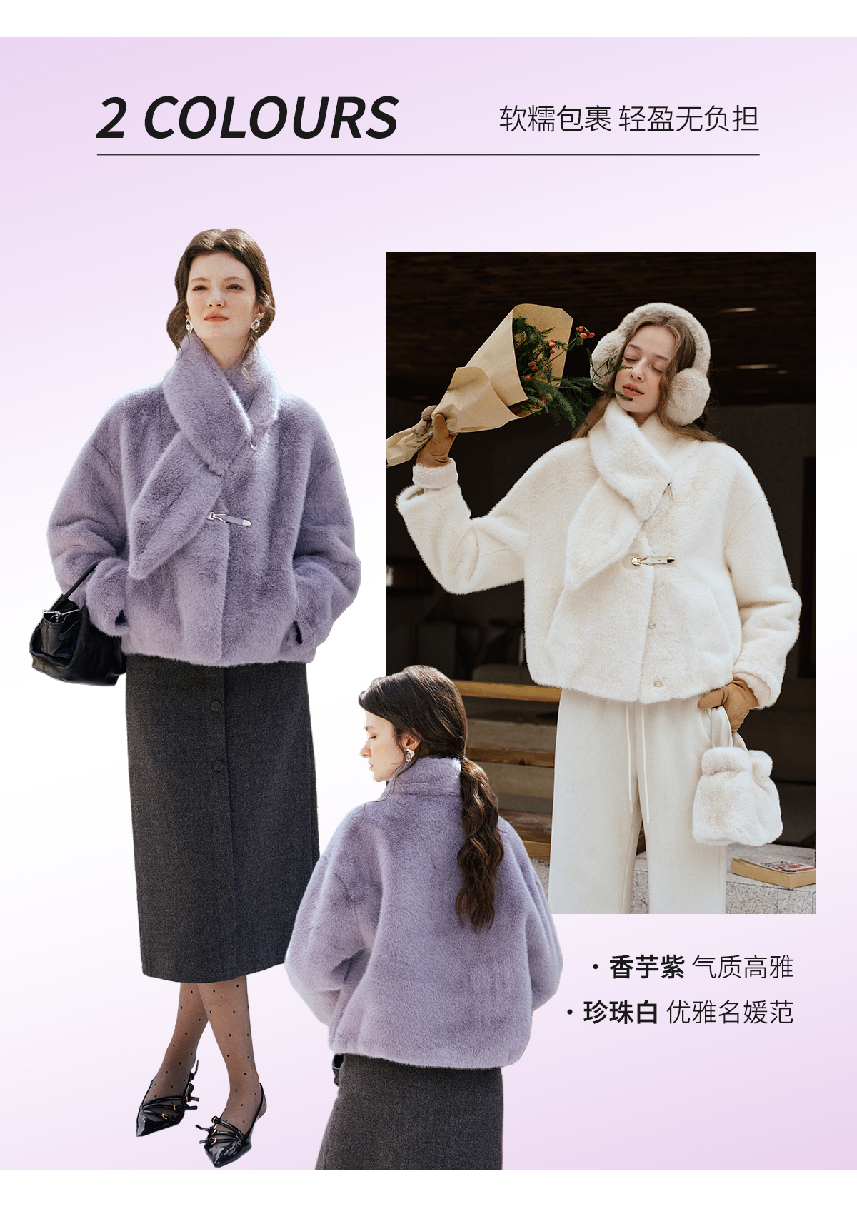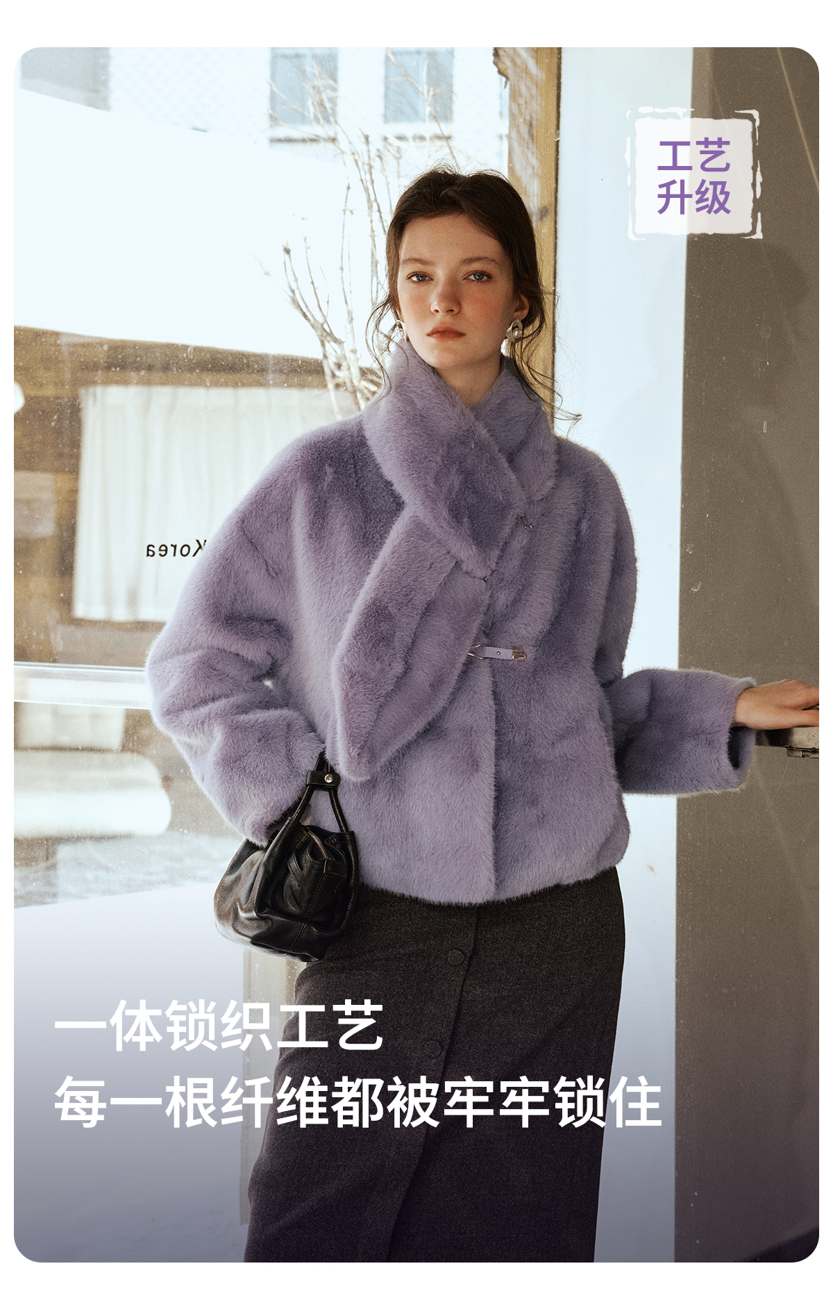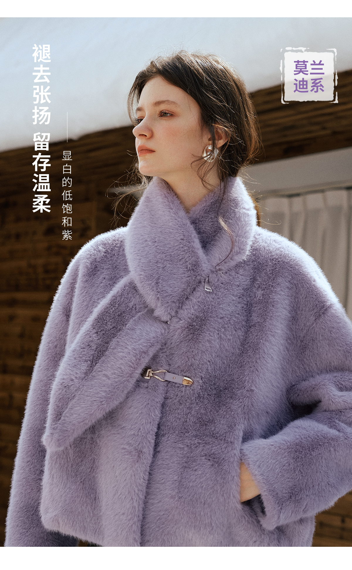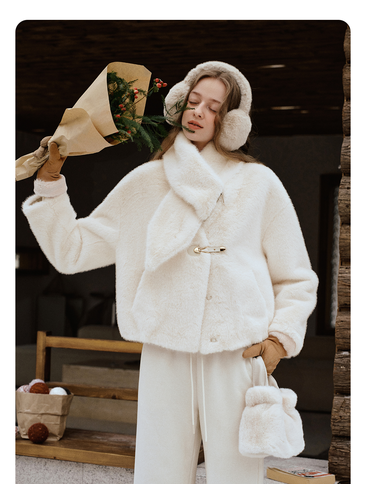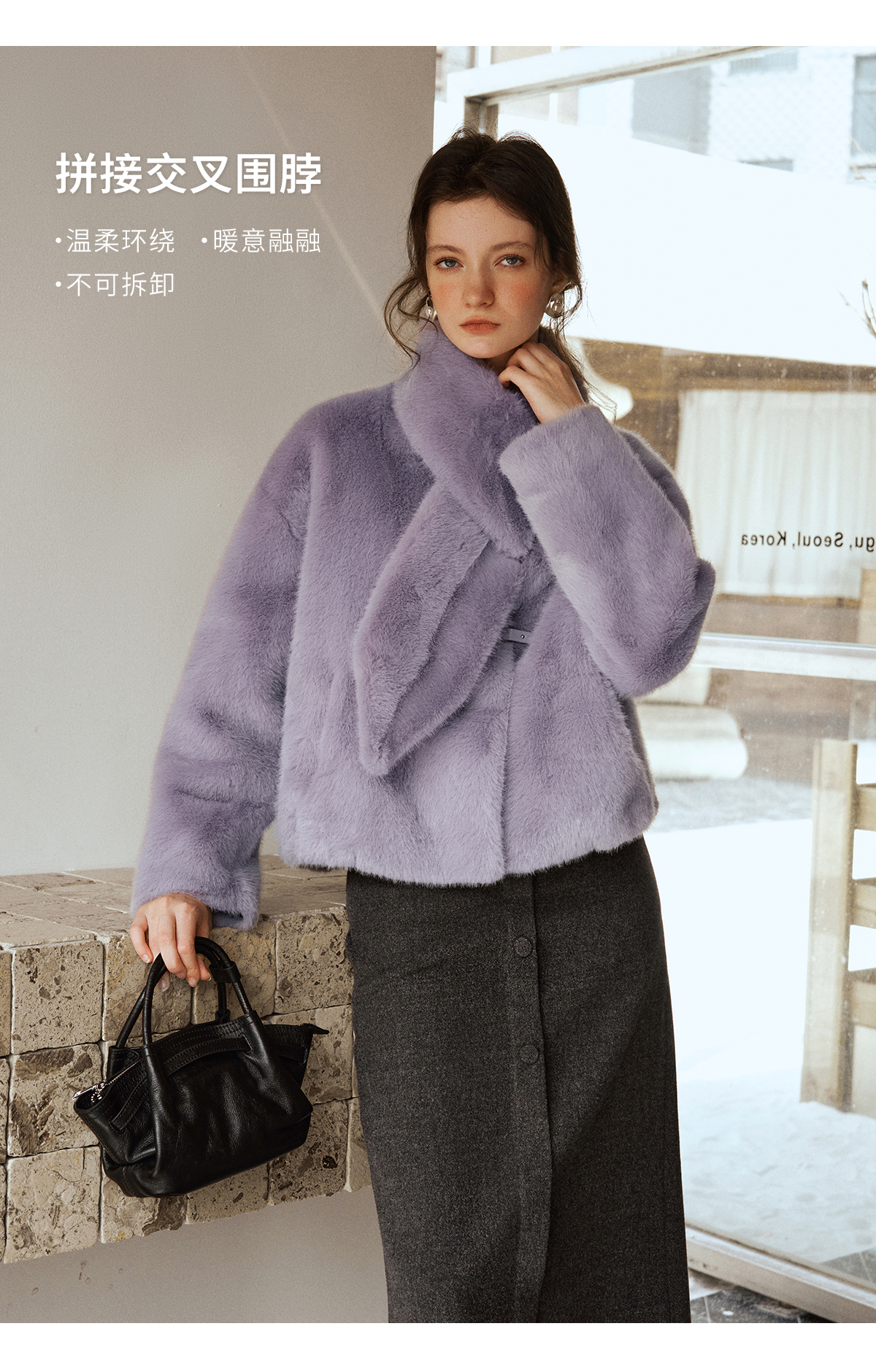 软糯仿生皮草外套带围巾设计感短款女冬季宽松毛茸茸皮毛一体外套