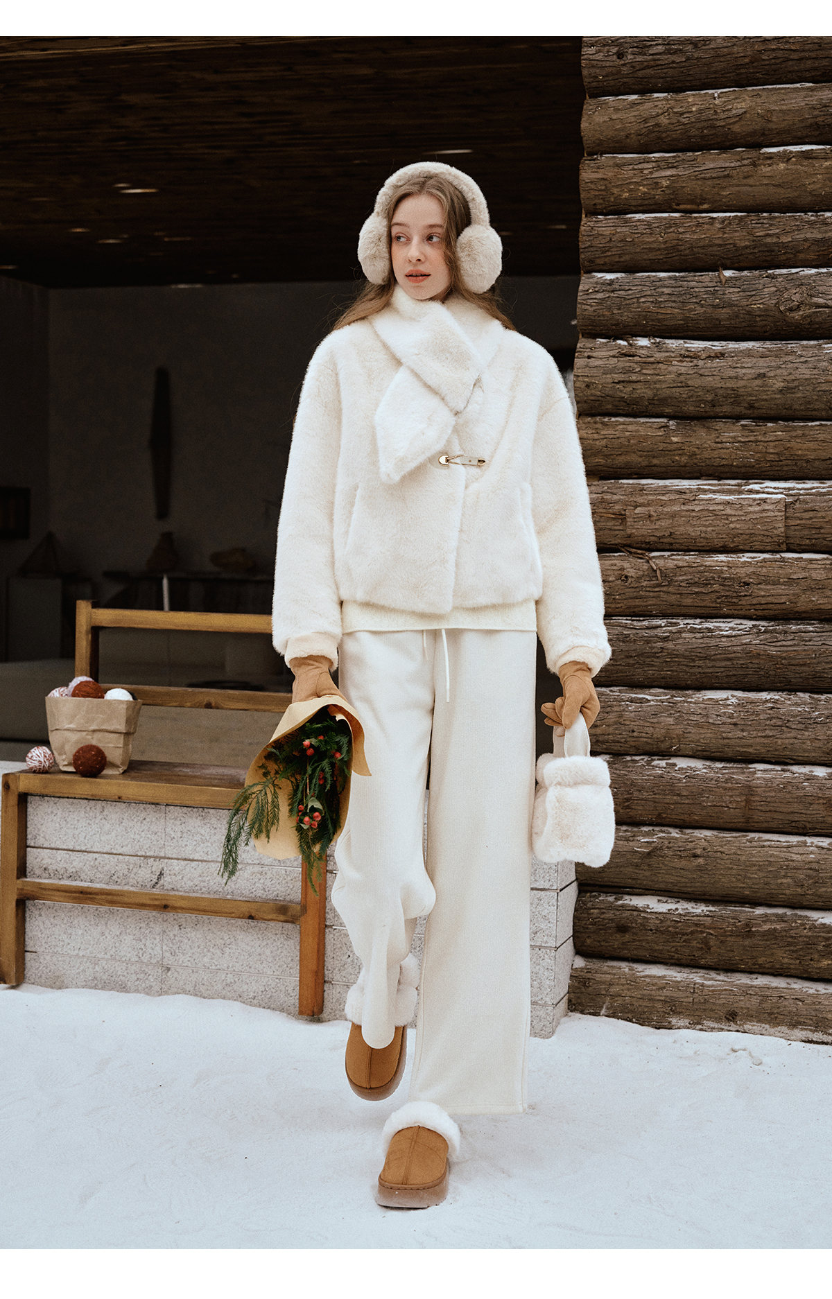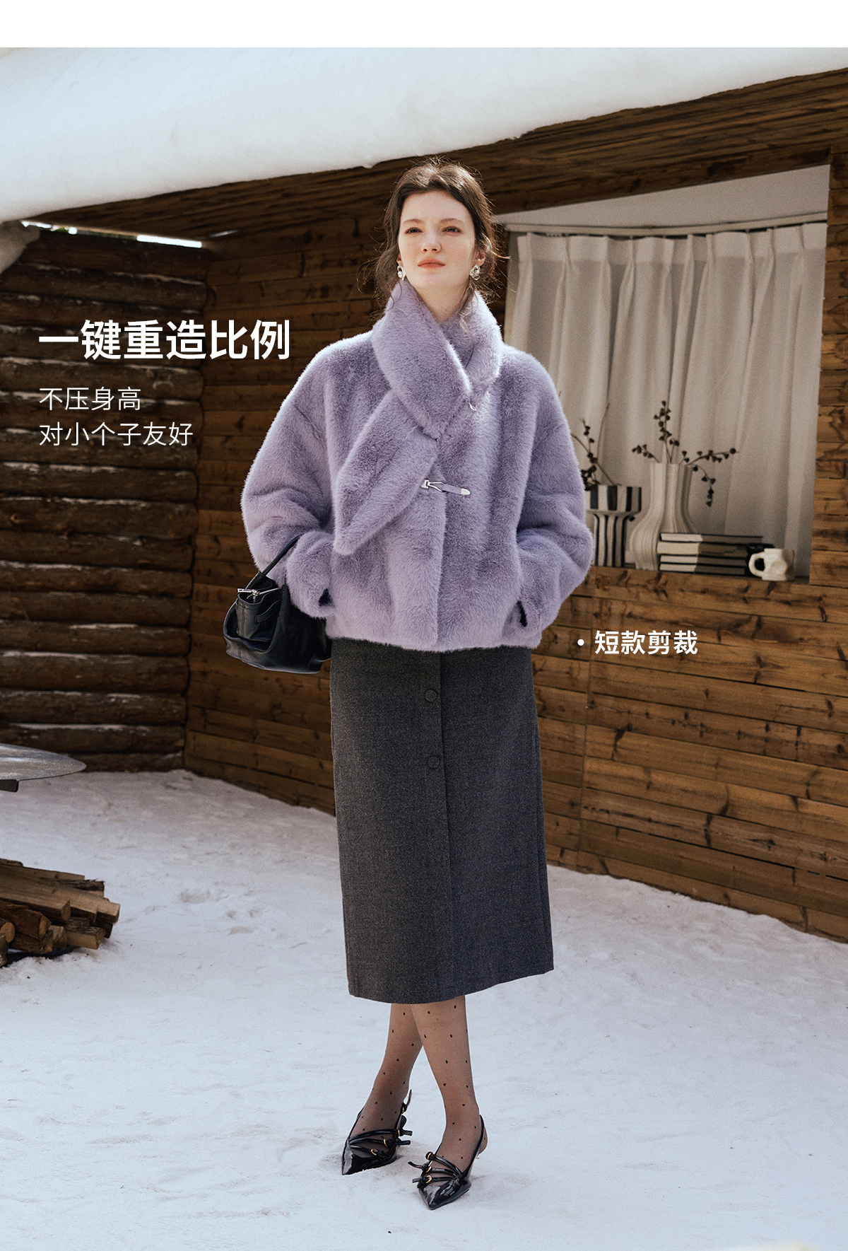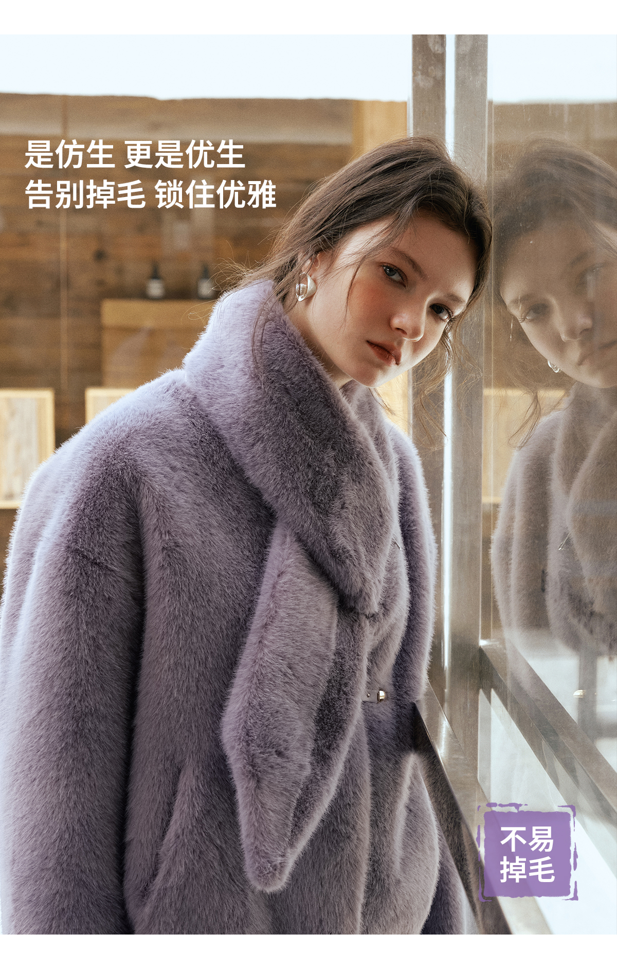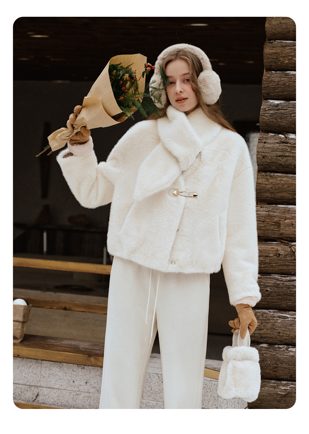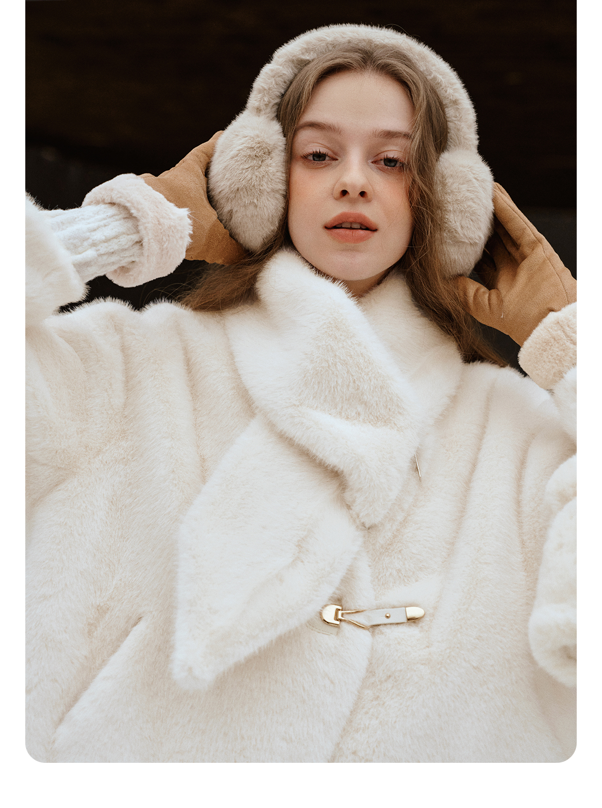 软糯仿生皮草外套带围巾设计感短款女冬季宽松毛茸茸皮毛一体外套