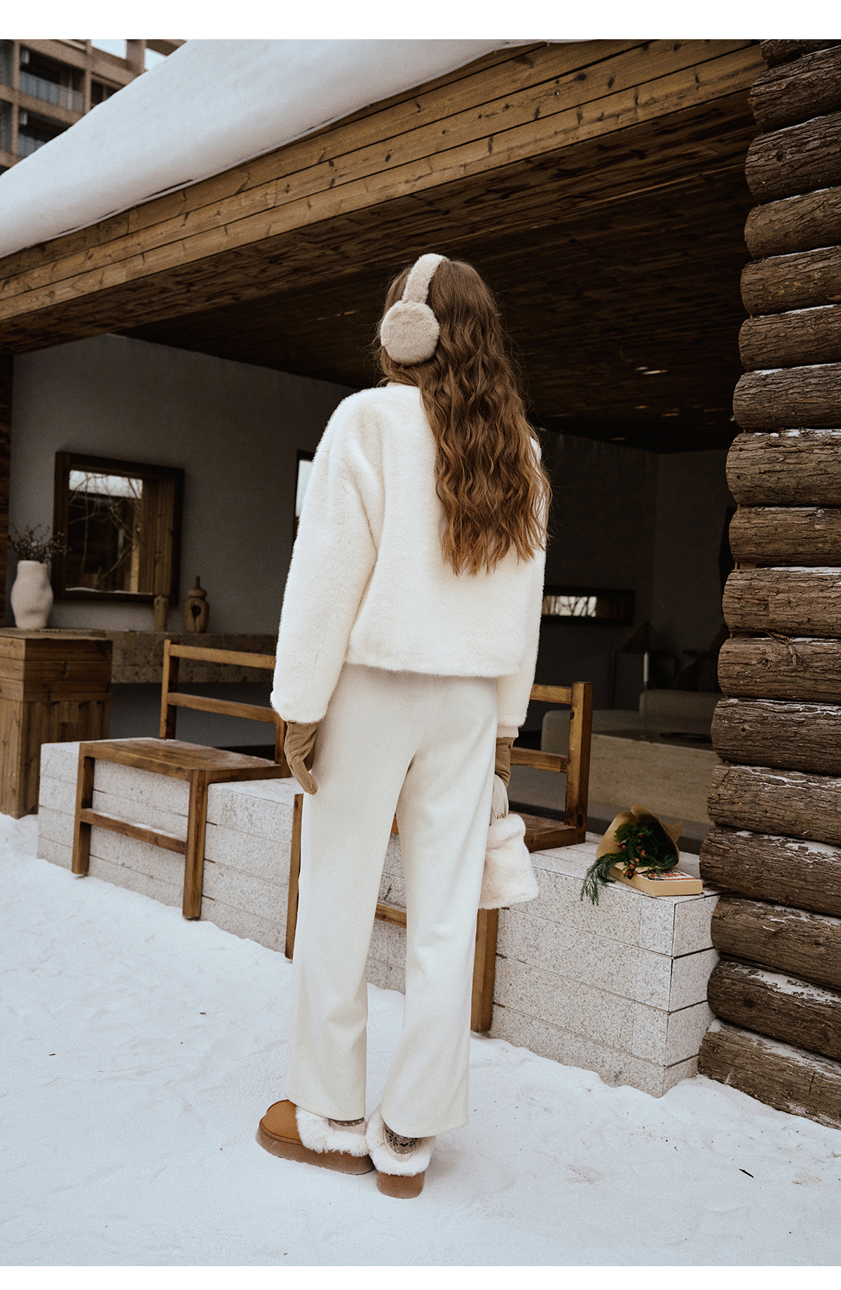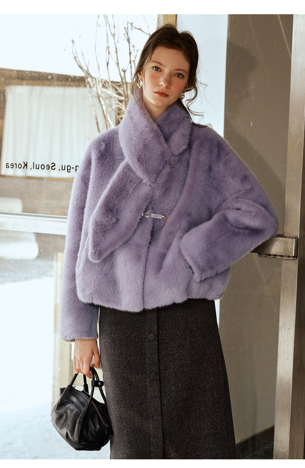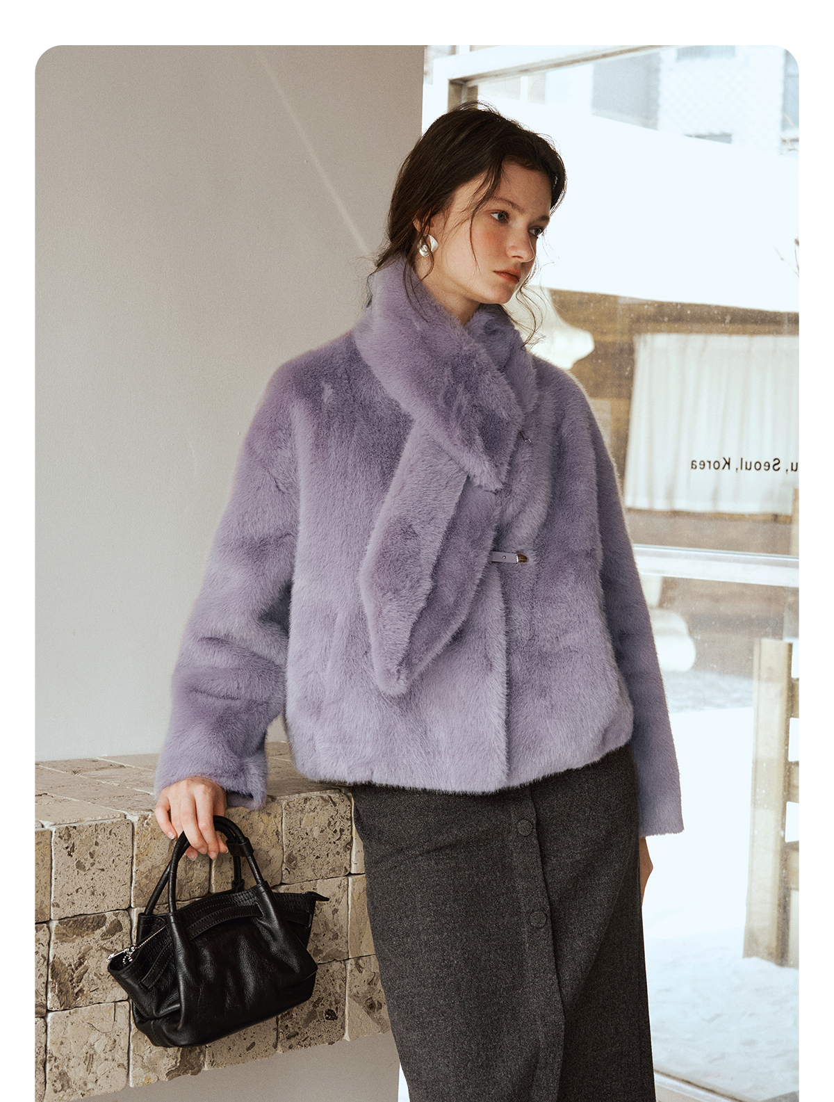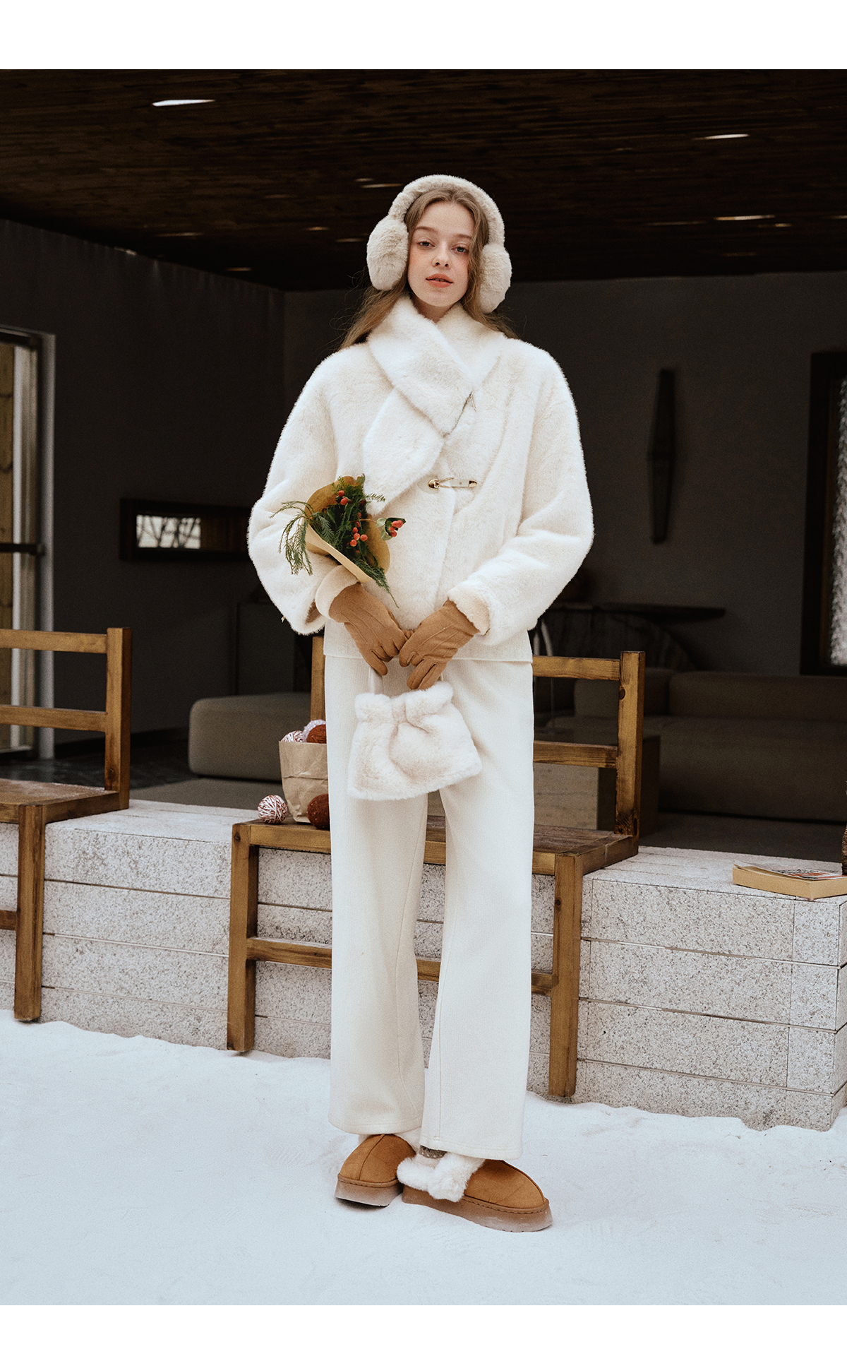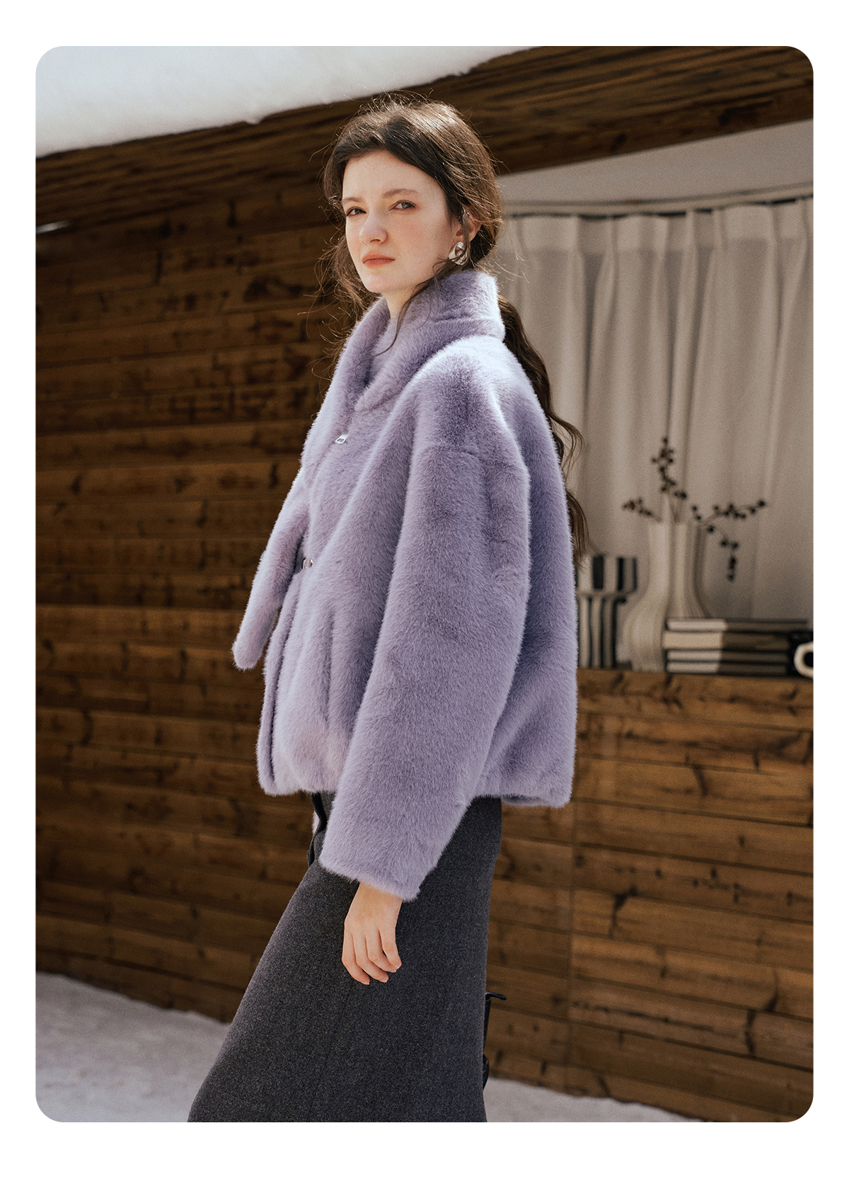 软糯仿生皮草外套带围巾设计感短款女冬季宽松毛茸茸皮毛一体外套
