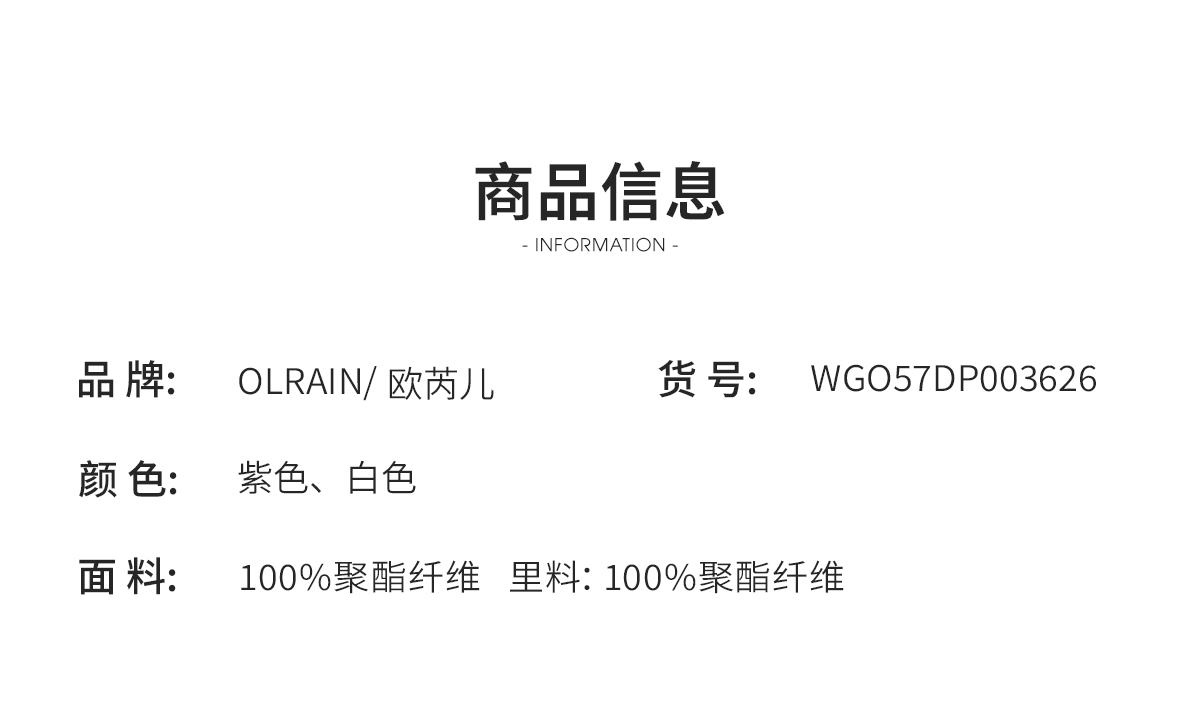 - “精致”是欧芮儿olrain品牌文化的核心,欧芮儿认为,精致的女人,不但要外在动人,更要内在迷人,内外兼修,有魅力、有气质、有内涵,自信而不自傲,优雅而不矫揉,自有万种风情而不轻浮,更不故作矜持。