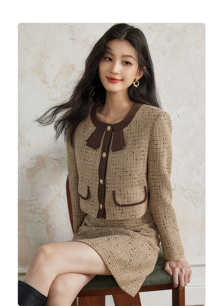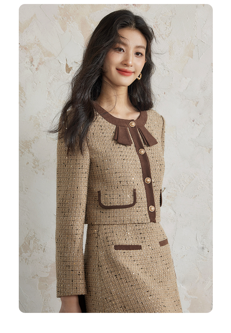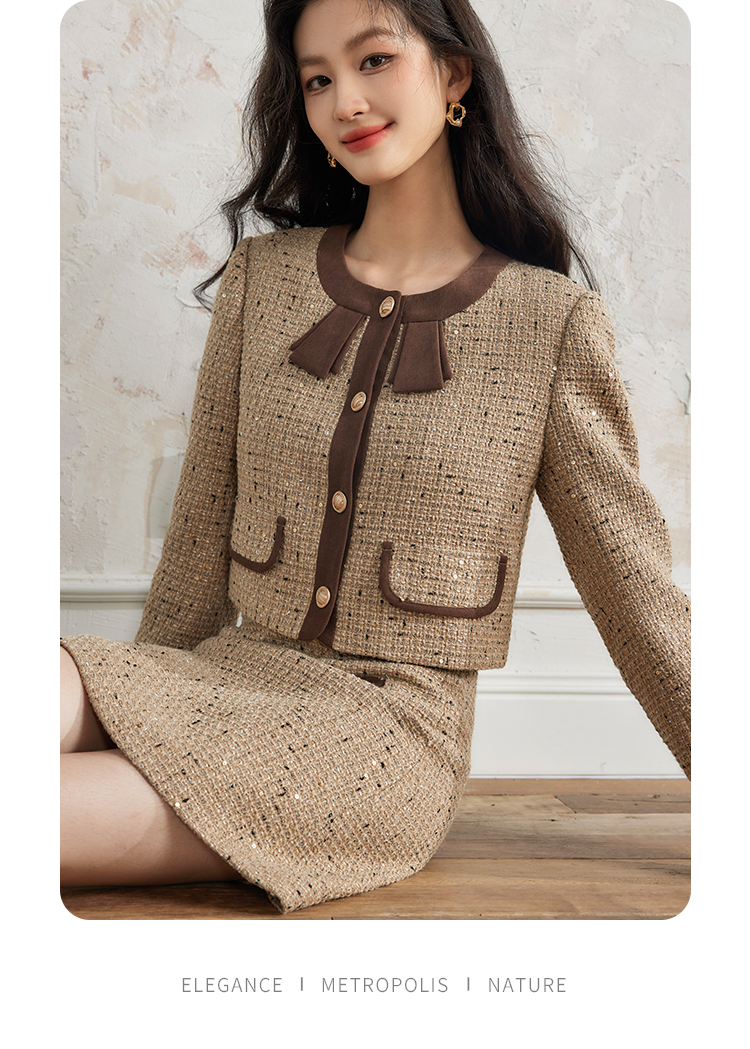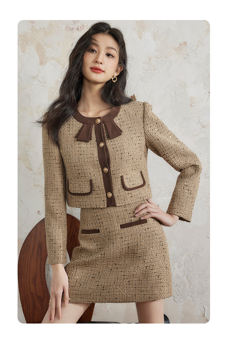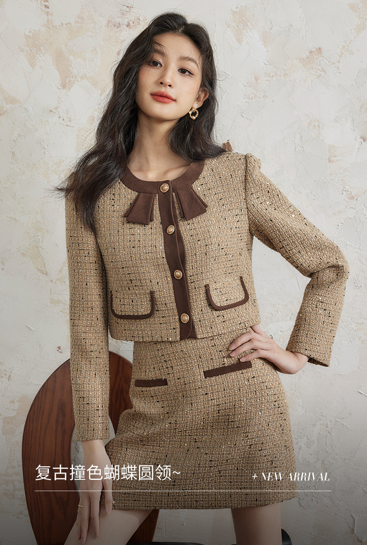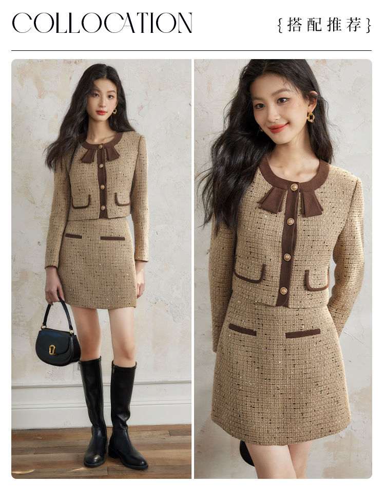 【年货节】熙世界法式富家千金套装女2025秋冬款小香风短外套a字短裙两件套