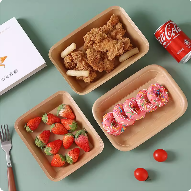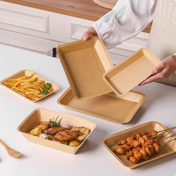 【50个装】 牛皮纸托盘 一次性烧烤餐盘纸托盘 薯条纸盒炸鸡热狗纸盘