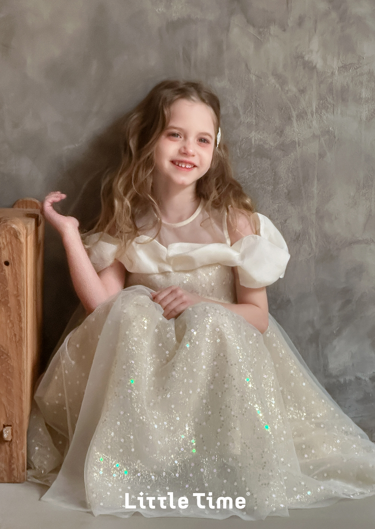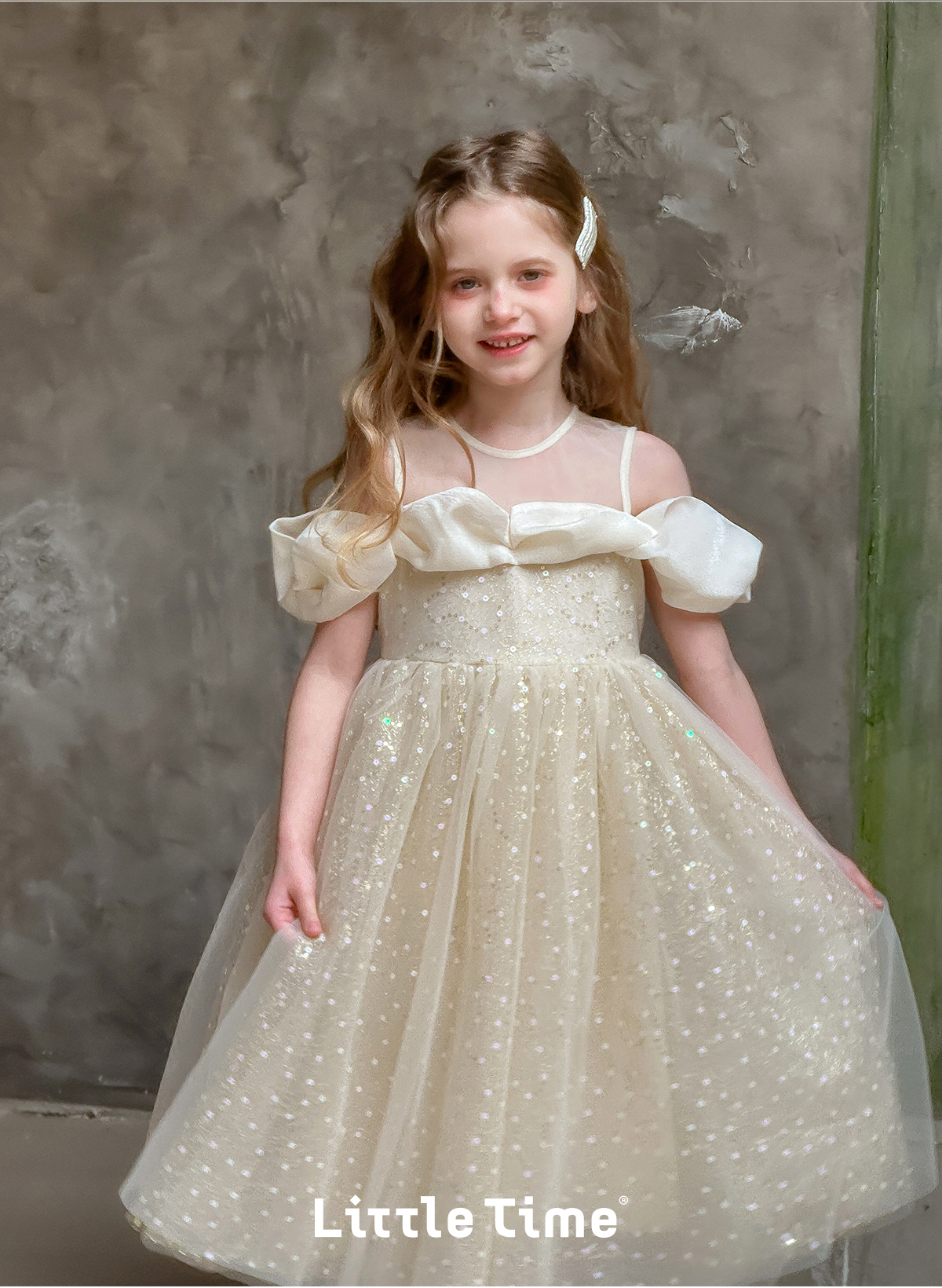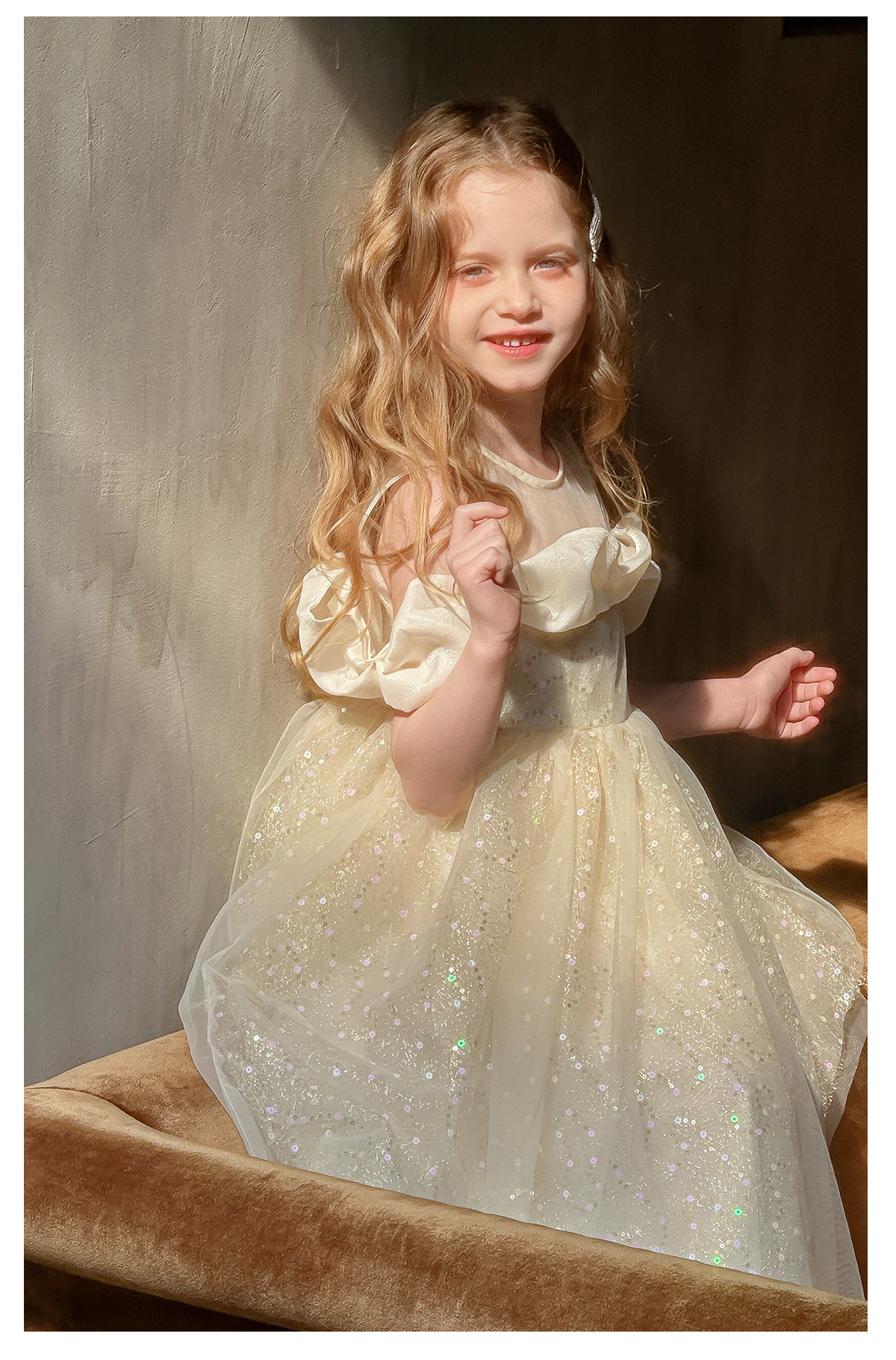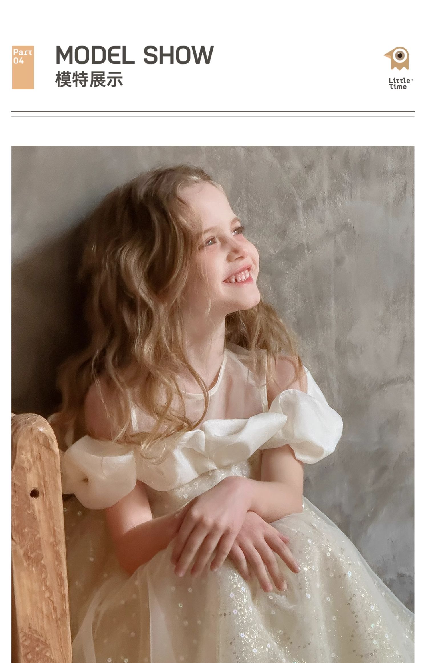Little time女童公主裙2025夏季小女孩泡泡袖洋气连衣裙生日礼服