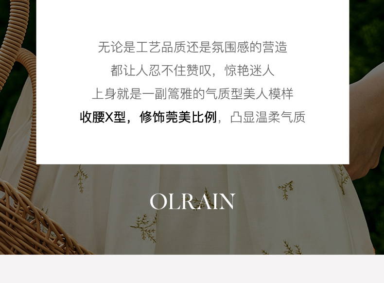 - “精致”是欧芮儿olrain品牌文化的核心,欧芮儿认为,精致的女人,不但要外在动人,更要内在迷人,内外兼修,有魅力、有气质、有内涵,自信而不自傲,优雅而不矫揉,自有万种风情而不轻浮,更不故作矜持。