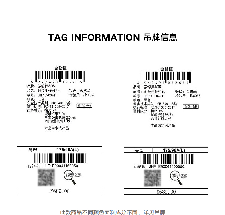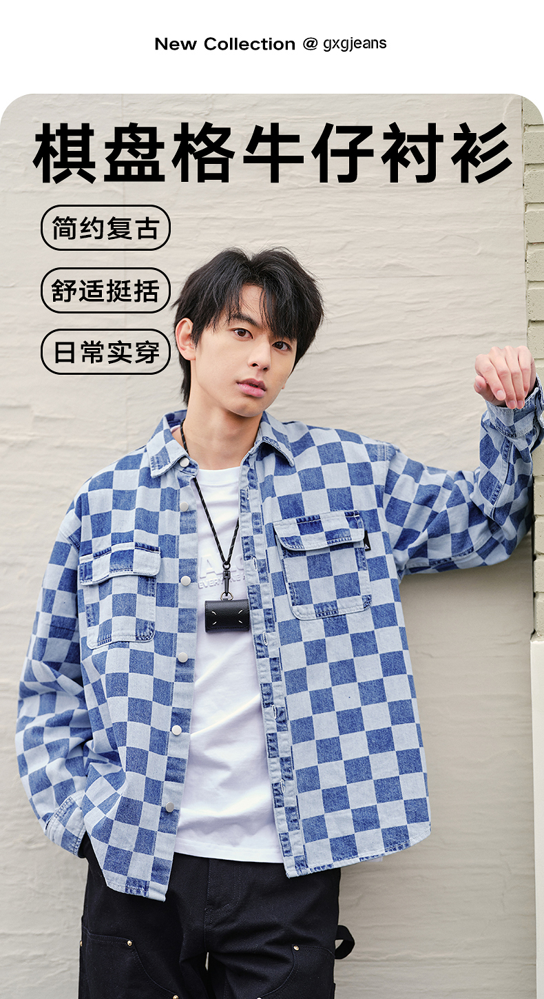 gxg.jeans男装2024年春季热卖翻领双色 牛仔衬衫JHF1E900411