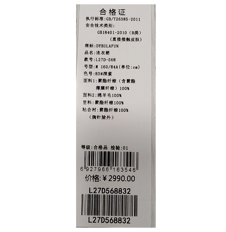 戴布拉芬连衣裙L27D568