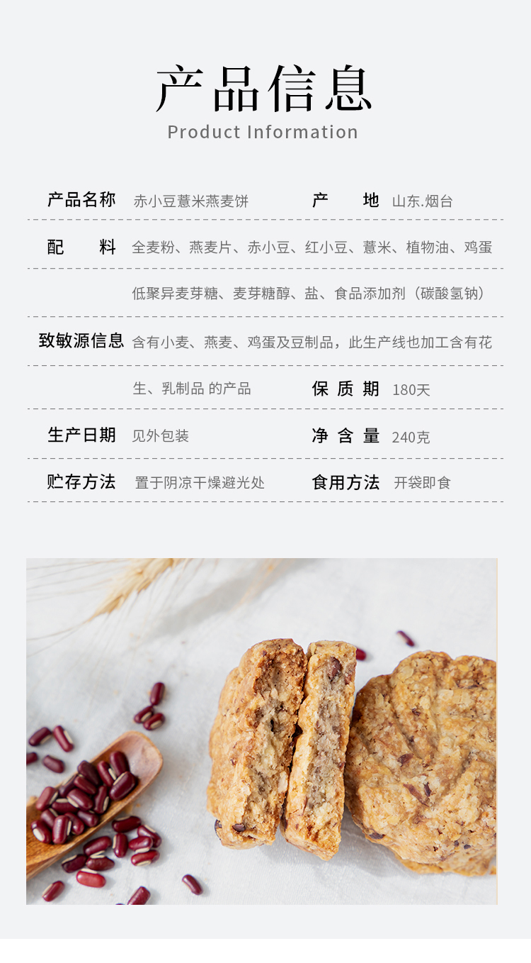 赤小豆薏米燕麦饼粗粮饼饱腹早晚代餐休闲零食240g/袋