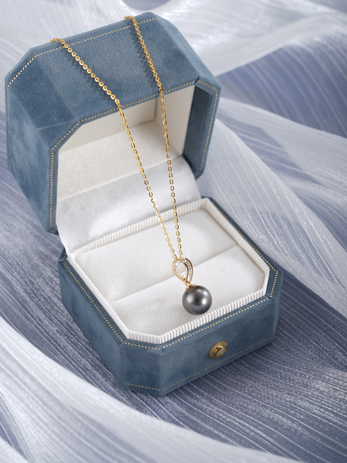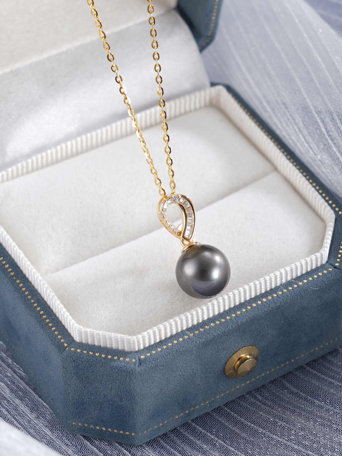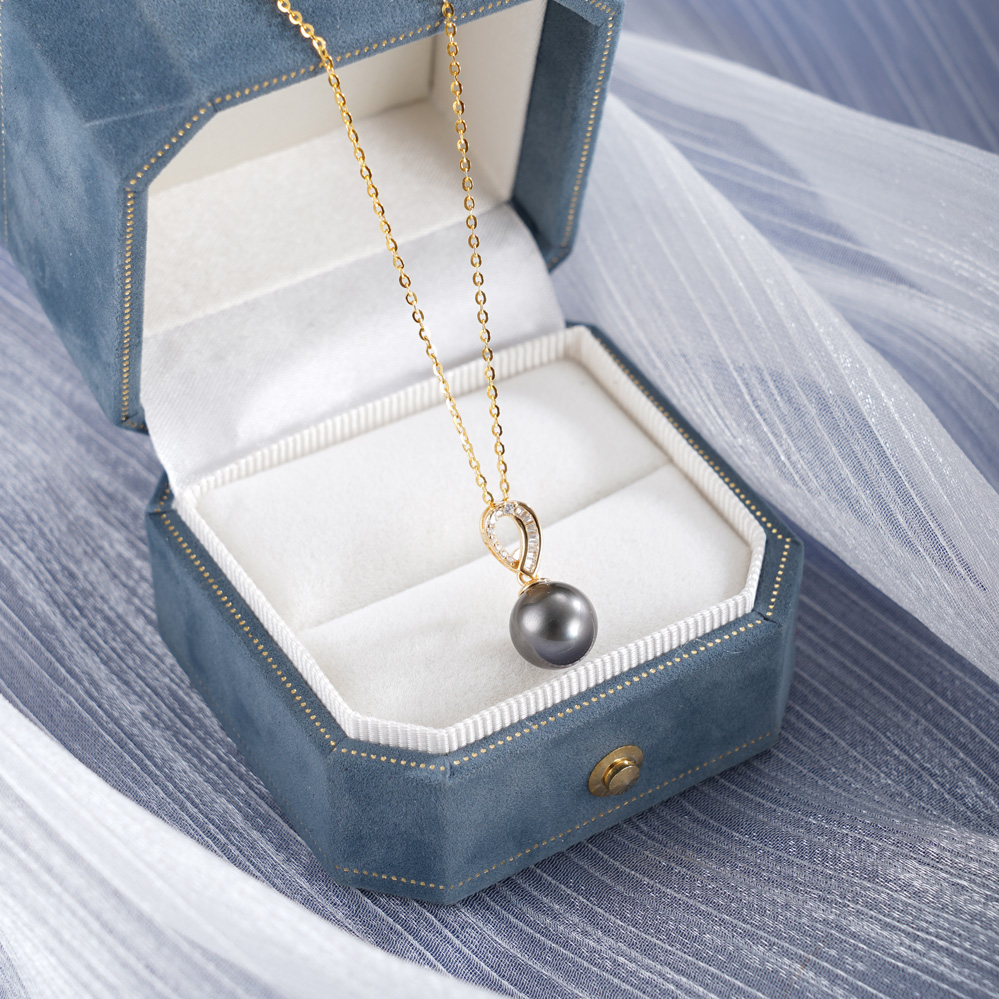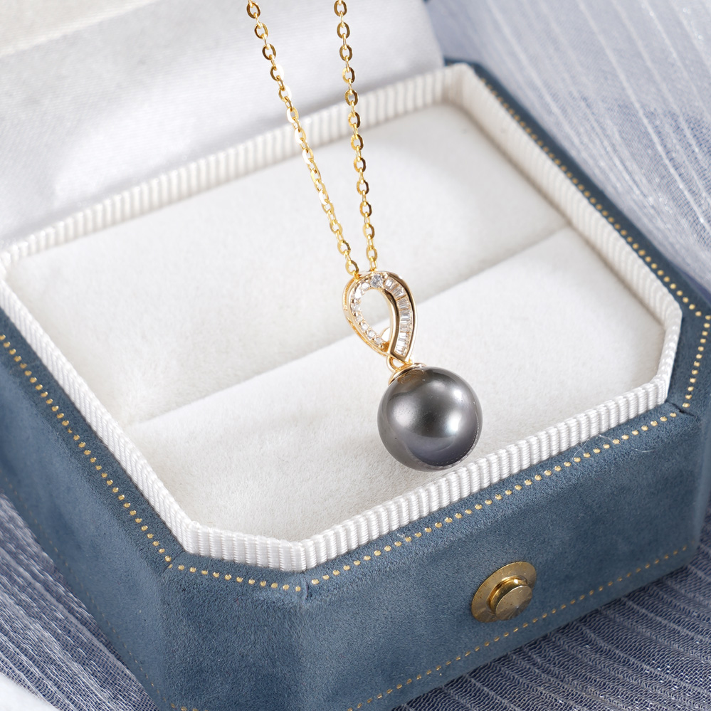 子佩集【曦华曳梦】银S925珍珠惜王妃套链【P3120】9mm珠镀金黑珠水滴2601