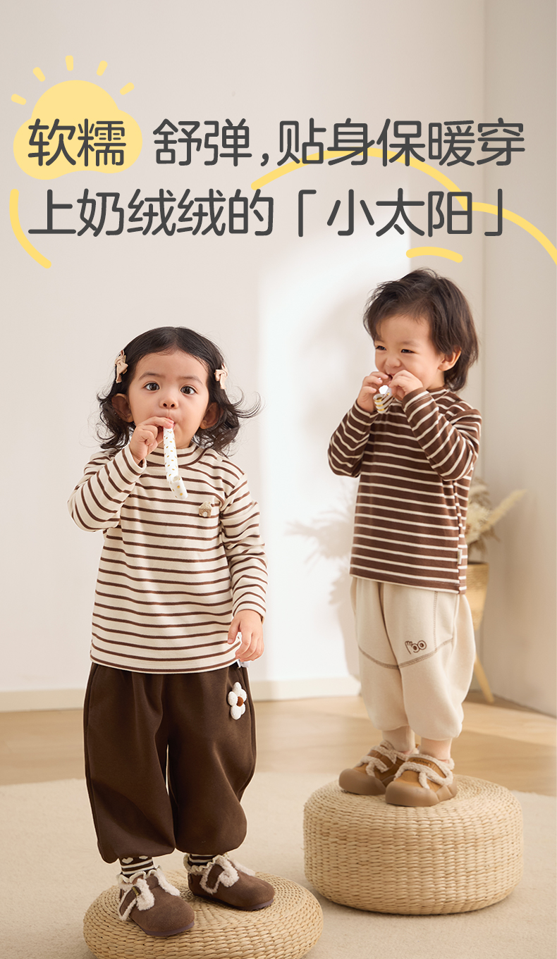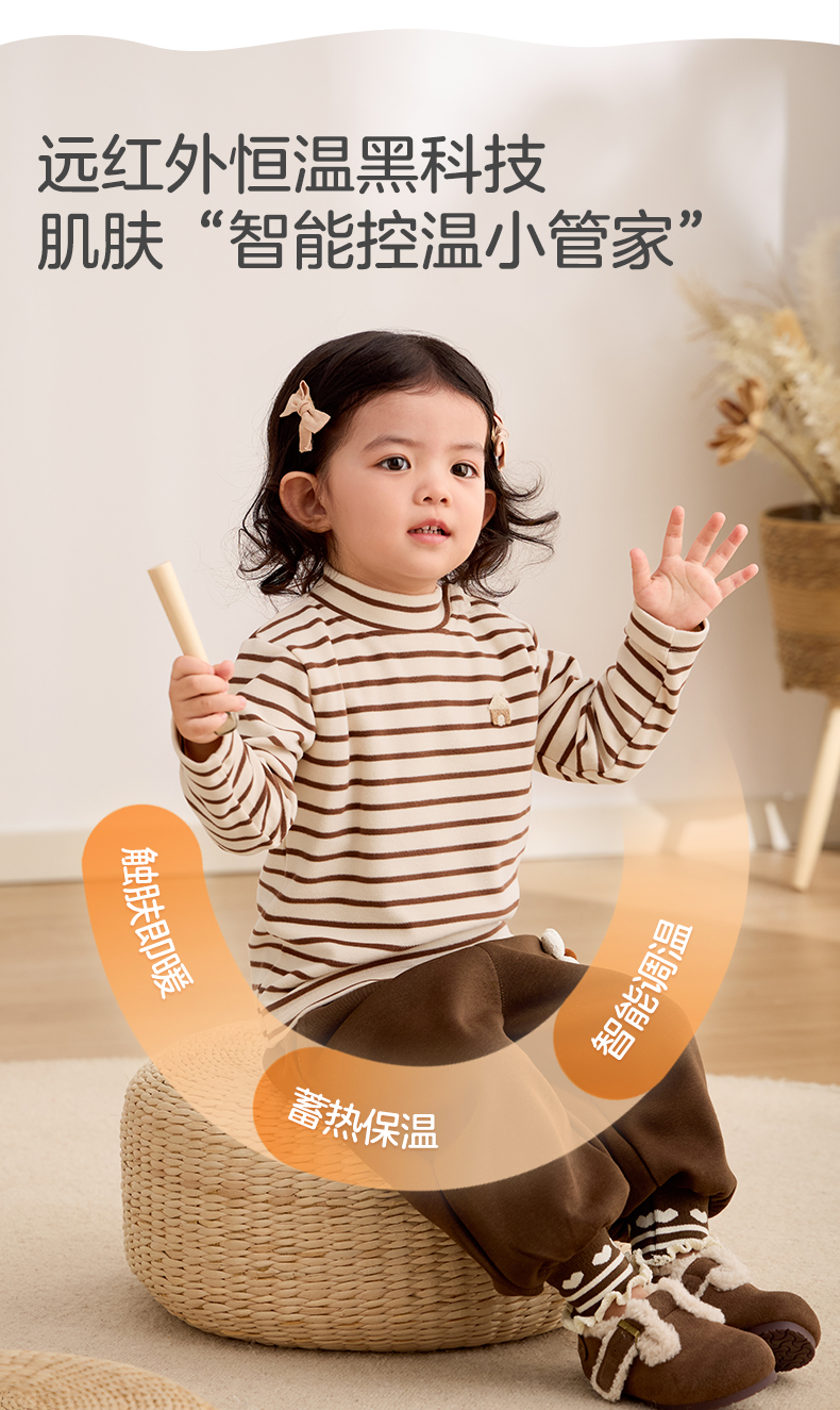 粒粒阳光男女童长袖t恤儿童打底衫秋冬恒温保暖圆领内衣