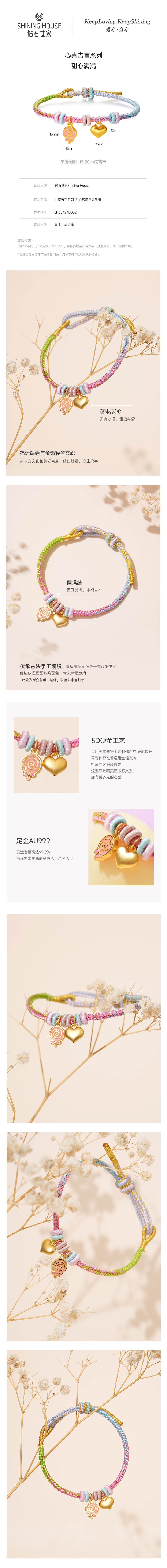 【定价黄金】【限时8折】【现货】钻石世家 心喜吉言系列 足金黄金手串圆满结糖果/爱心元素甜心满满足金手绳