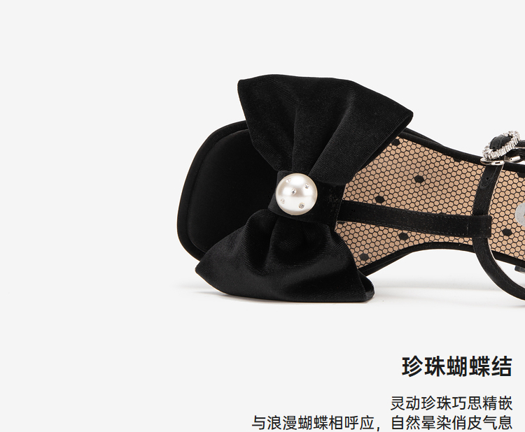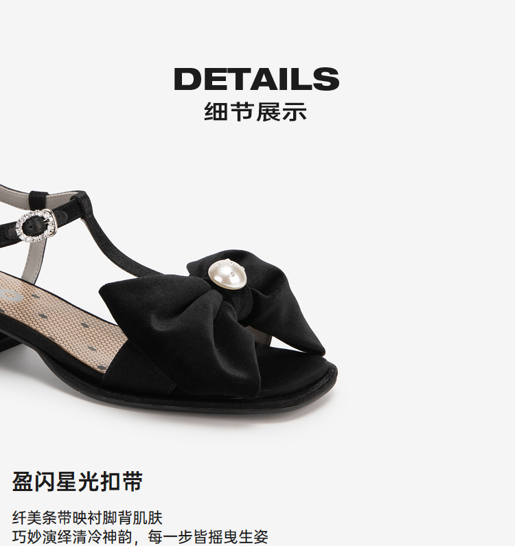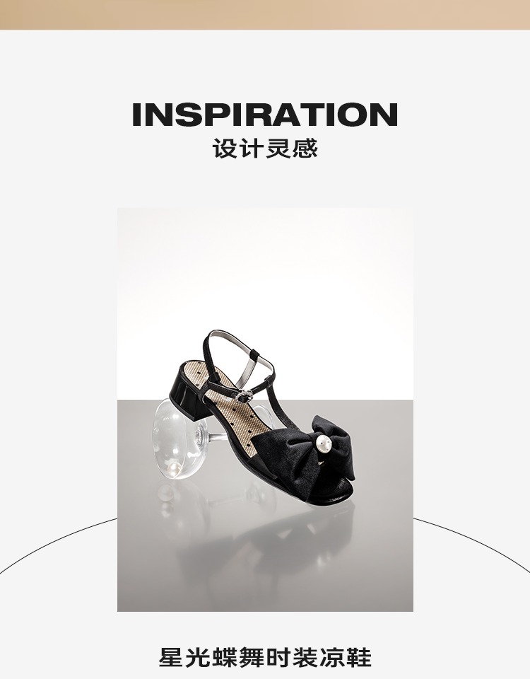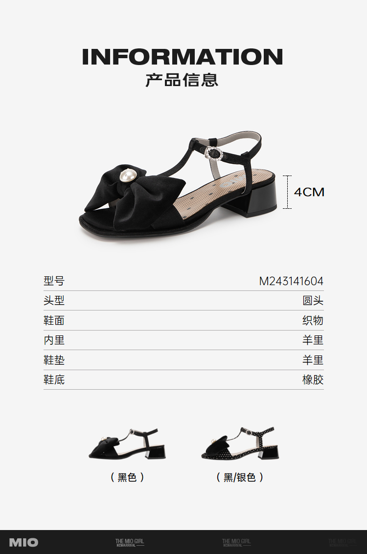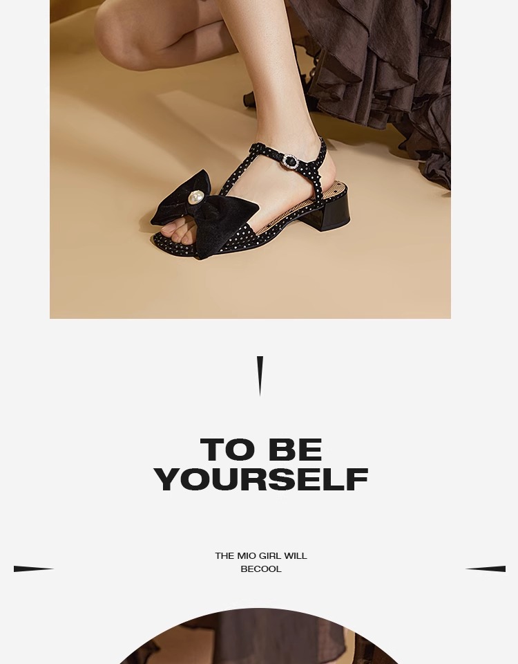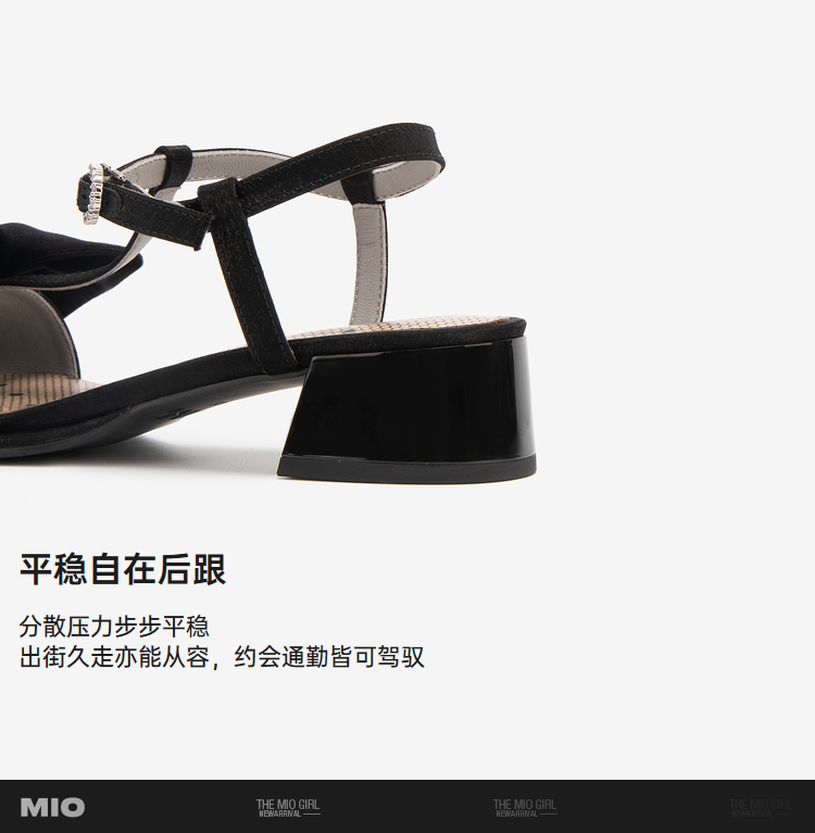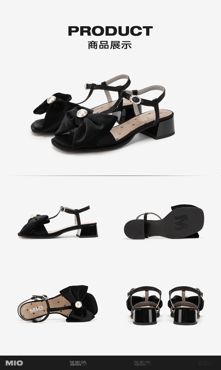 MIO米奥夏季拼色中跟凉鞋珍珠蝴蝶结俏皮通勤时装凉鞋女M243141604