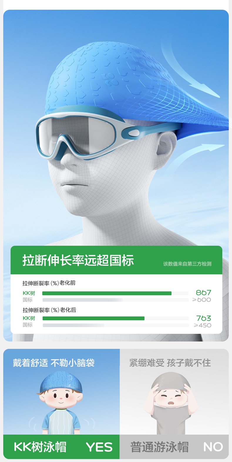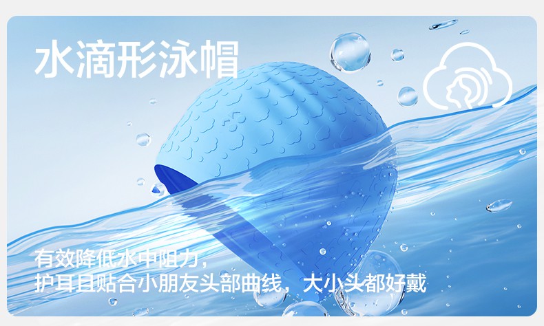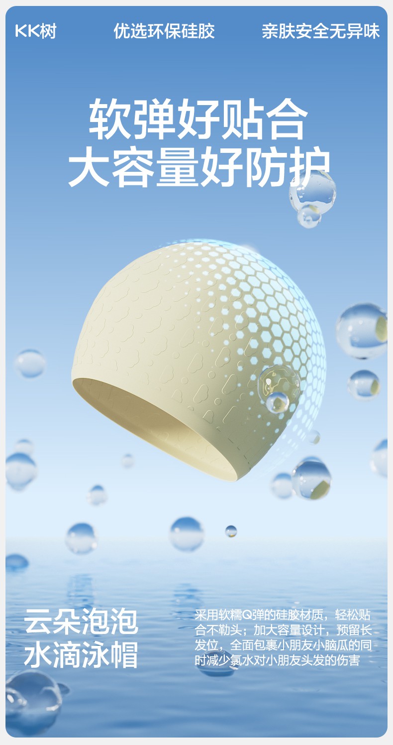 【云优选】KK树水滴儿童泳帽加大硅胶宝宝游泳帽子女童男童专业防水不勒头云朵泡泡水滴泳帽