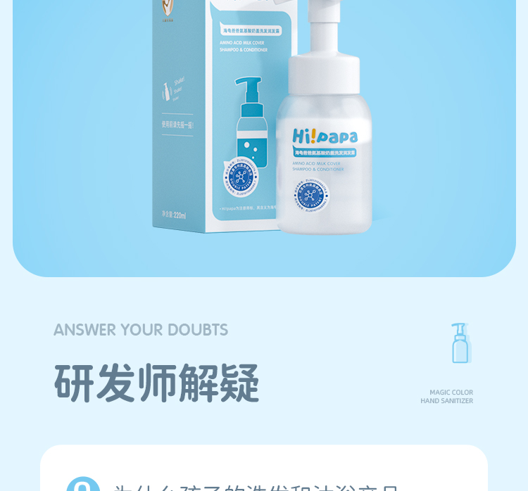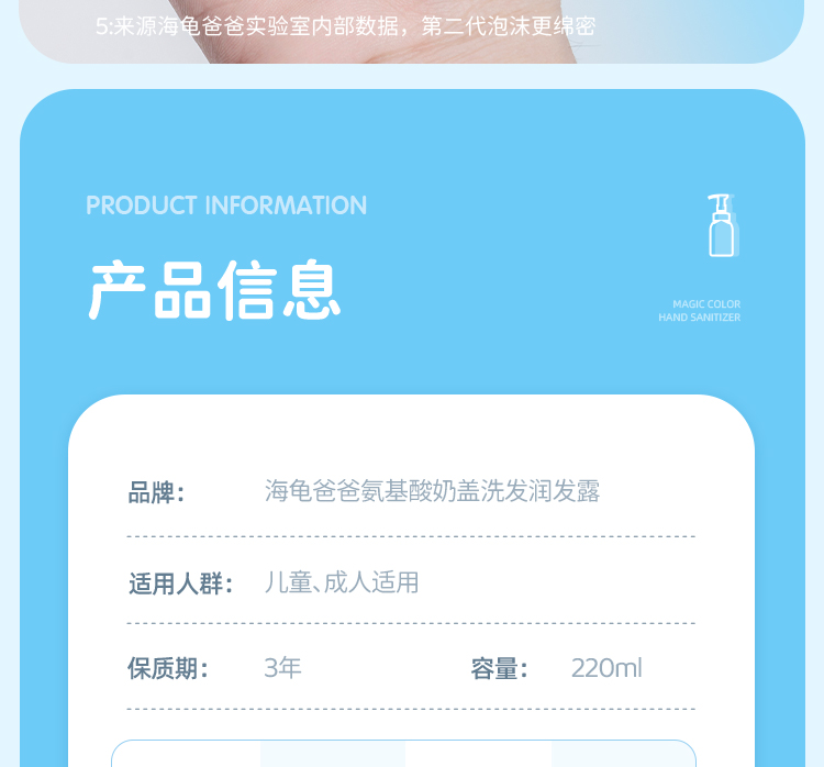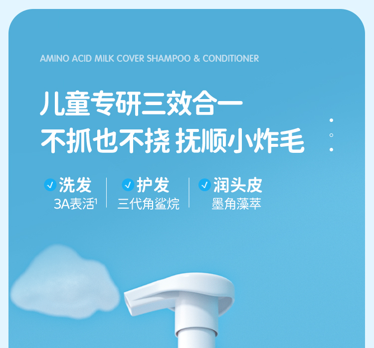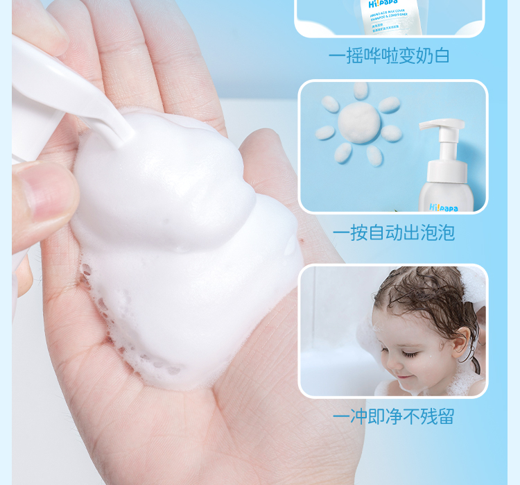 海龟爸爸氨基酸奶盖洗发润发露儿童洗发水儿专用女孩护发素顺滑6岁以上宝宝洗发露