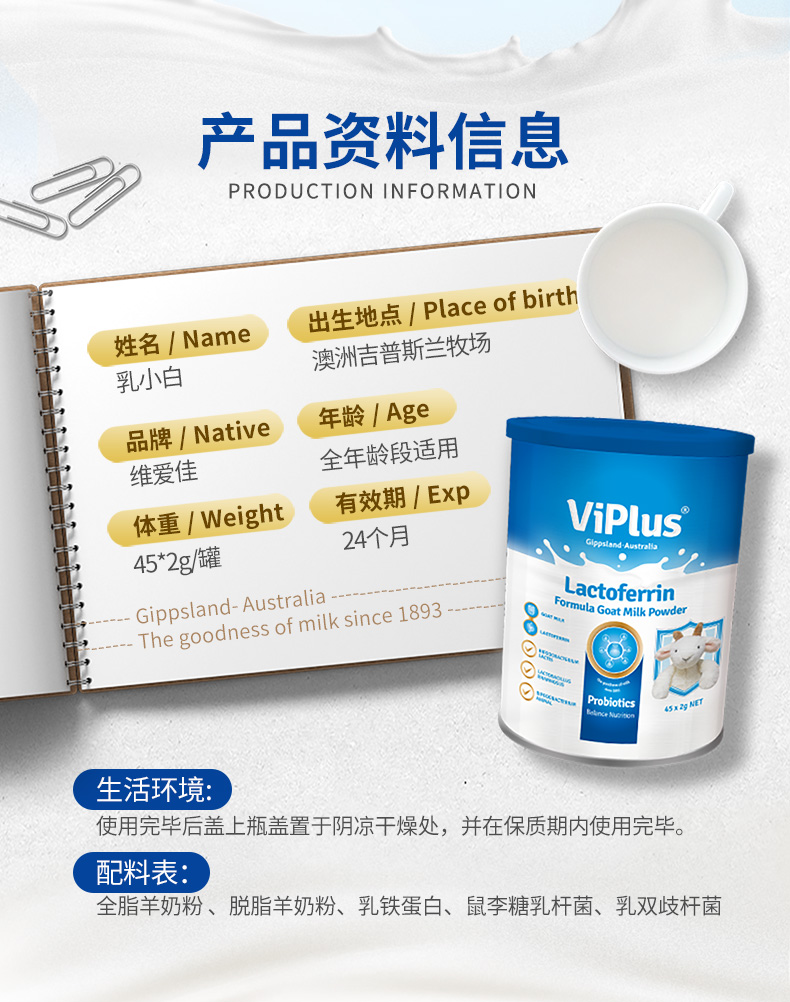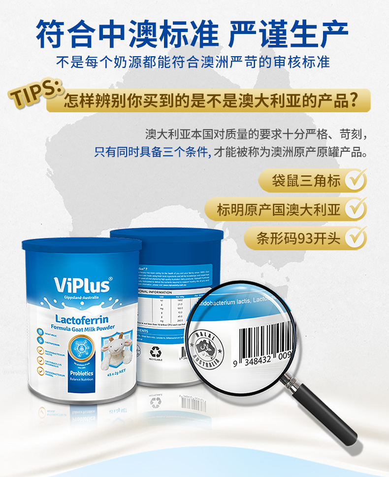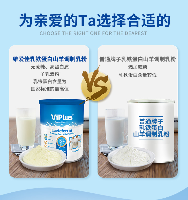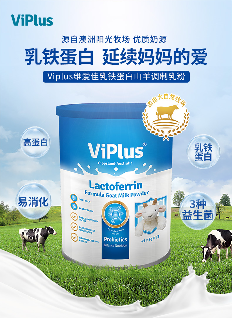 澳洲进 维爱佳viplus乳铁蛋白多种益生菌配方羊奶粉45*2g/罐【维爱佳】