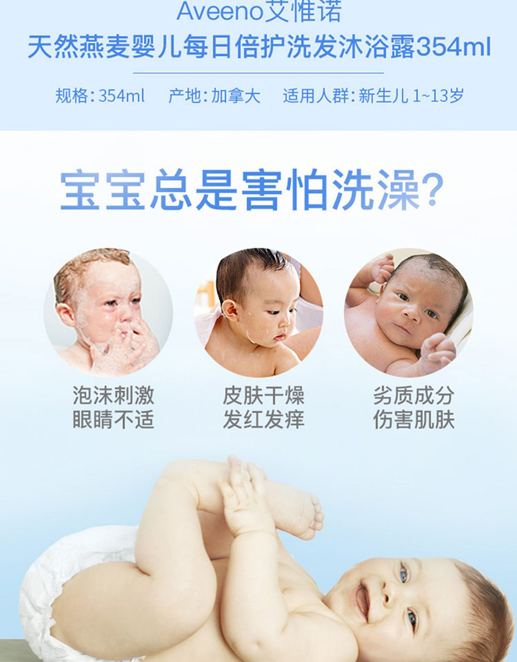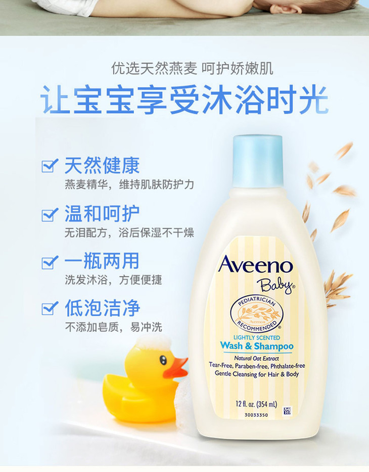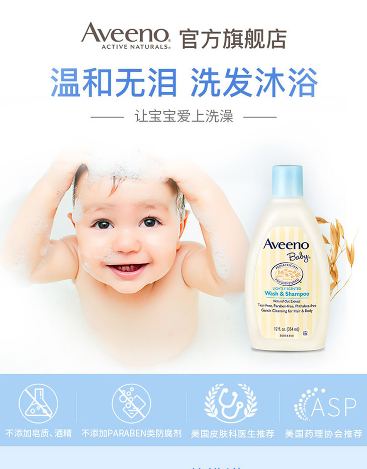 艾惟诺aveeno婴儿每日倍护洗发沐浴露354ml