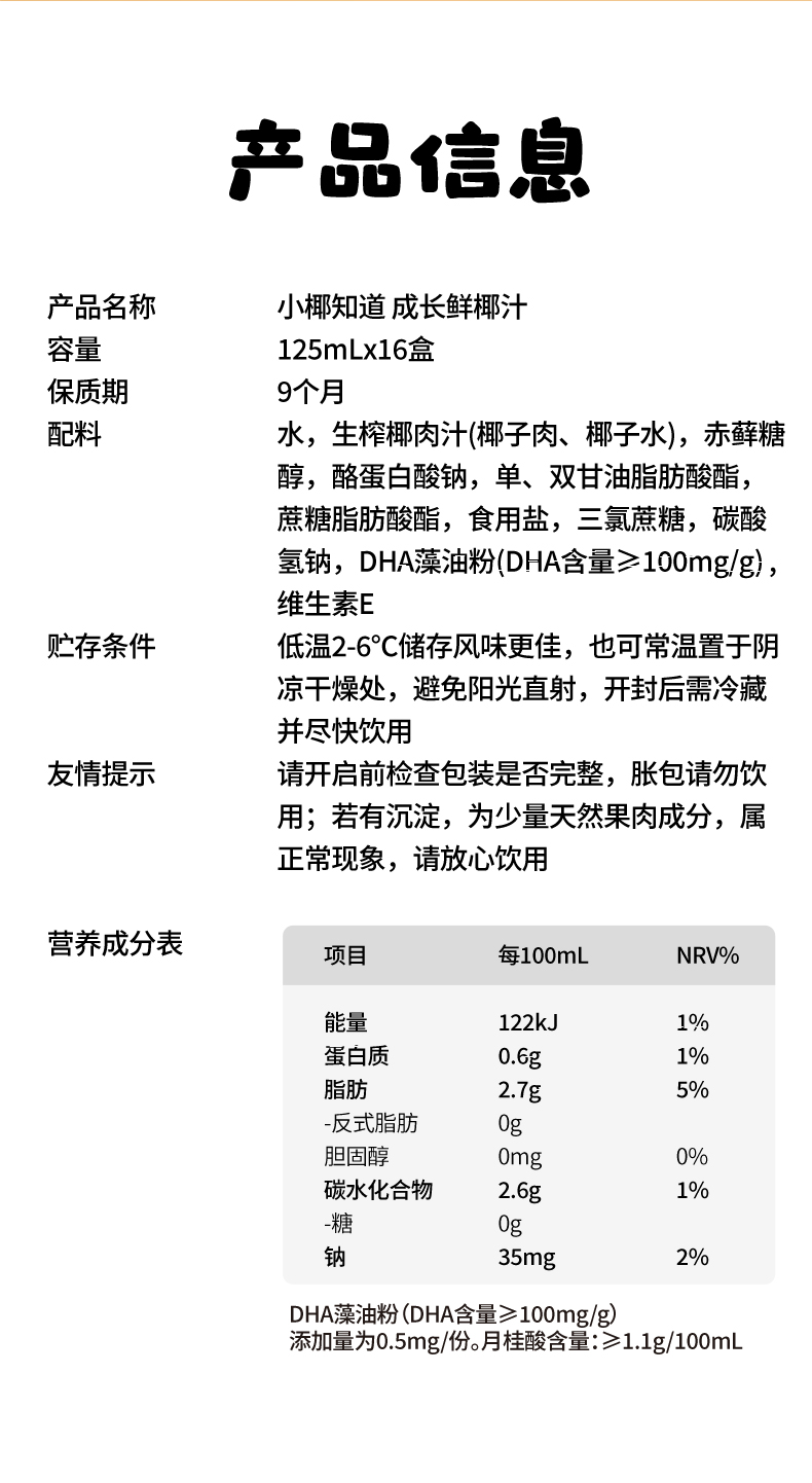 【椰子知道】小椰知道儿童0糖鲜椰汁礼盒装