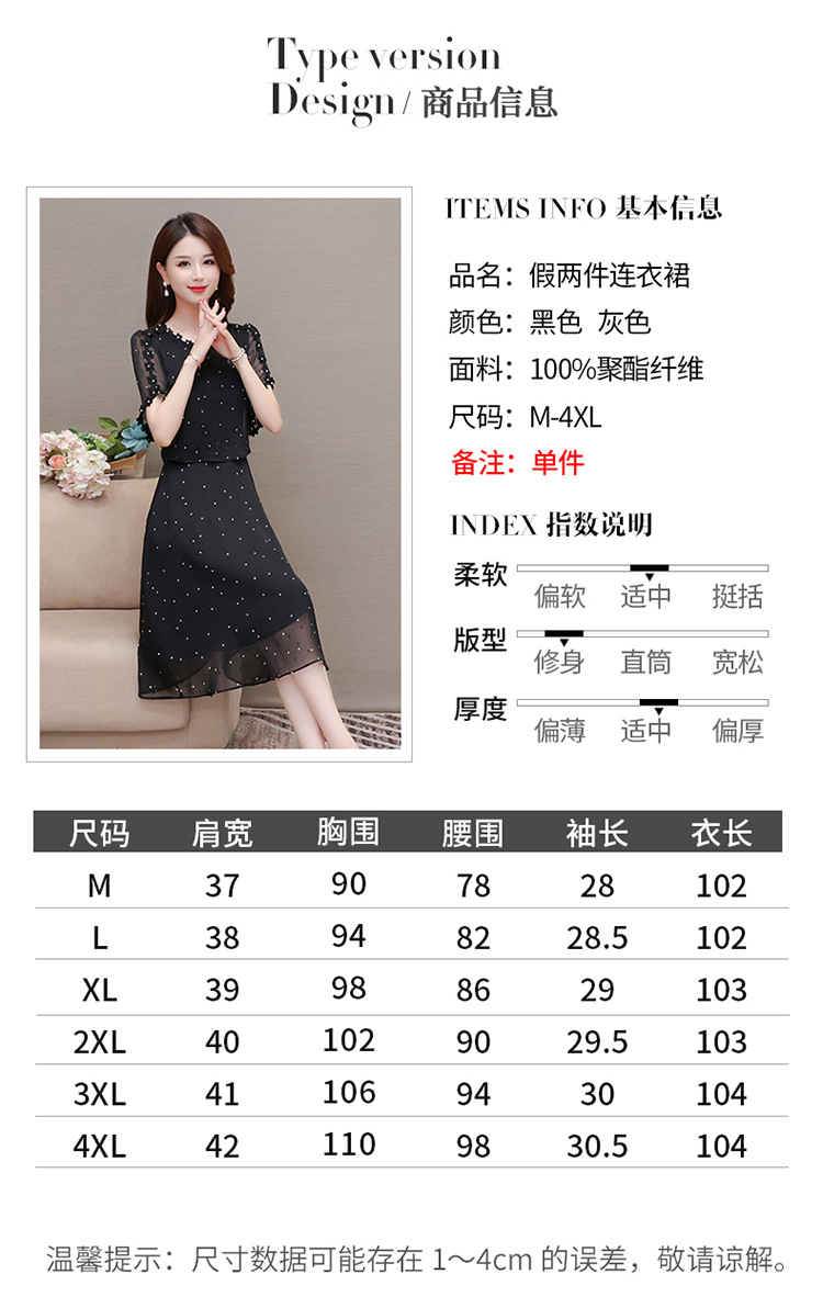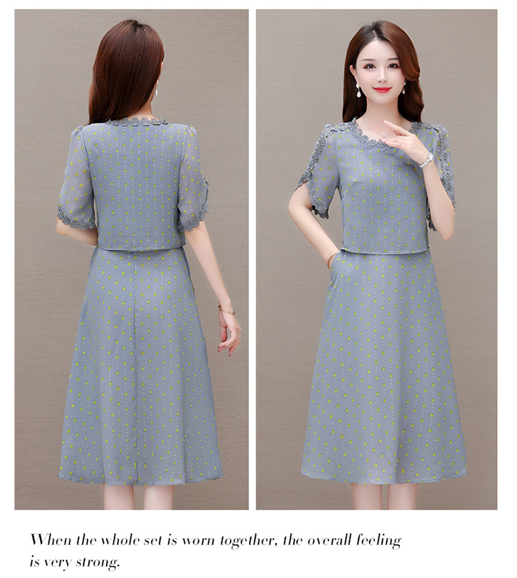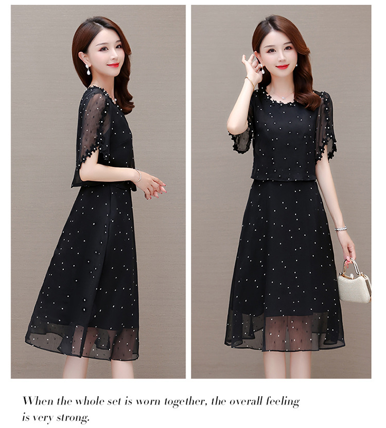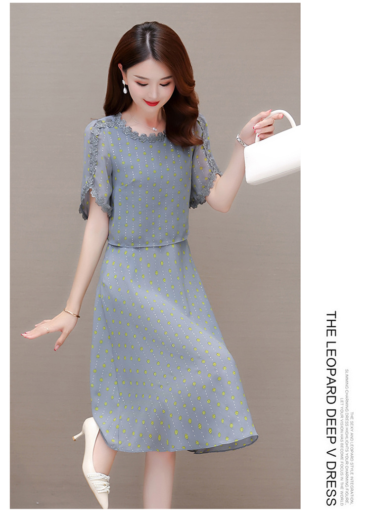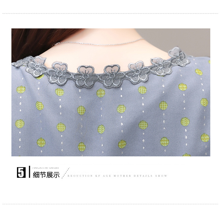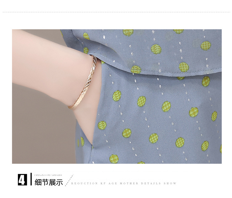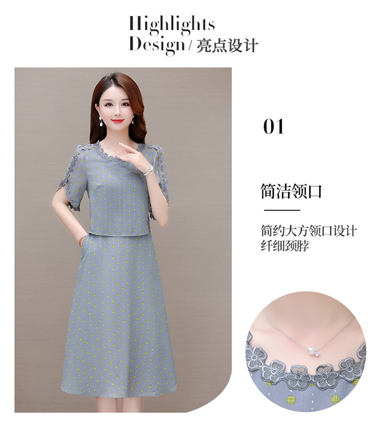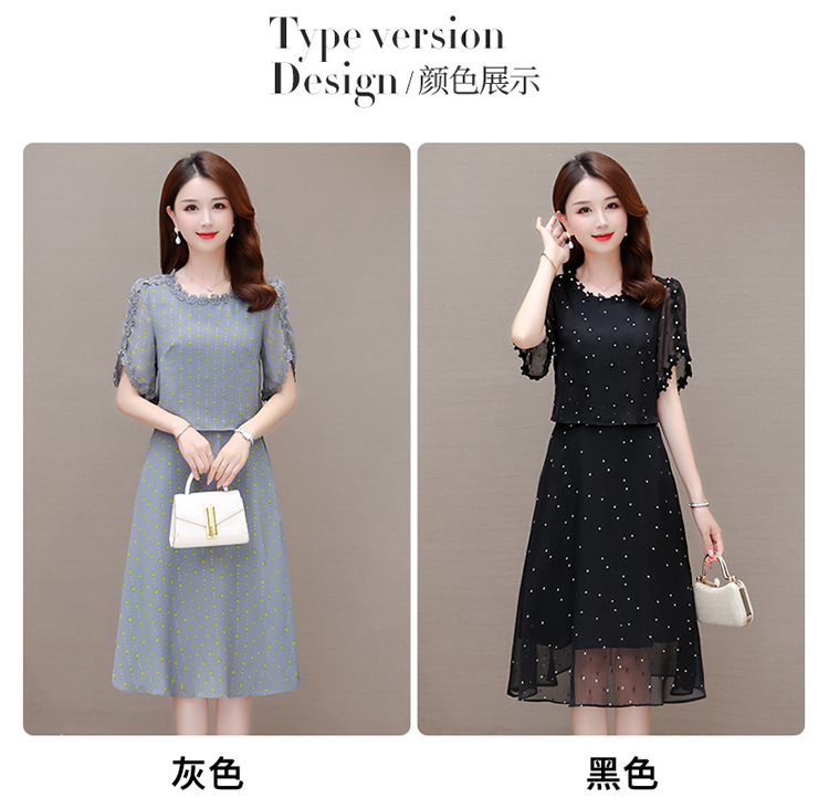 修身时尚,简约中长款雪纺裙夏款圆领短袖气质妈妈装连衣裙QYM-XQD-58B8982-2-L