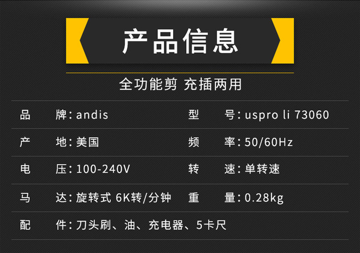 Andis安迪斯 电推 73060 刀头/锂电池/充电/脱线