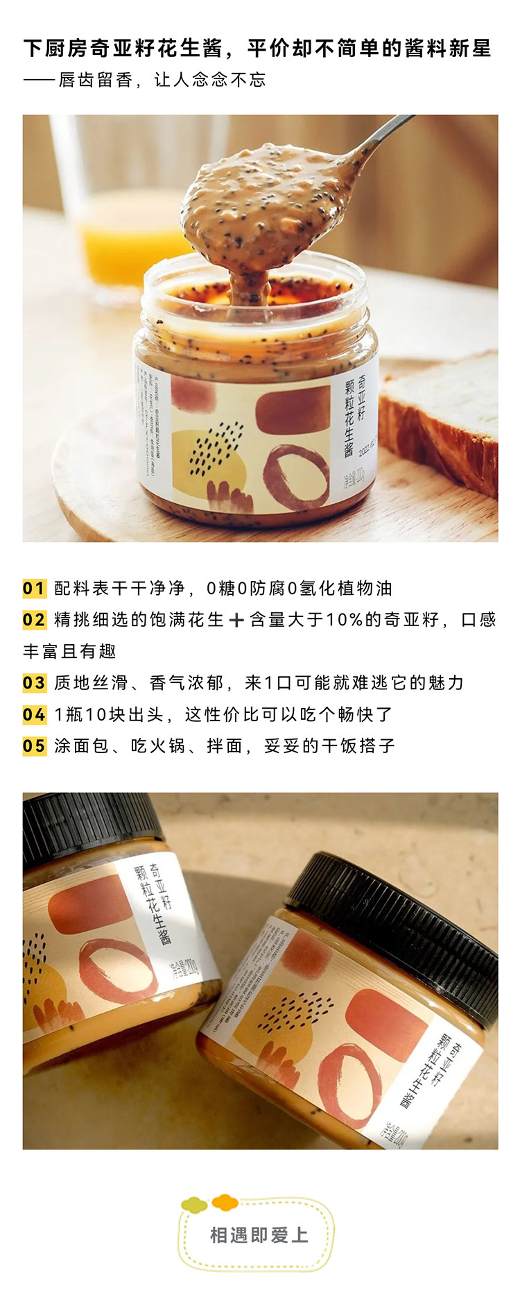 【代发】下厨房 奇亚籽颗粒花生酱 200g/瓶