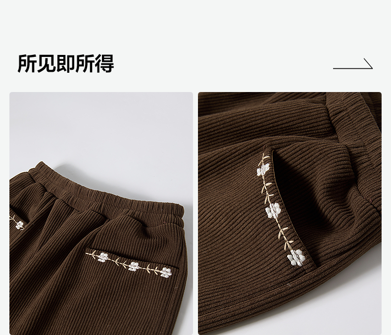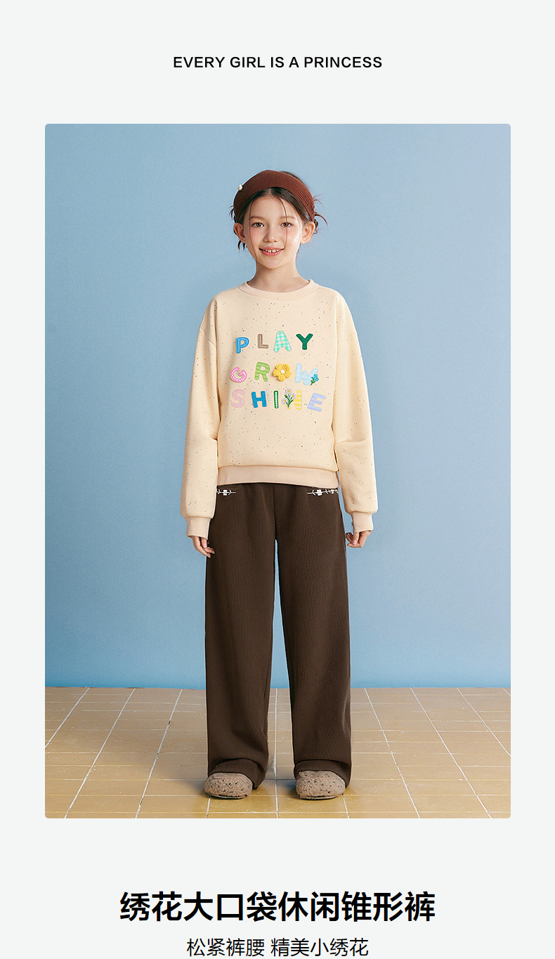 笛莎Deesha 童装女童裤子2025冬新款女童绣花大口袋休闲锥形裤