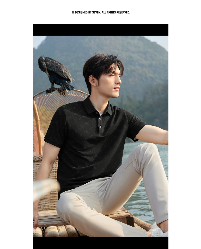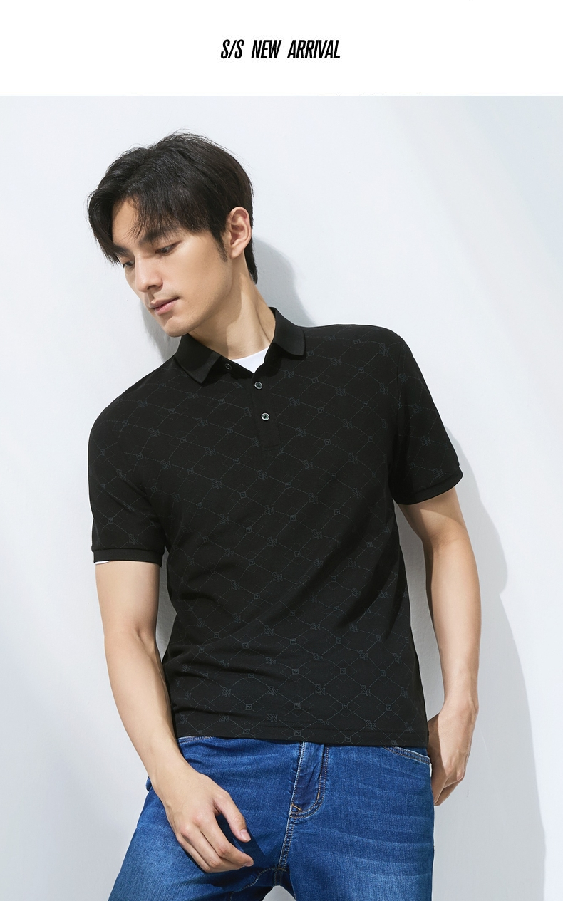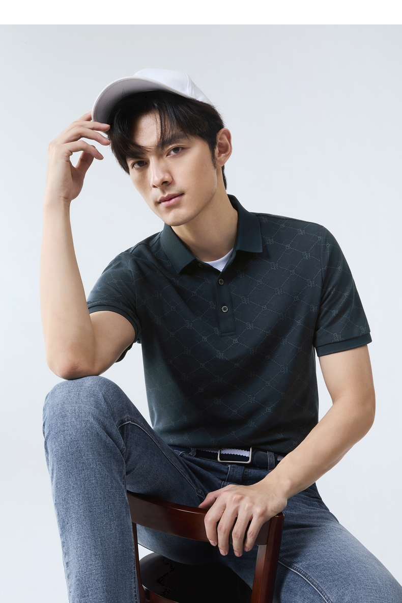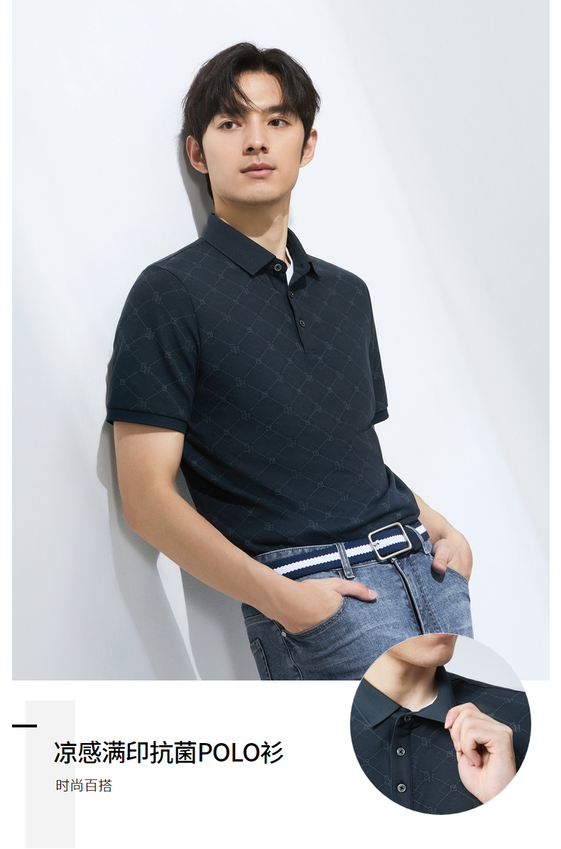 【满身印花/凉感】柒牌抗菌短袖POLO衫男士夏季新款字母满印上衣128T71470