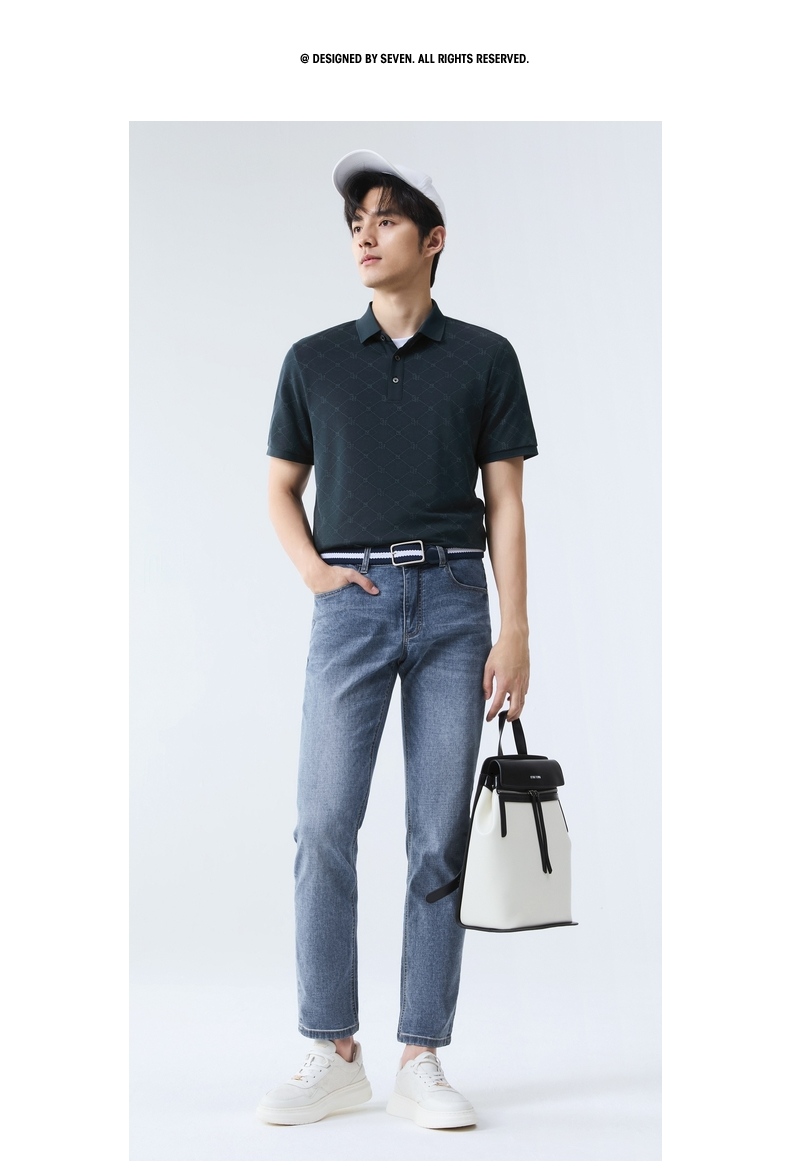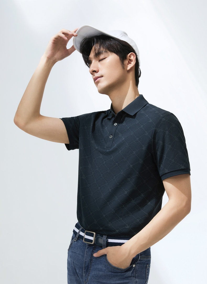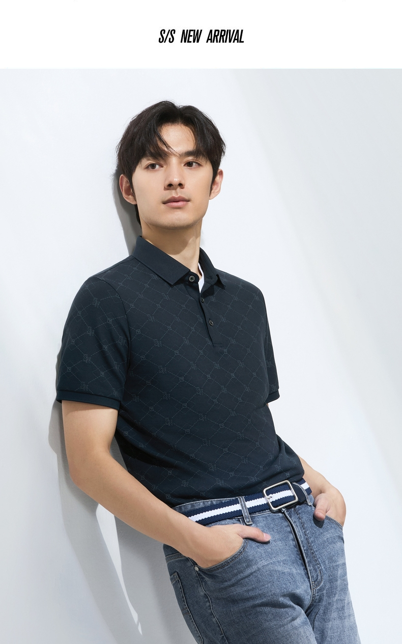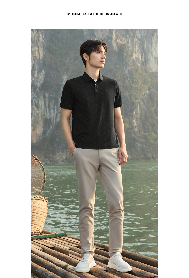 【满身印花/凉感】柒牌抗菌短袖POLO衫男士夏季新款字母满印上衣128T71470