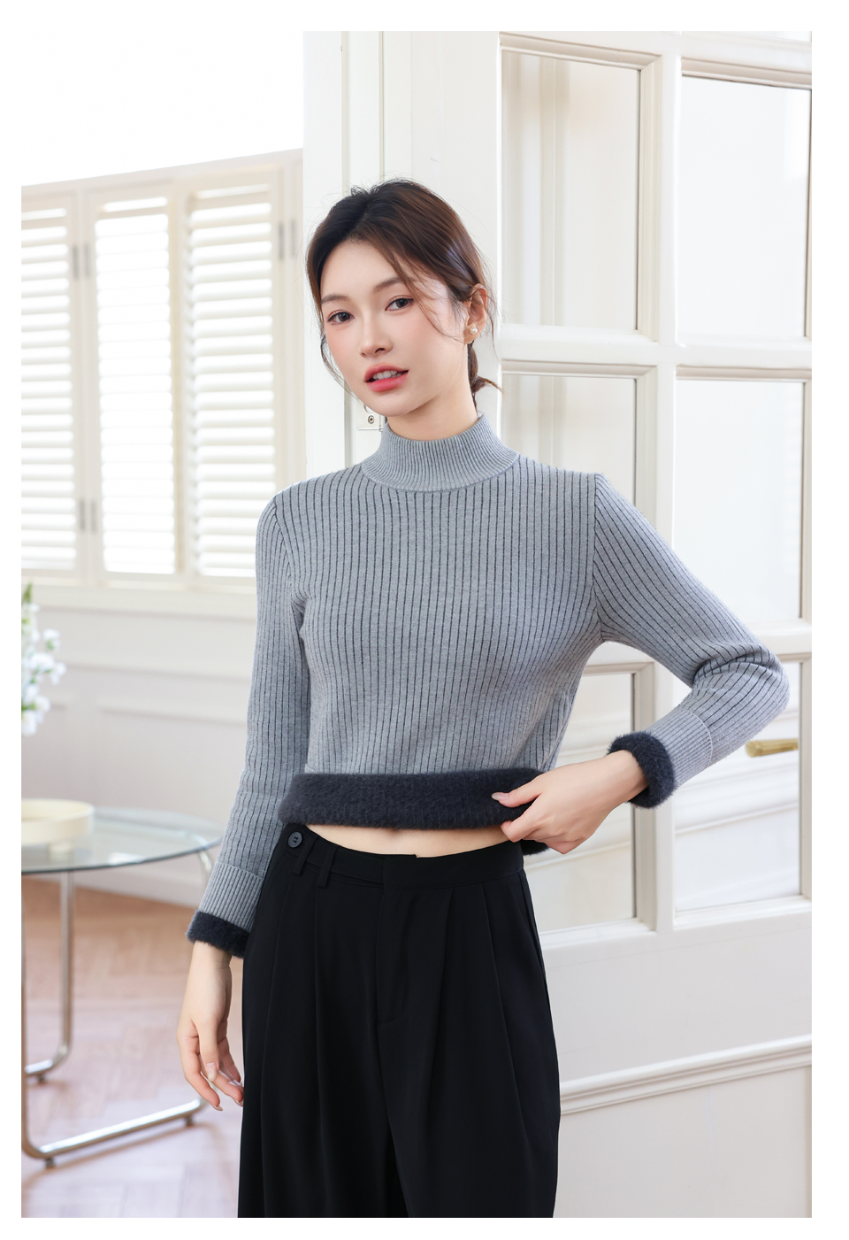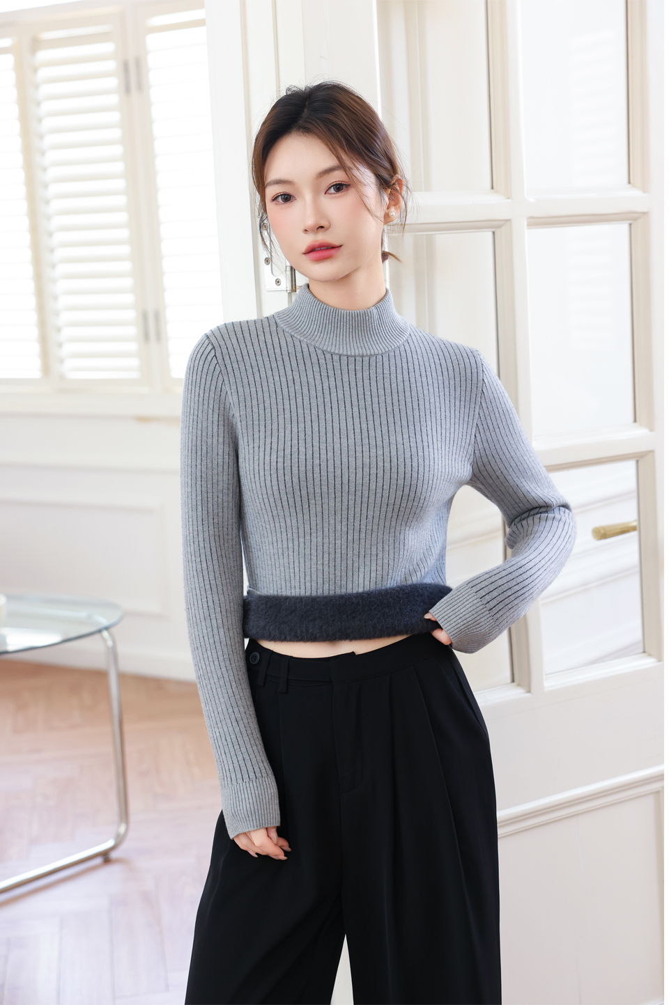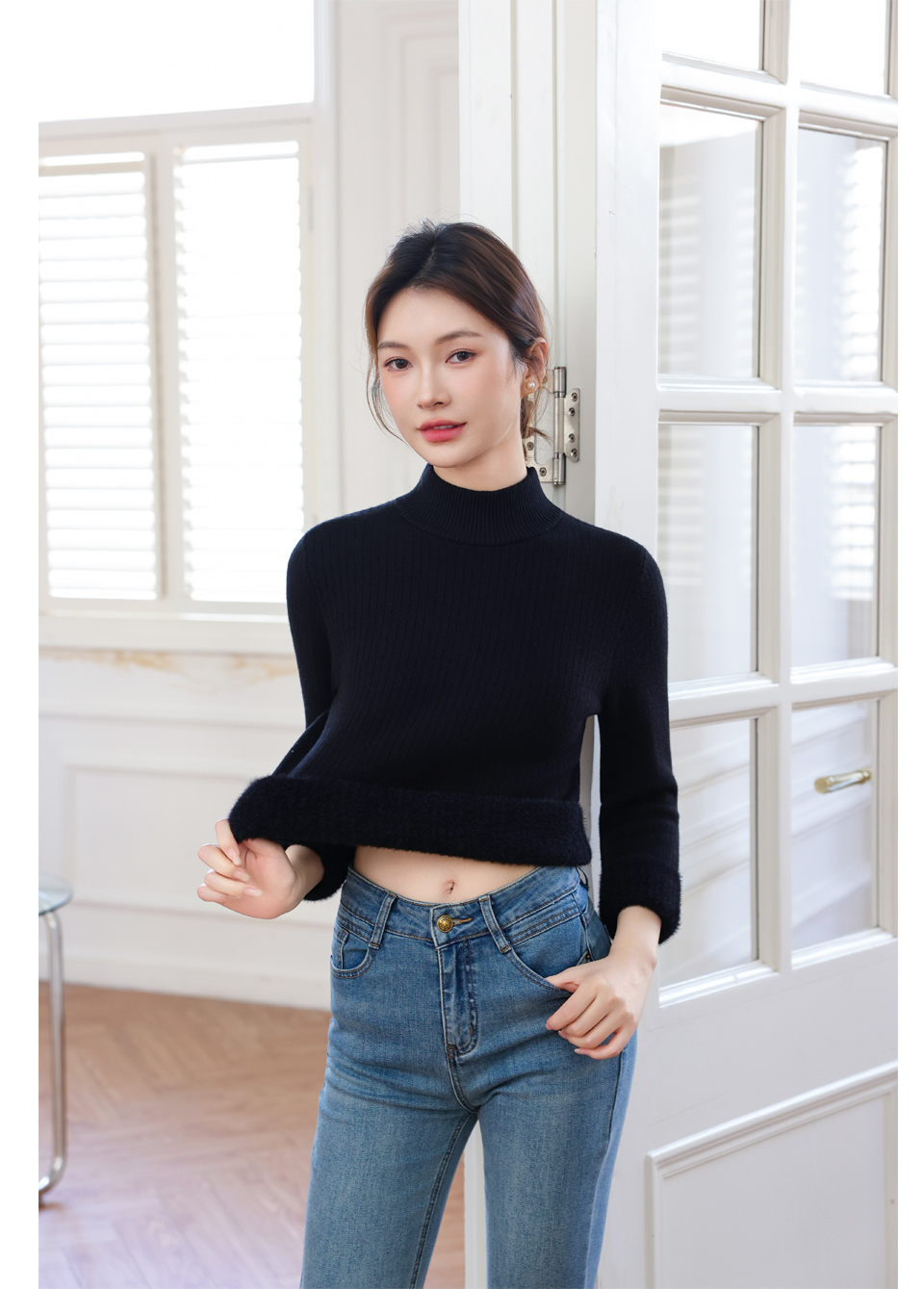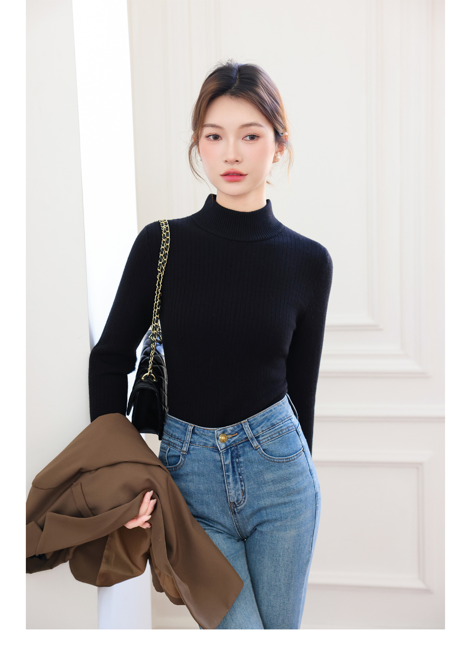青乔慕染新款韩系半高领加绒打底衫JYF6007