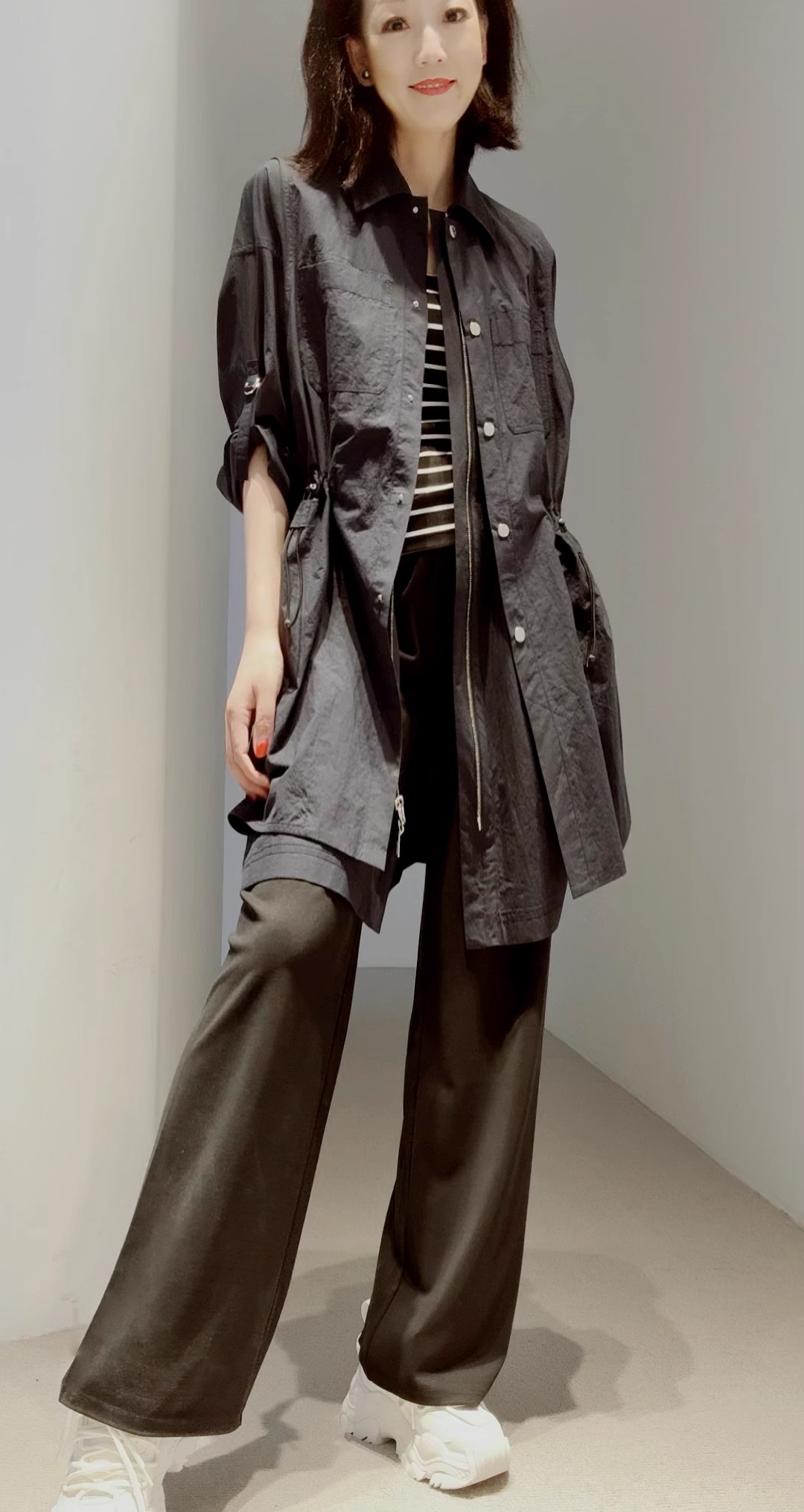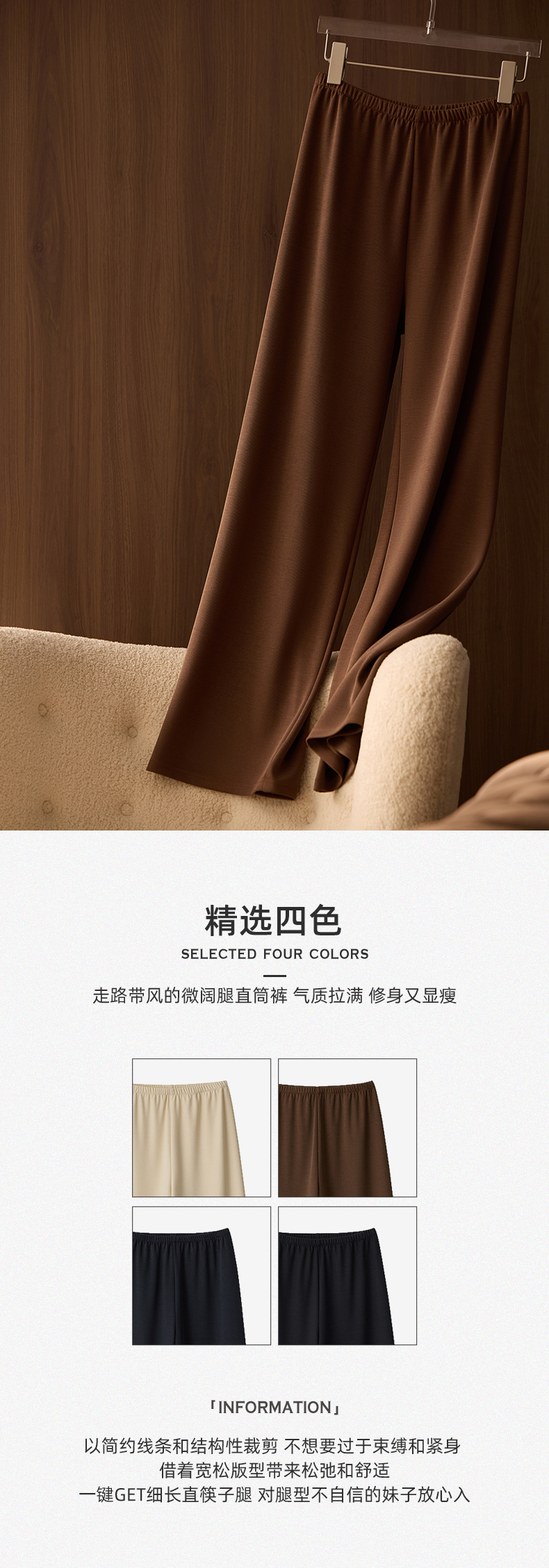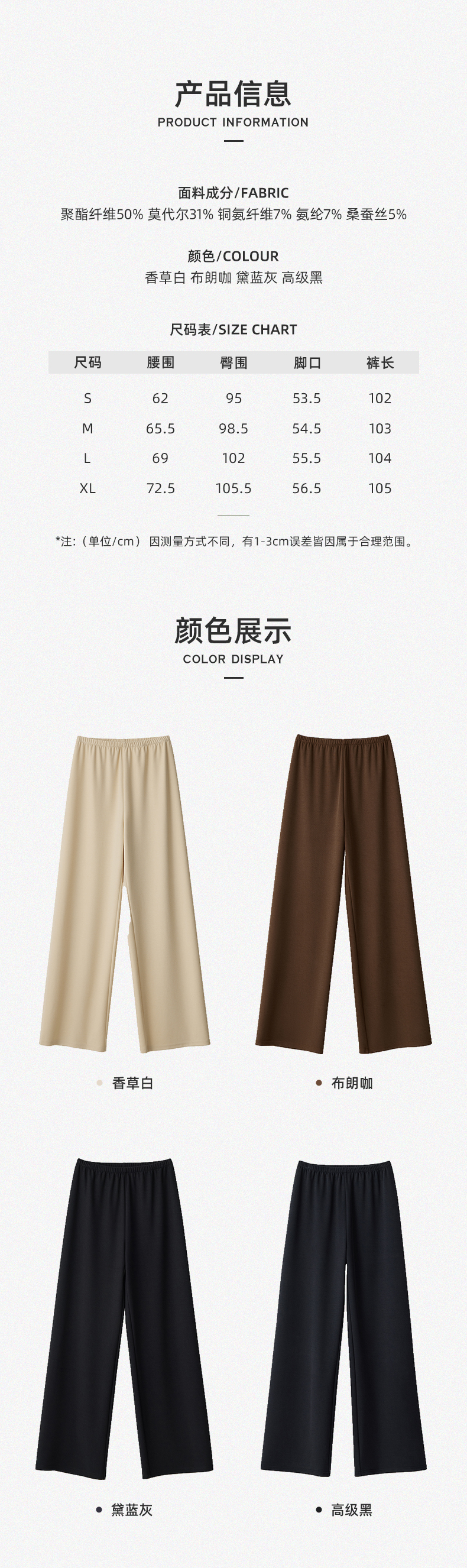 高定款!一片式剪裁真丝垂顺显瘦百搭空气裤 日本宾霸铜氨丝 微阔腿直筒裤,修身又显瘦,松紧高弹平整腰头,上身不鼓包,细竖条纹,随性垂顺,藏肉显瘦不松垮