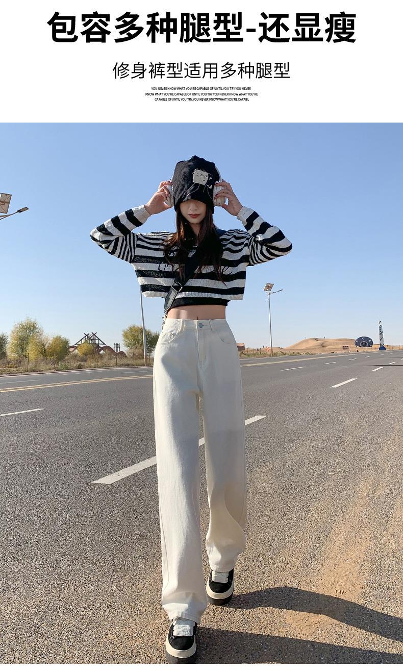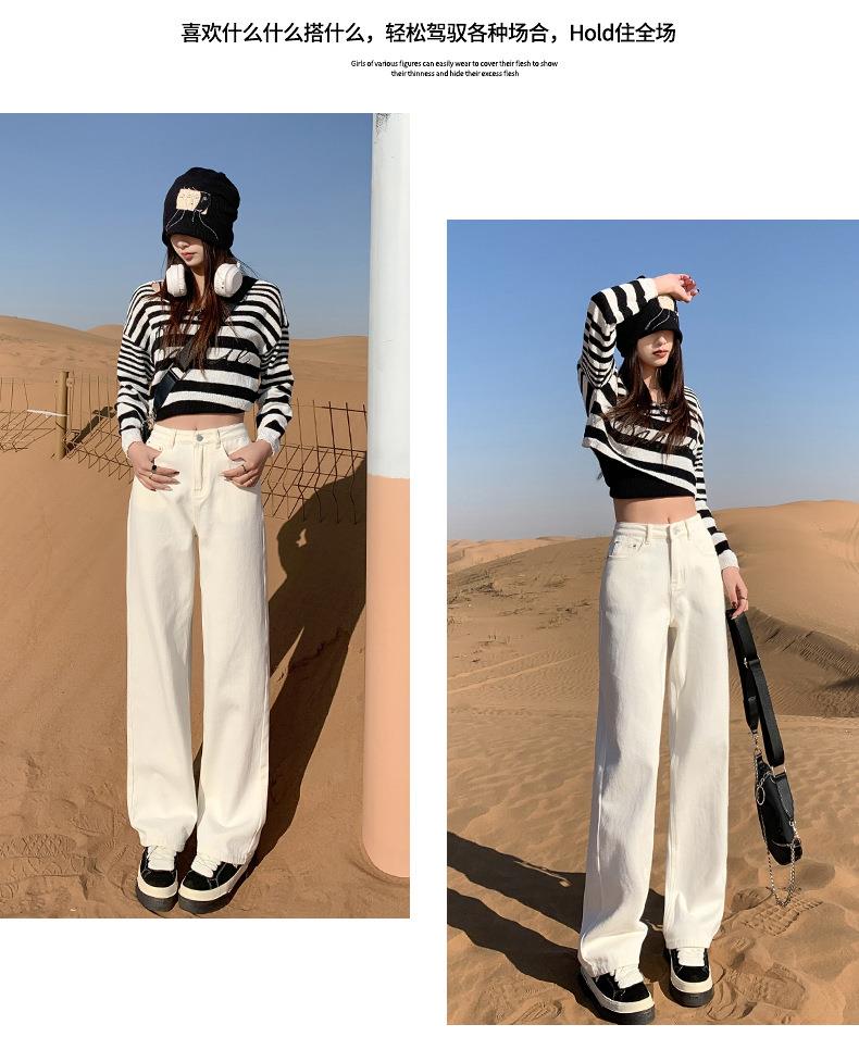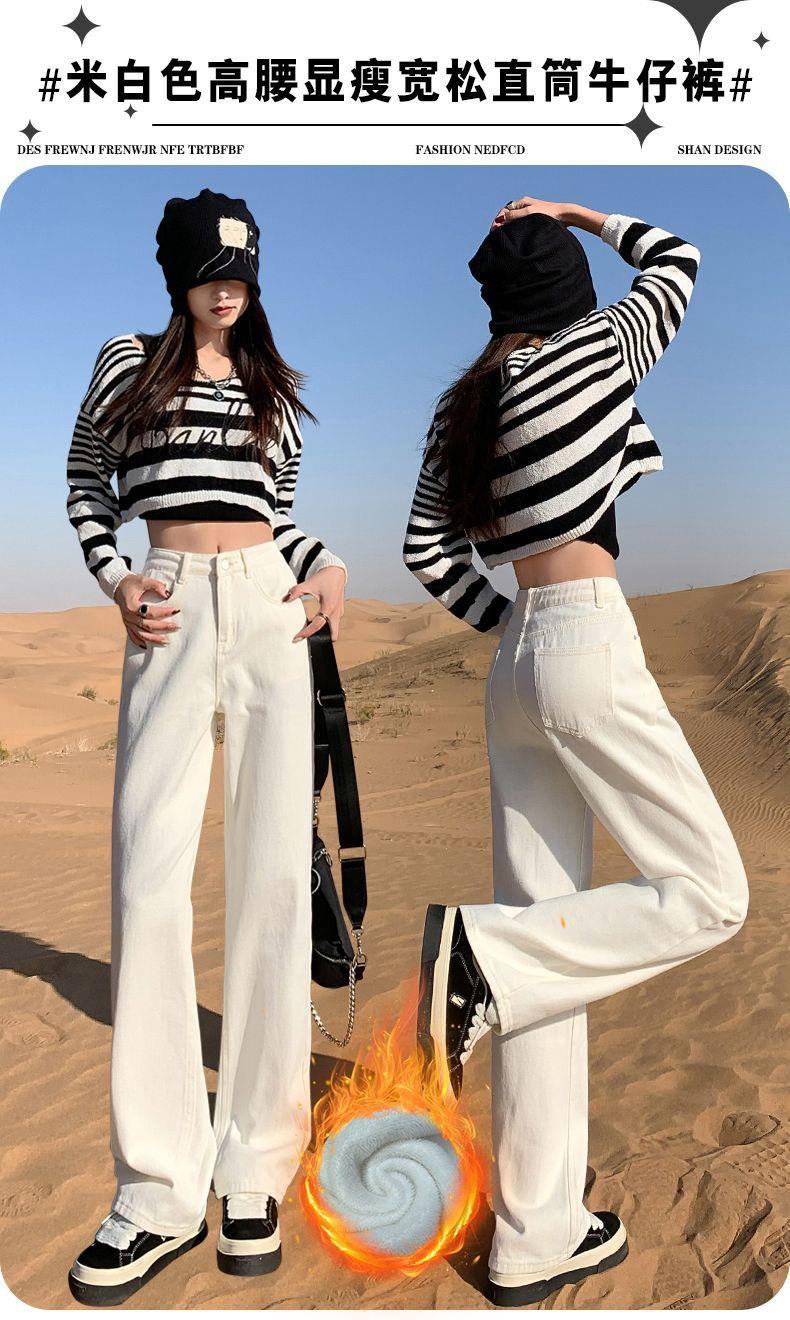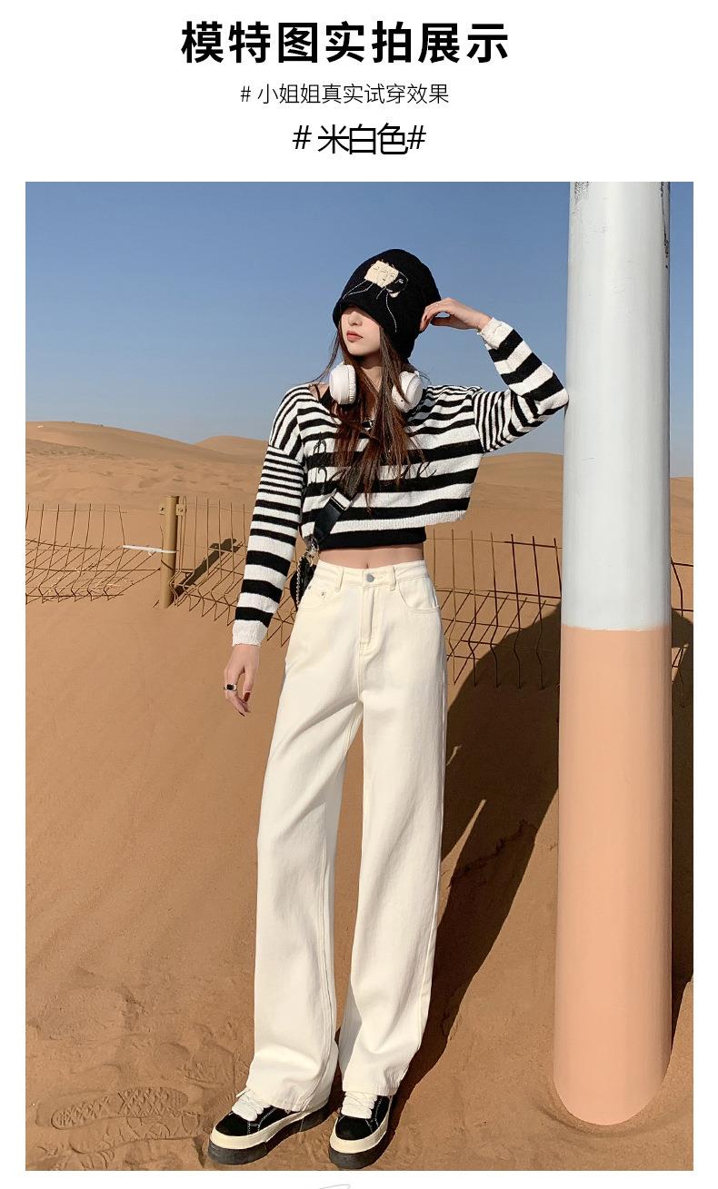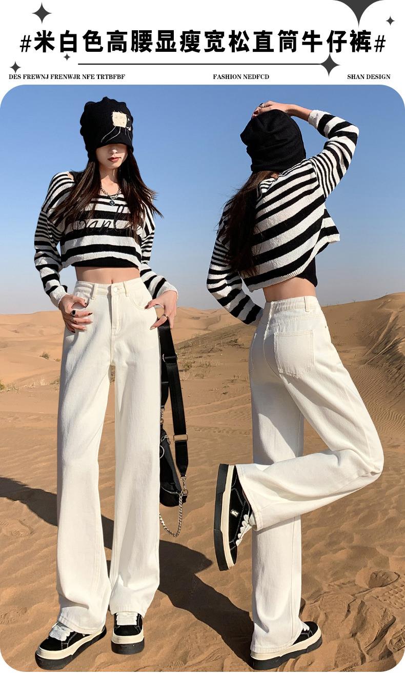 【春季穿搭】米白色直筒牛仔裤女2026春季新款高腰高级感宽松窄版阔腿裤子