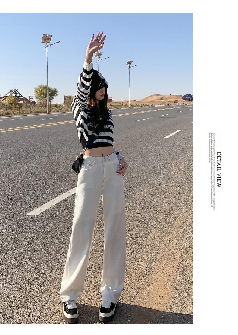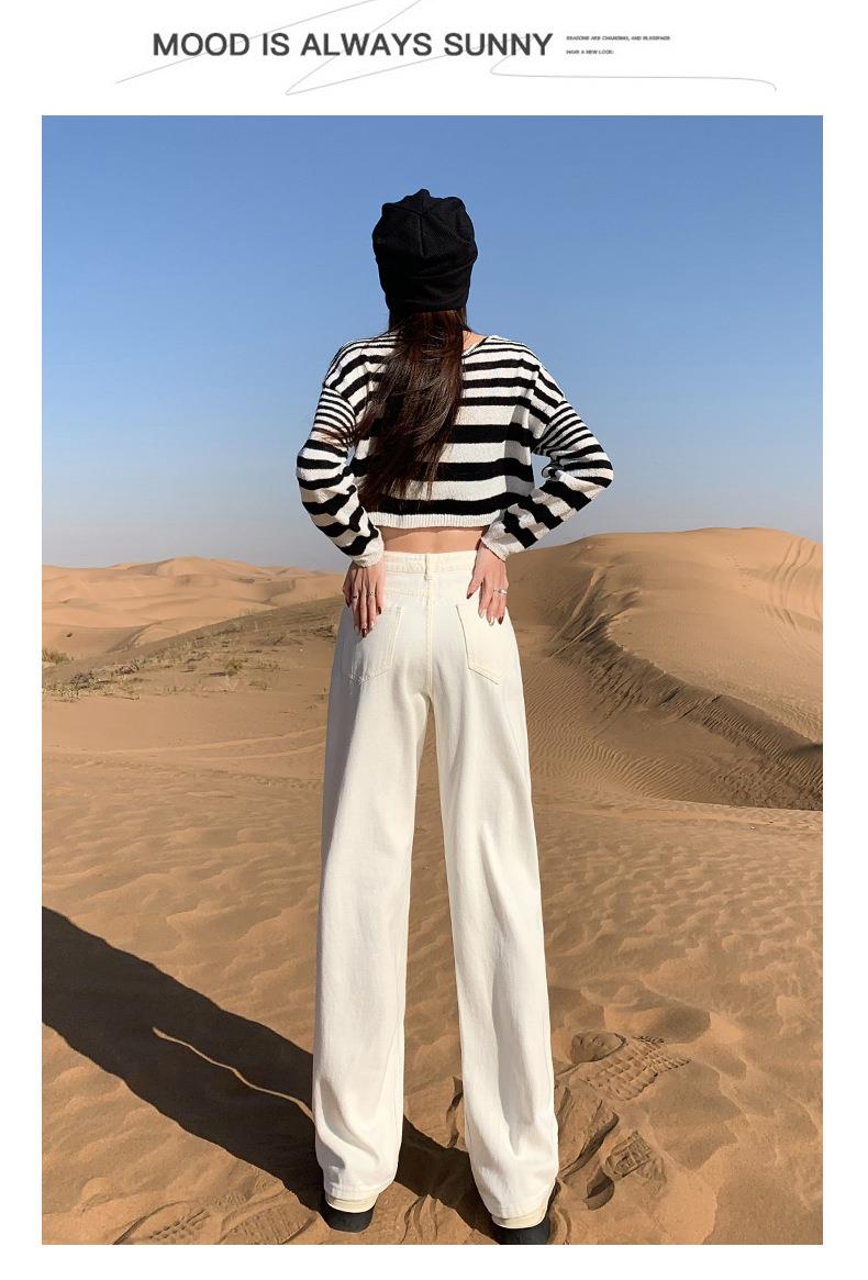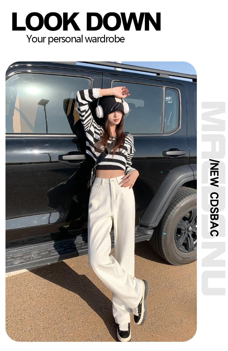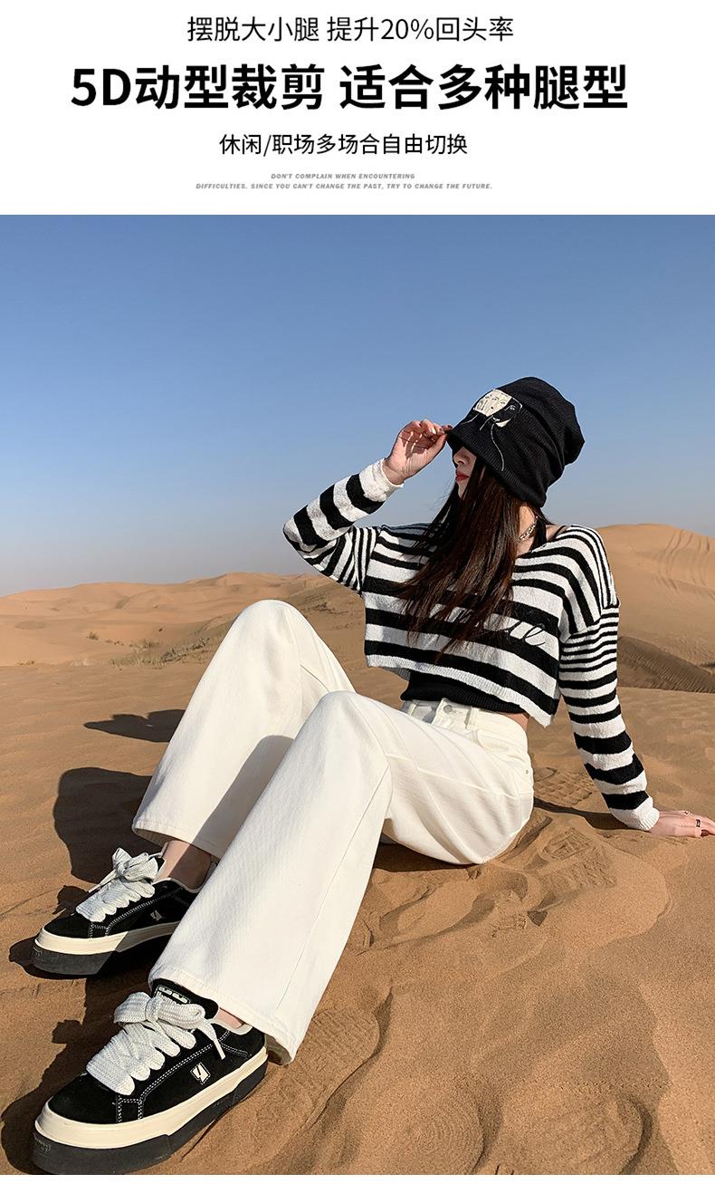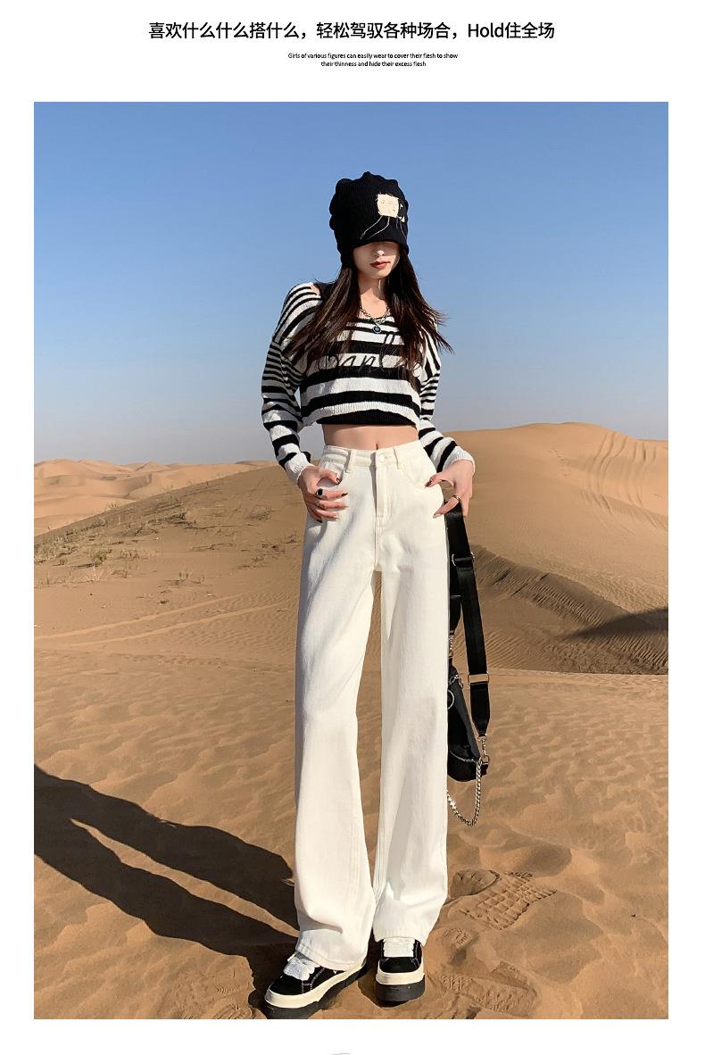 【春季穿搭】米白色直筒牛仔裤女2026春季新款高腰高级感宽松窄版阔腿裤子