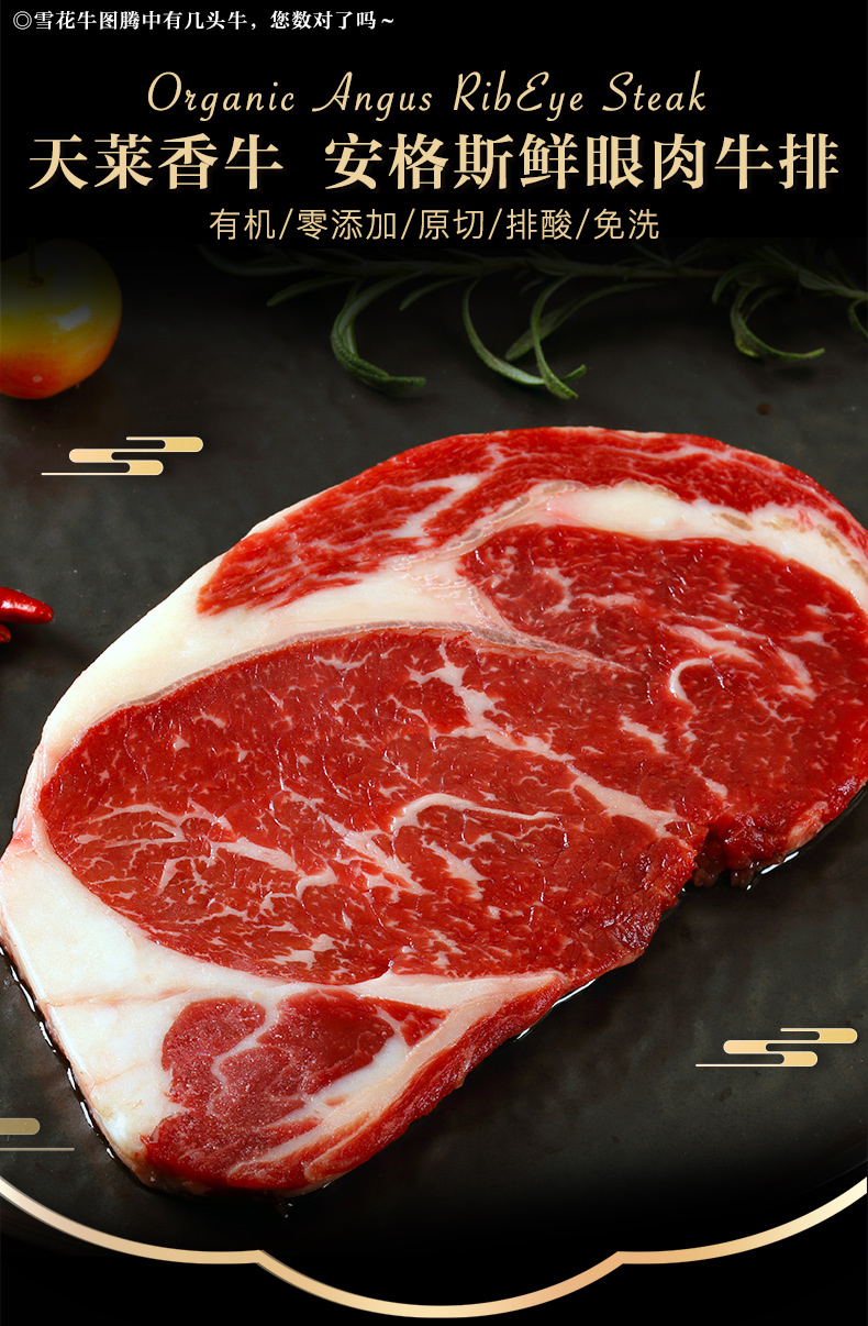【冷鲜预售】有机天莱香牛 安格斯 眼肉 牛排 原切谷饲 国产200g/盒*5盒