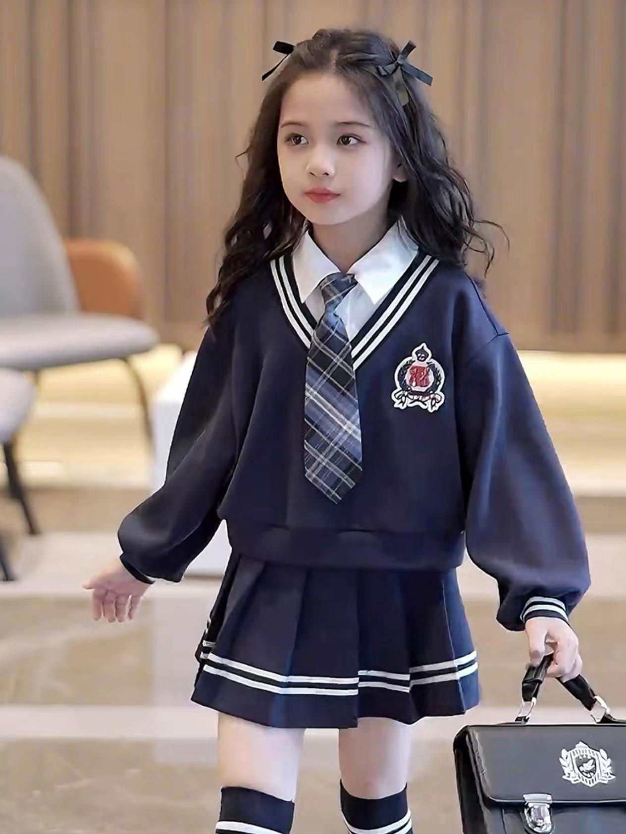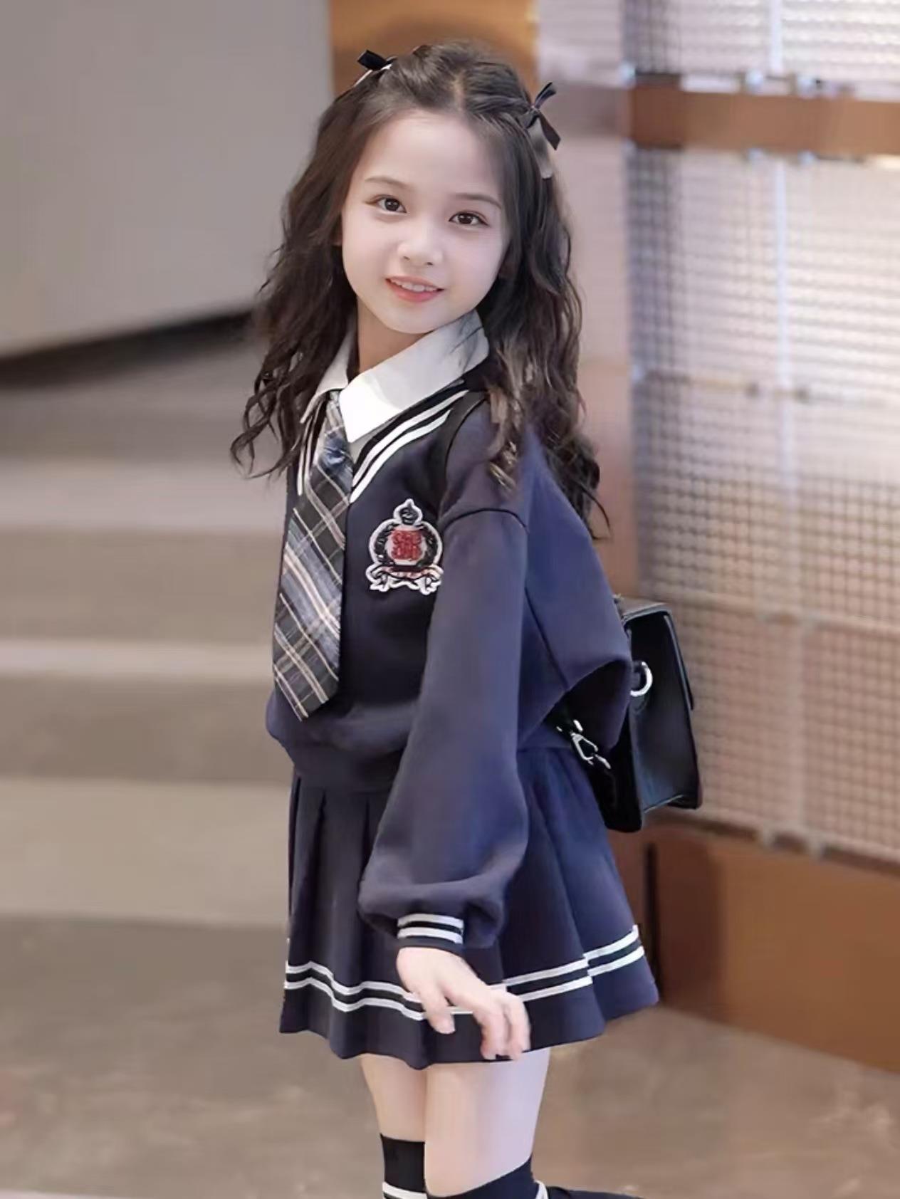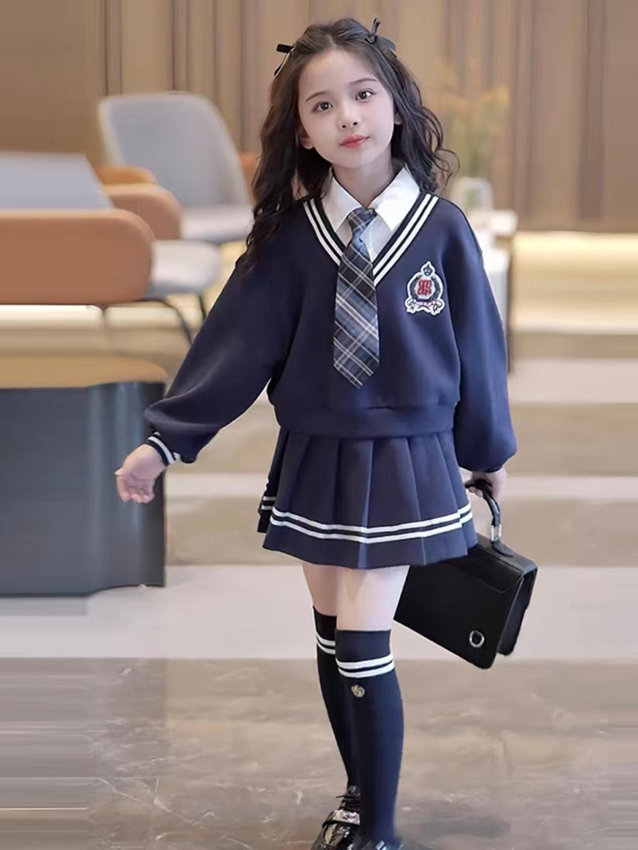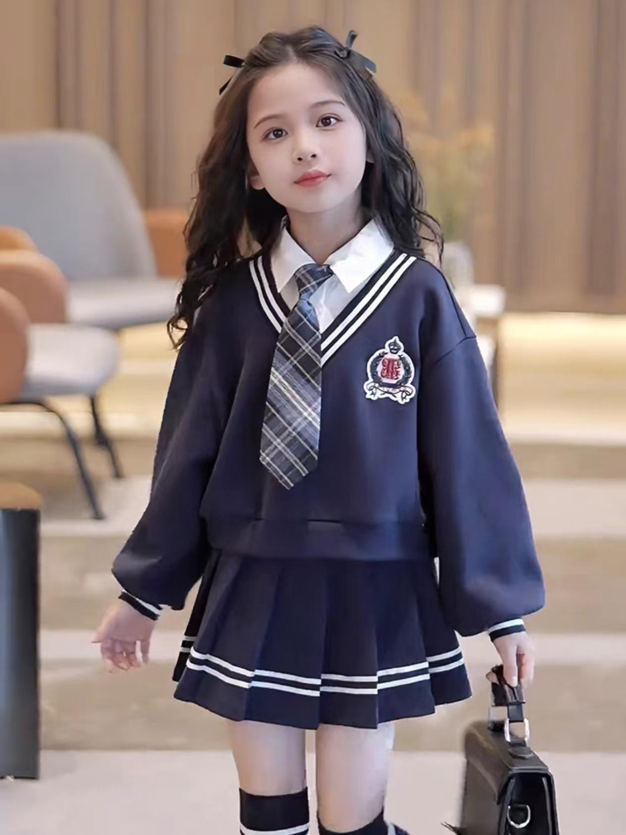 女童校园风套装秋季洋气儿童学院风假两件衬衫卫衣秋装裙子两件套