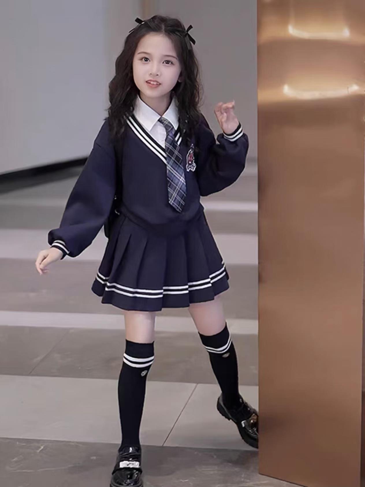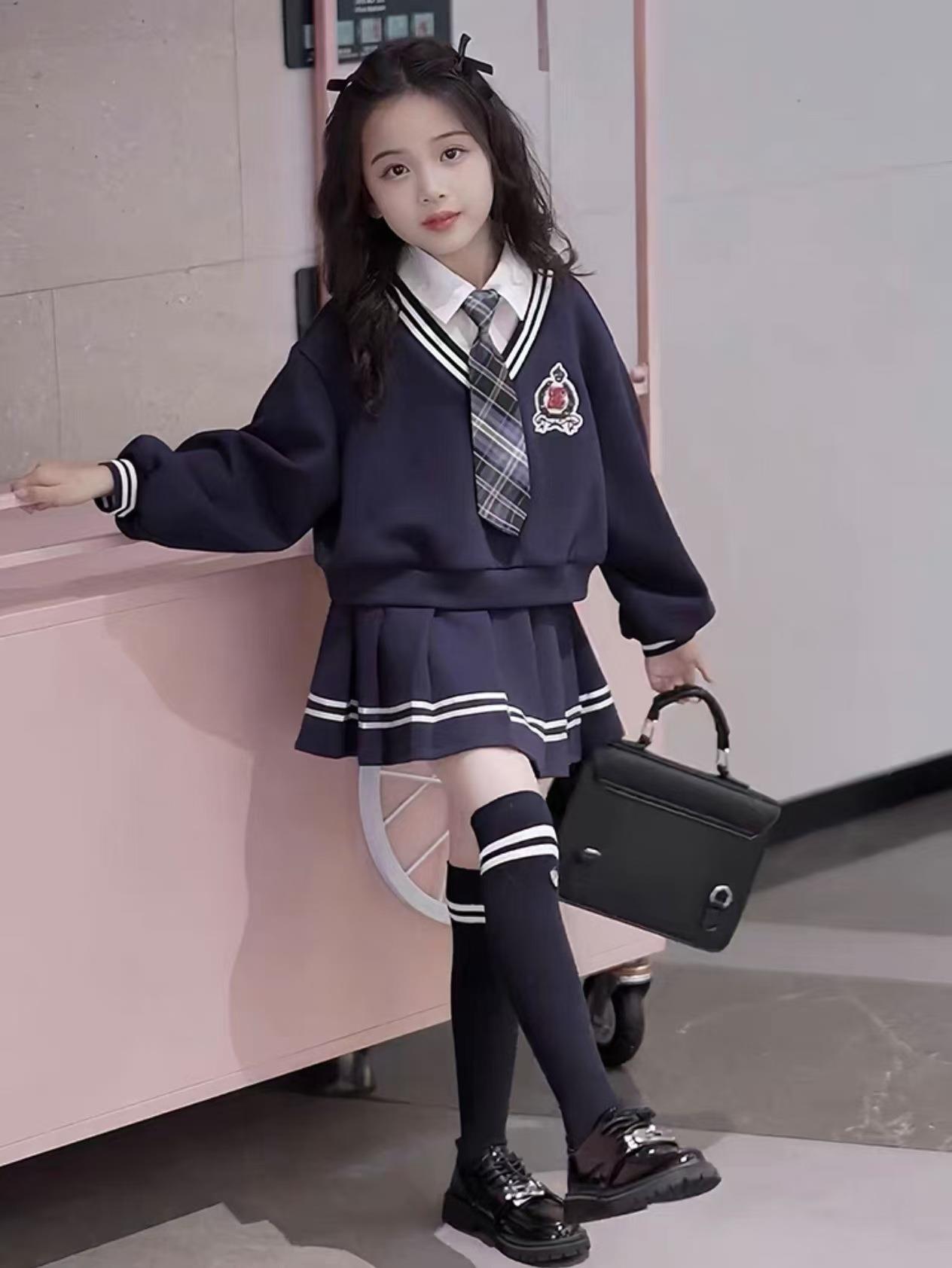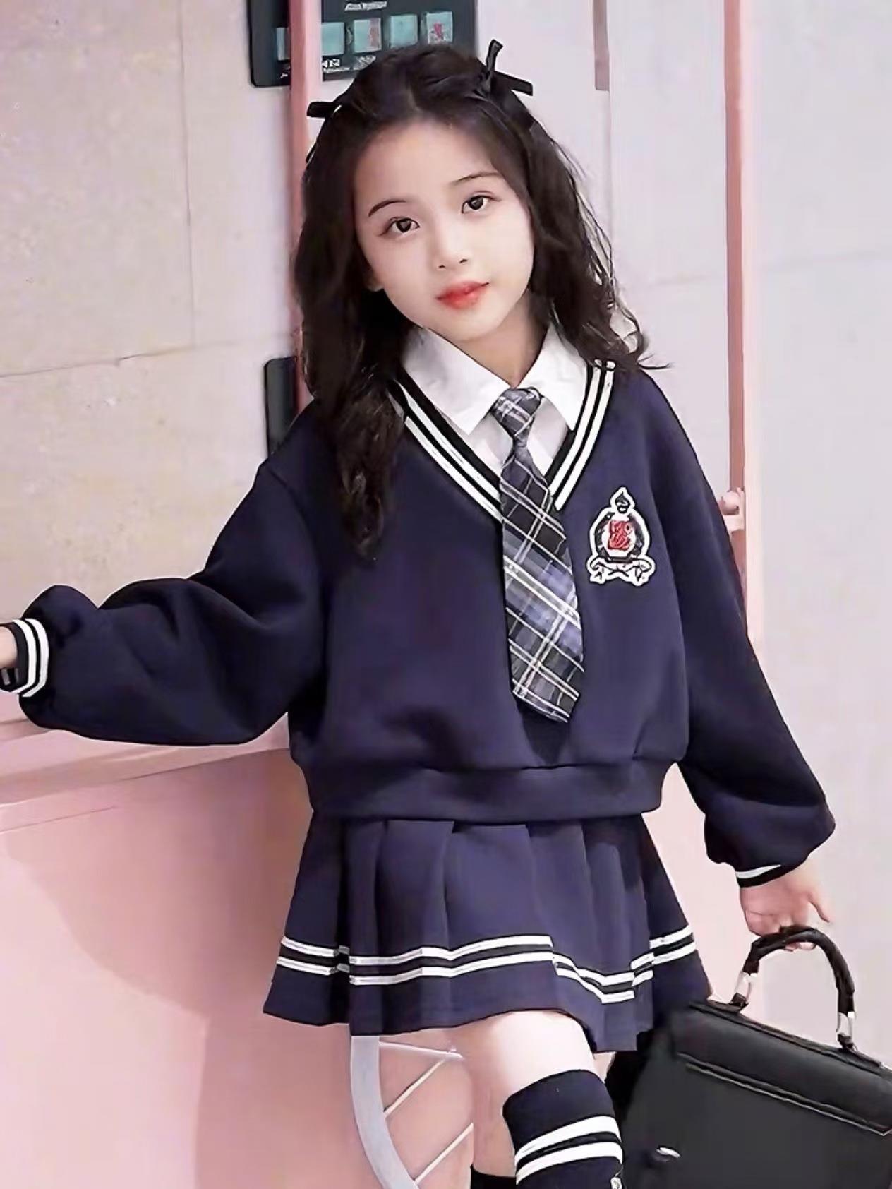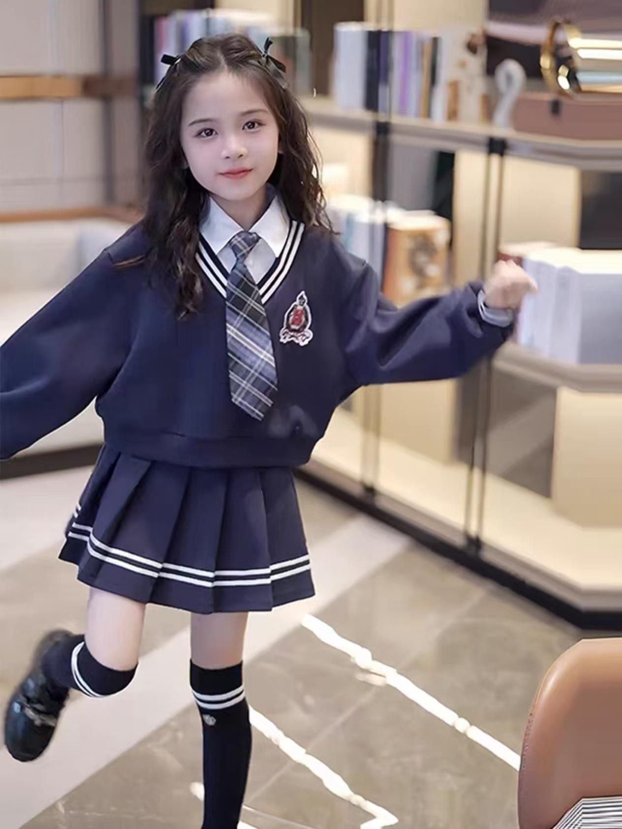 女童校园风套装秋季洋气儿童学院风假两件衬衫卫衣秋装裙子两件套