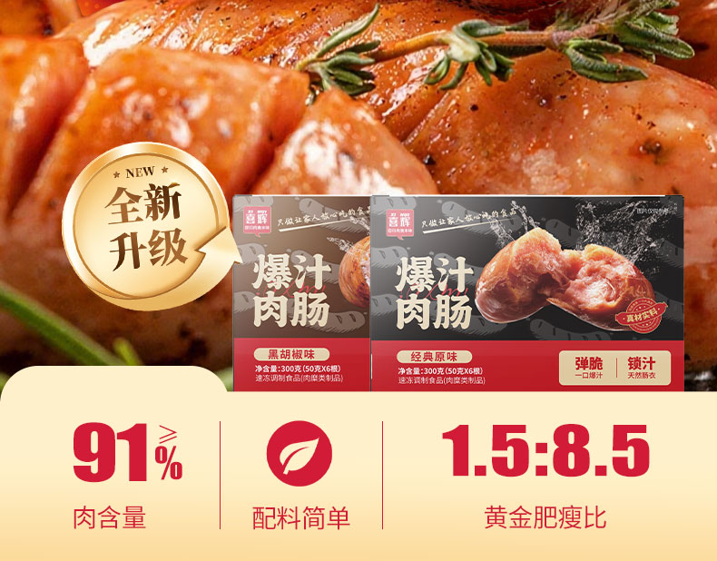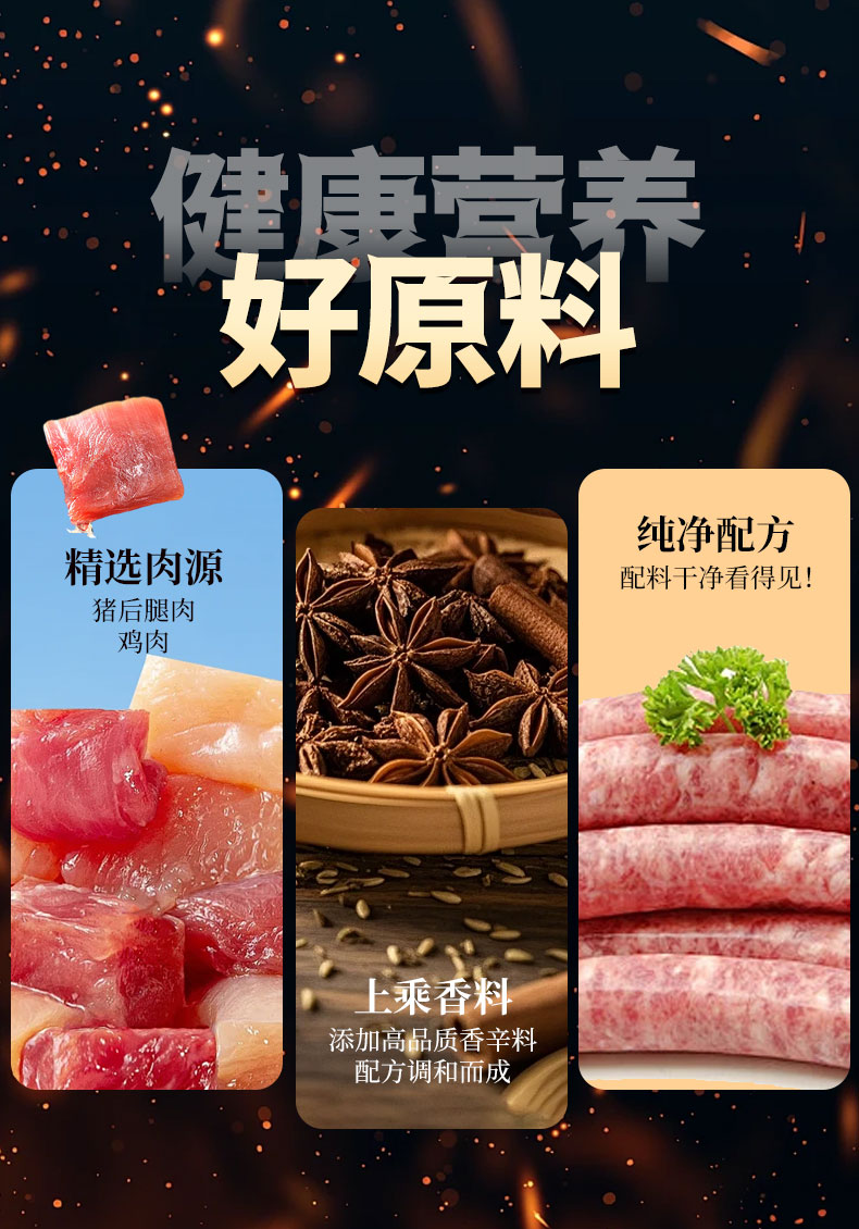 黑胡椒:猪肉、鸡肉、白砂糖、饮用水、食用盐、复合调味料、黑胡椒粒、天然肠衣