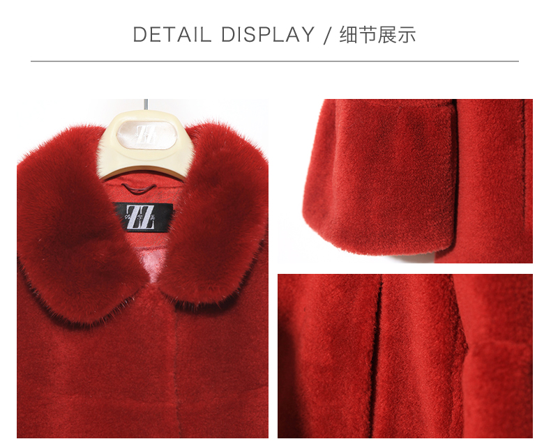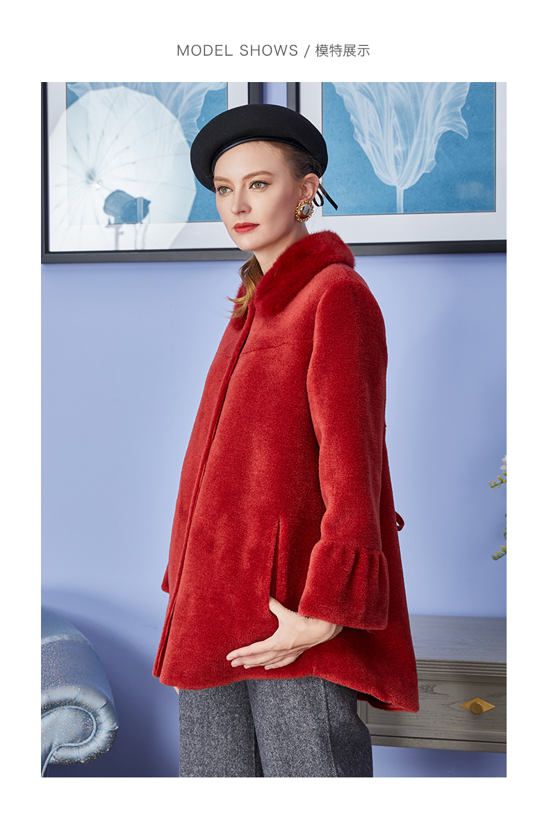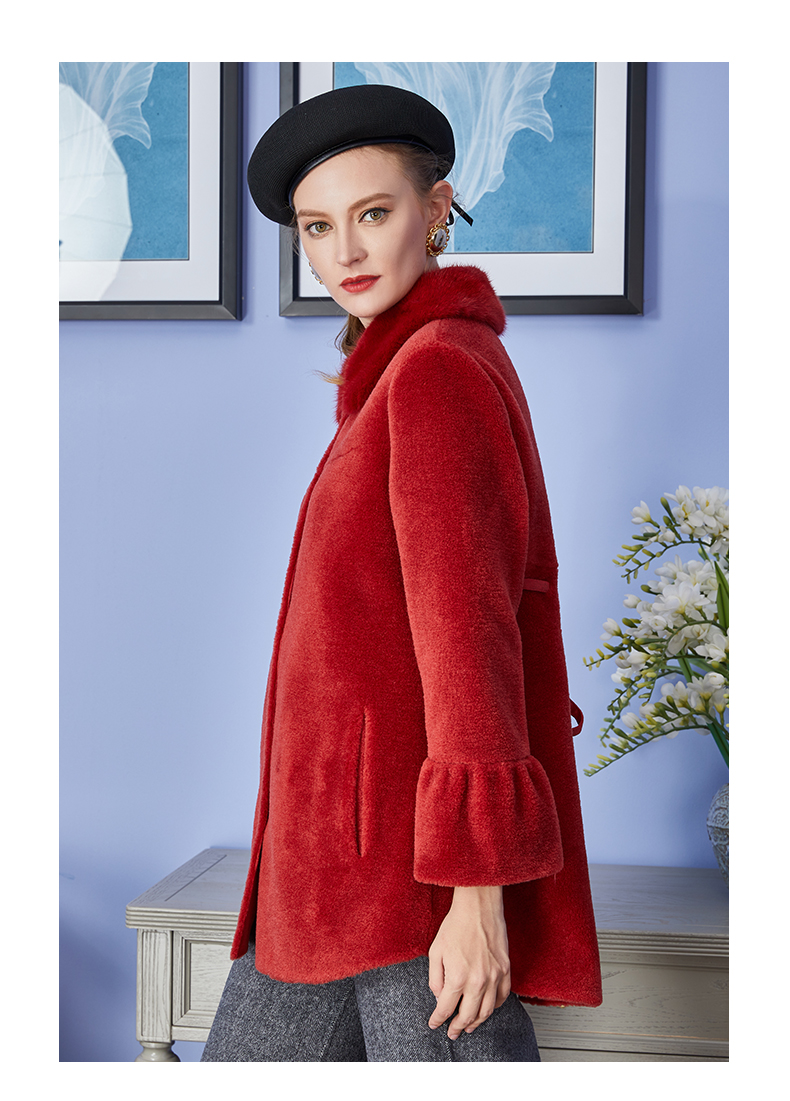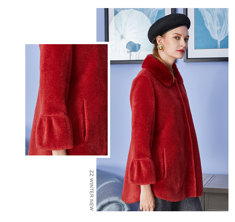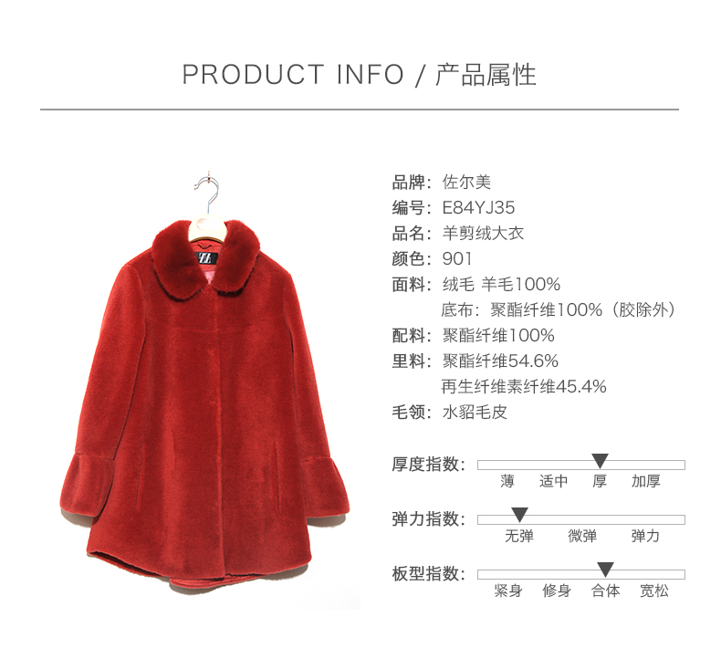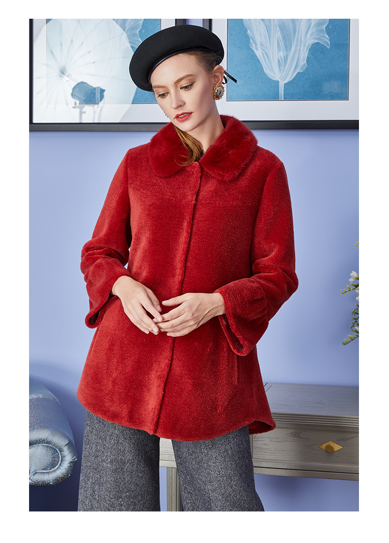 佐尔美冬季新品中老年女士纯色简约气质羊剪绒大衣中短款E84YJ35