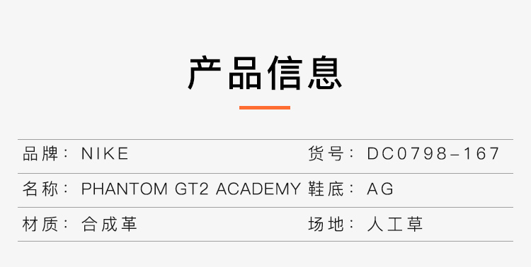 NIKE/耐克 Nike Phantom GT2 Academy AG PHANTOM GT2 中端AG足球鞋DC0798167