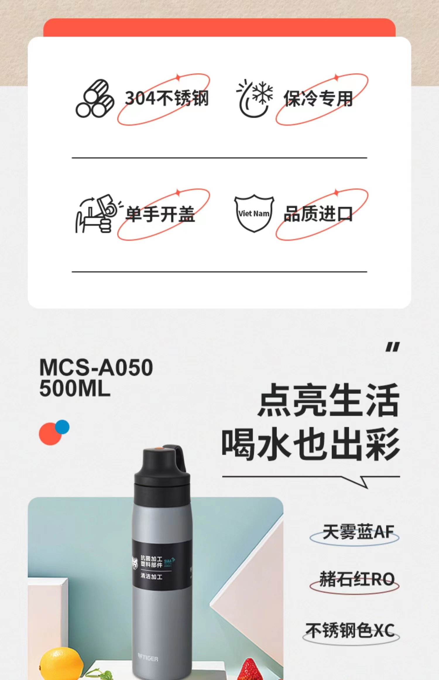 【虎牌】B7F 虎牌不锈钢吸管杯MCS-A050