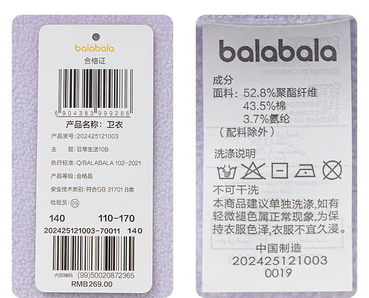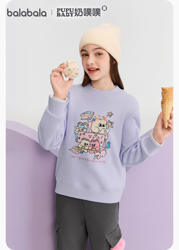 【奶噗噗IP】巴拉巴拉女童卫衣儿童2025新款冬装加绒上衣