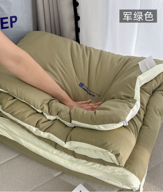 面料:上层聚酯纤维/下层聚酯纤维 填充:80%聚酯纤维20%再生纤维 尺寸:150×200 约4.8斤 200×230 约7.2斤