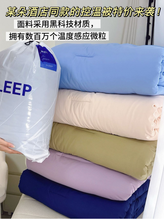 🉐️重 磅 福 利 炸 圈💥某朵酒店同款的控温被特价来袭!给你一整晚的深睡眠! ☀️告别半夜热醒,脚底冰凉,忽冷忽热的困扰! 一夜恒温,安睡8小时,这床会呼吸的智能被,让你爱上睡觉! 面料采用黑科技材质,拥有数百万个温度感应微粒, 当身体过热时,它能吸收储存多余热量, 当身体过冷时,它能释放储存的热量为你营造一个持续稳定的被窝微气候, 无论季节如何变化,整夜都是不冷不热的黄金睡眠温度。